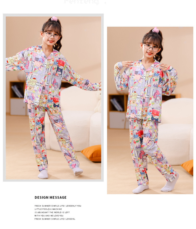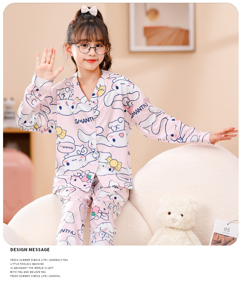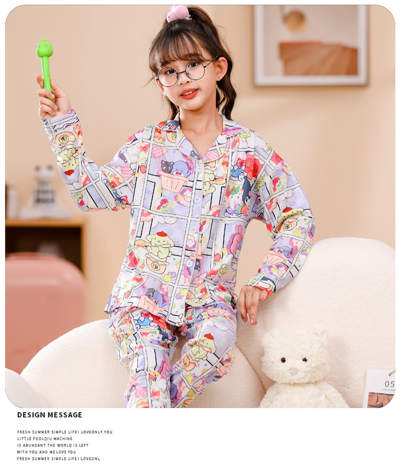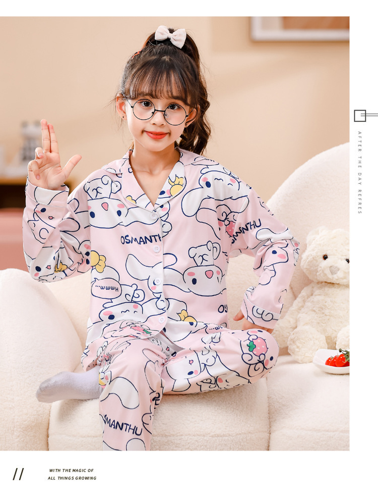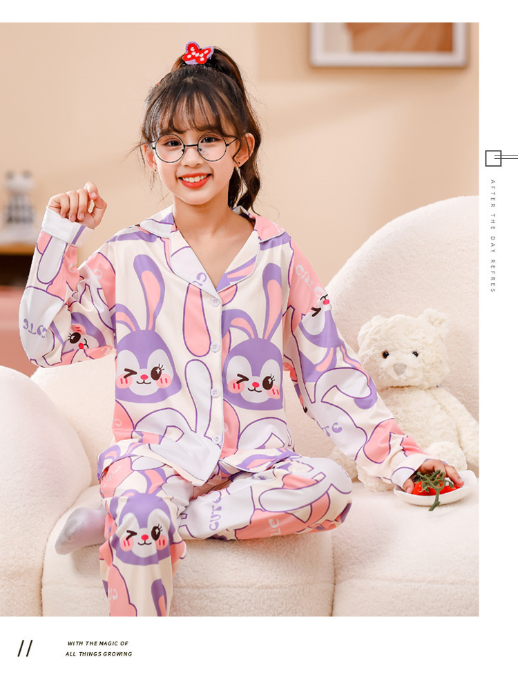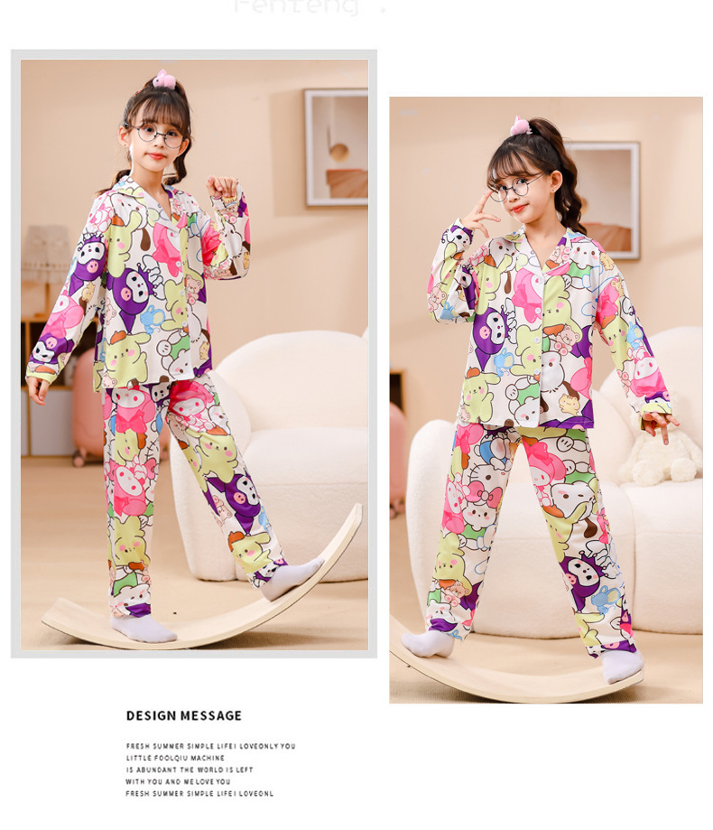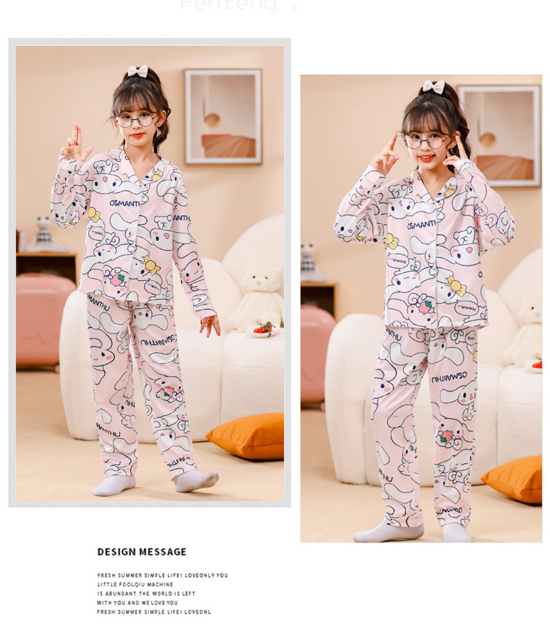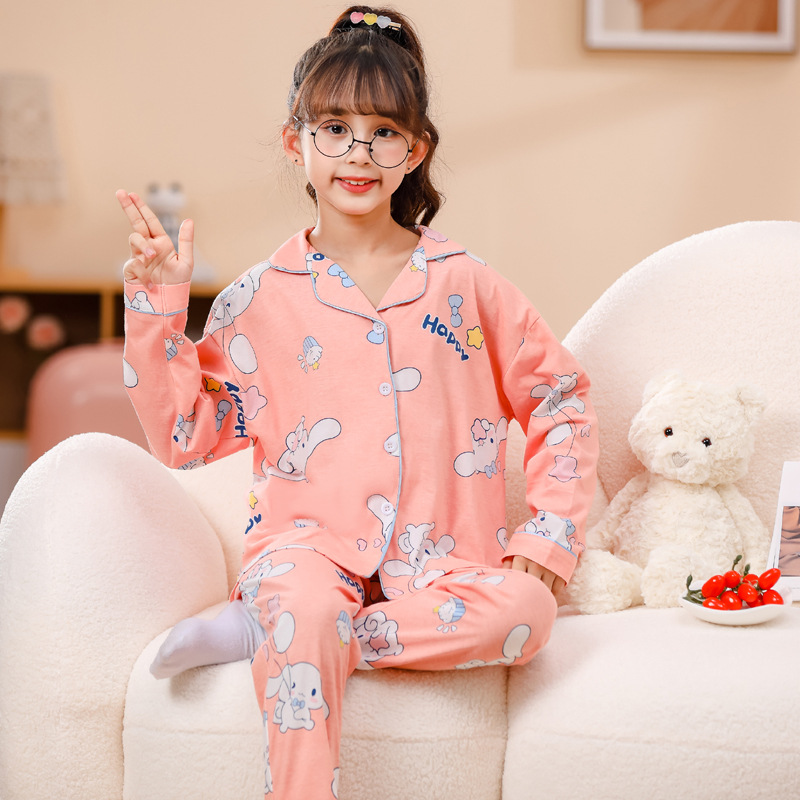 春秋季儿童睡衣套装宽松翻领长袖女童家居服女孩睡衣中大童空调服