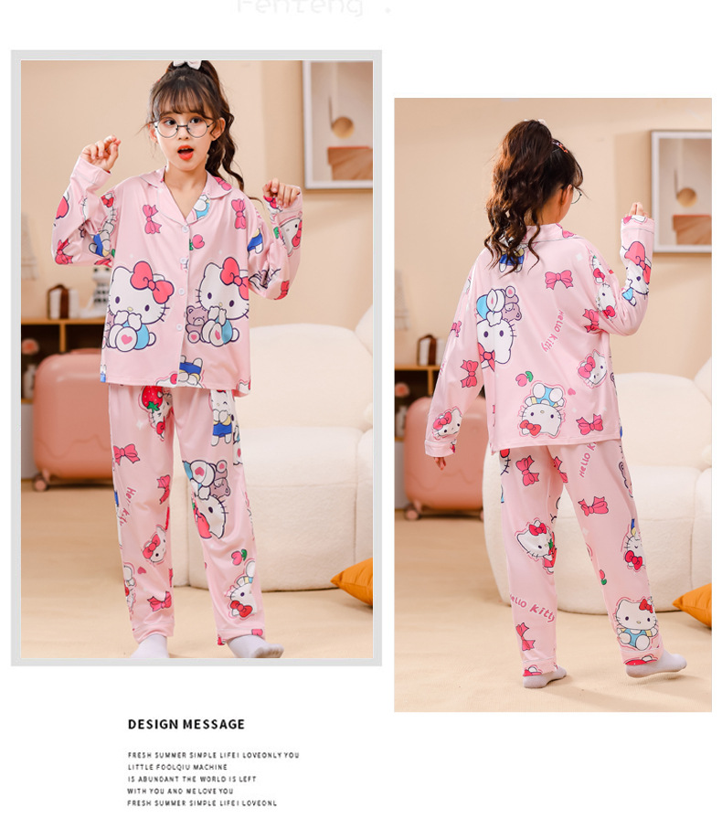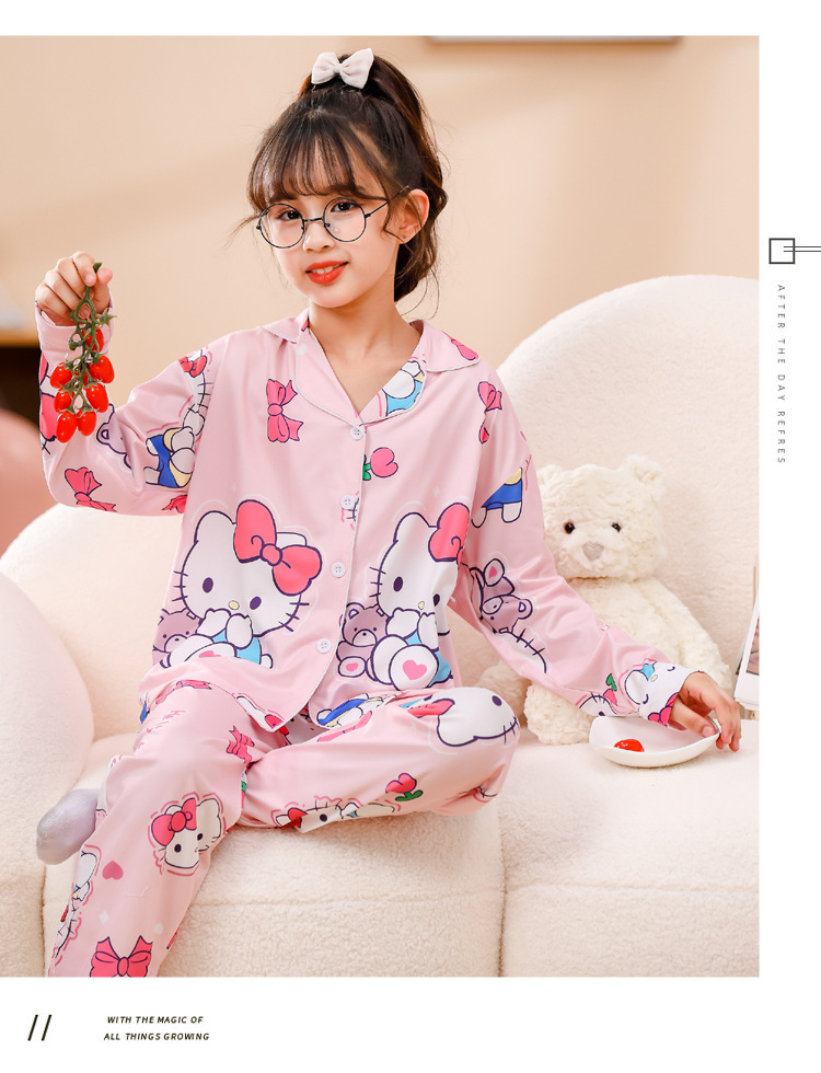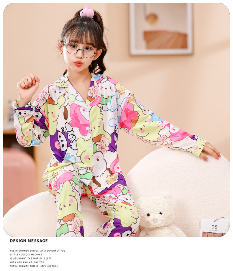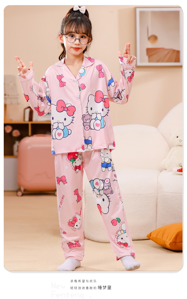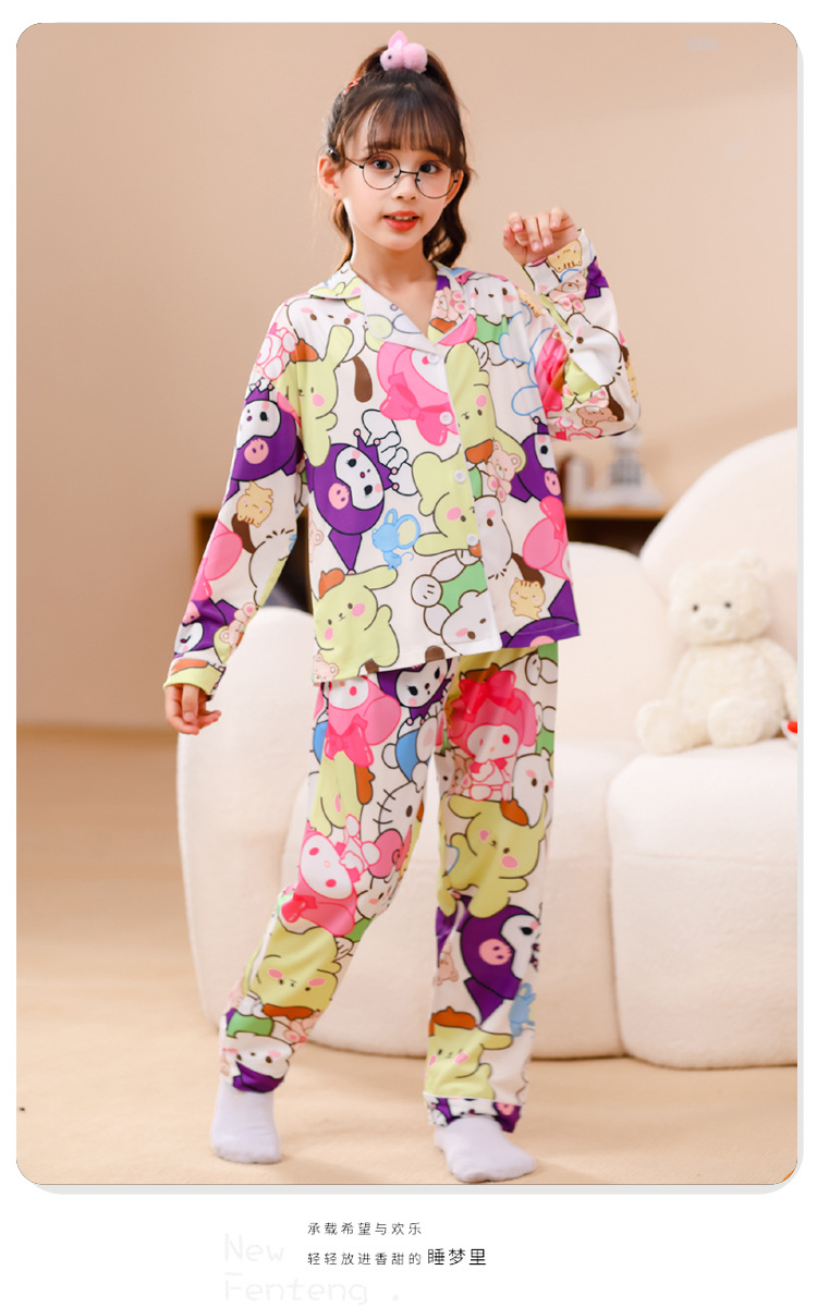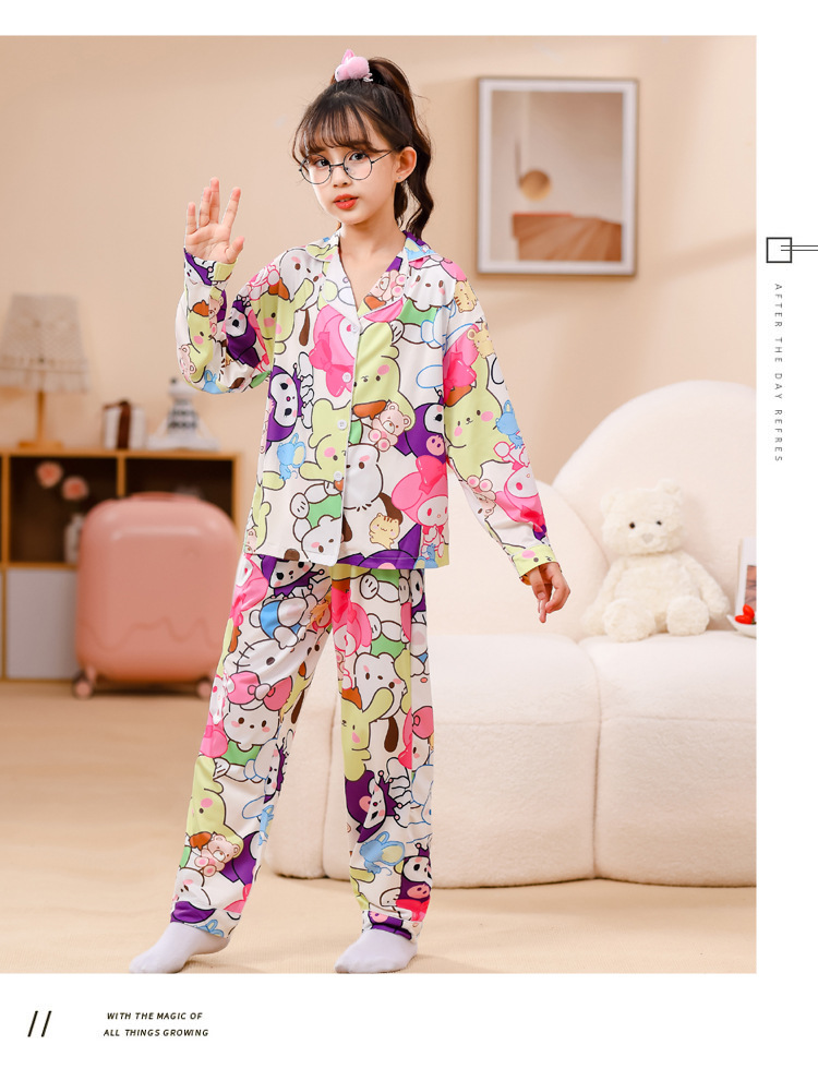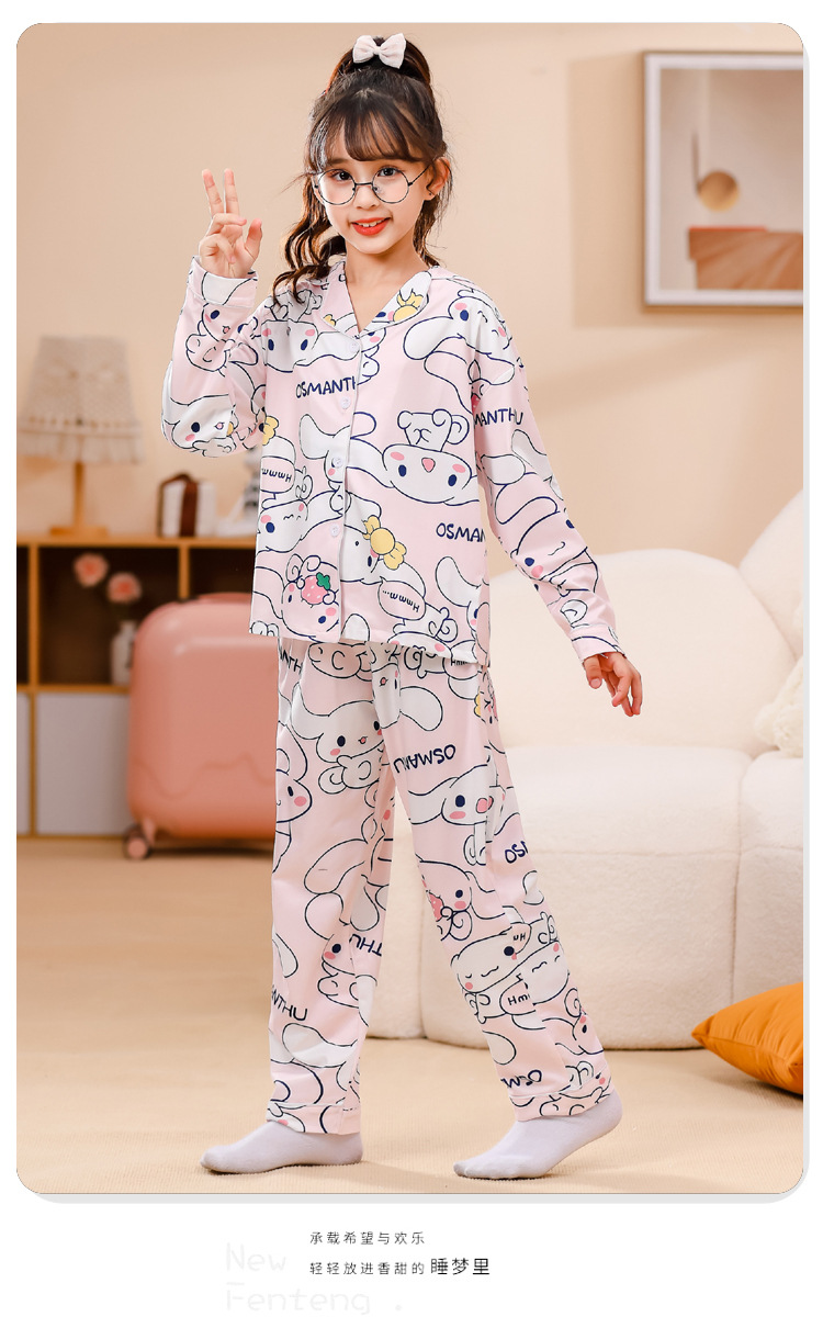 春秋季儿童睡衣套装宽松翻领长袖女童家居服女孩睡衣中大童空调服