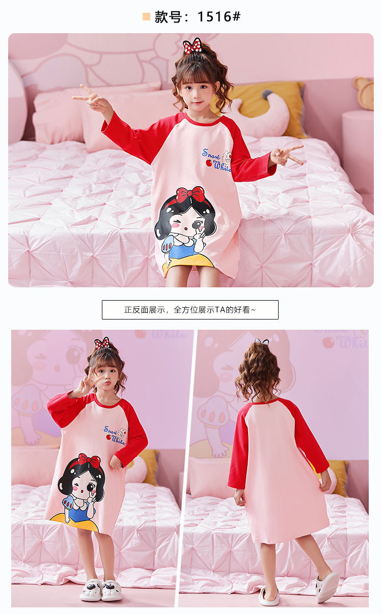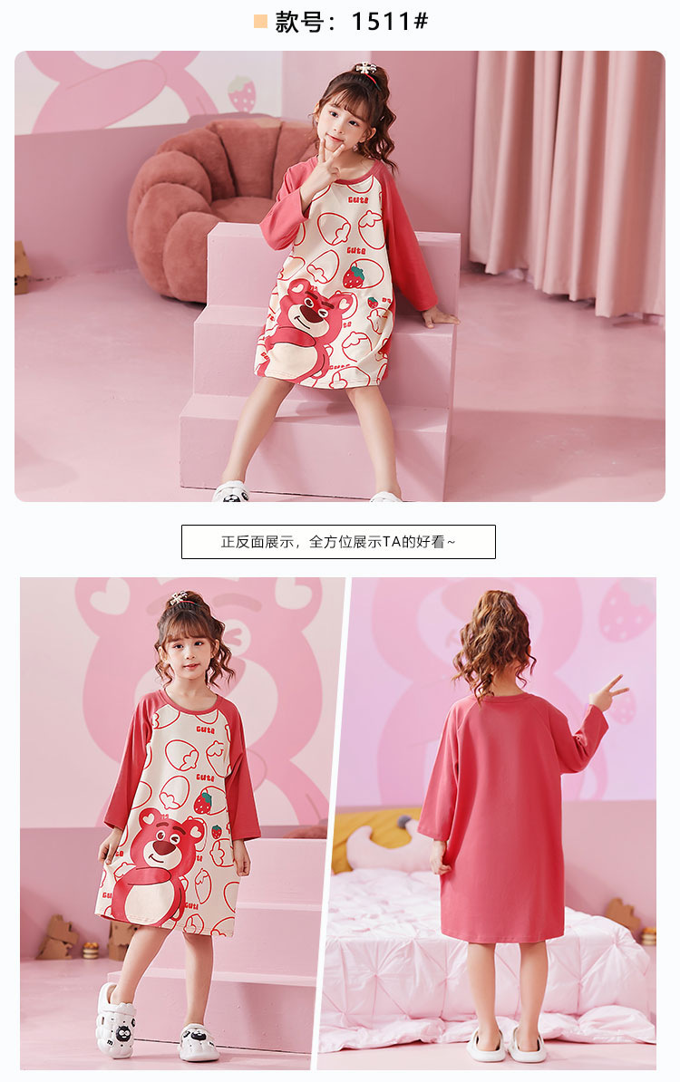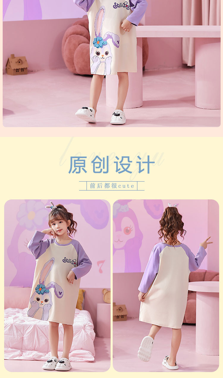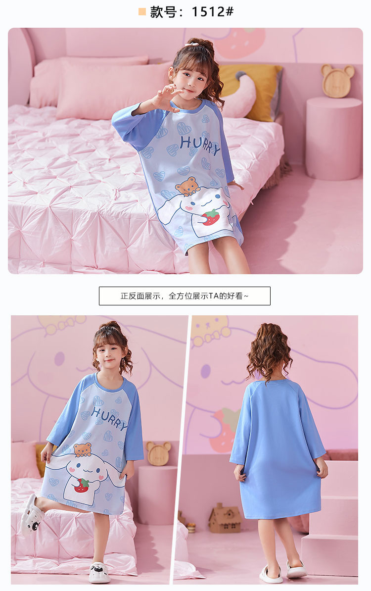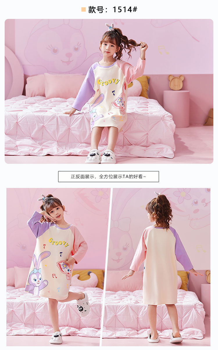 女童睡裙夏季棉质新款儿童睡衣透气长袖中大童家居服女童睡裙可爱