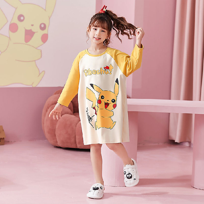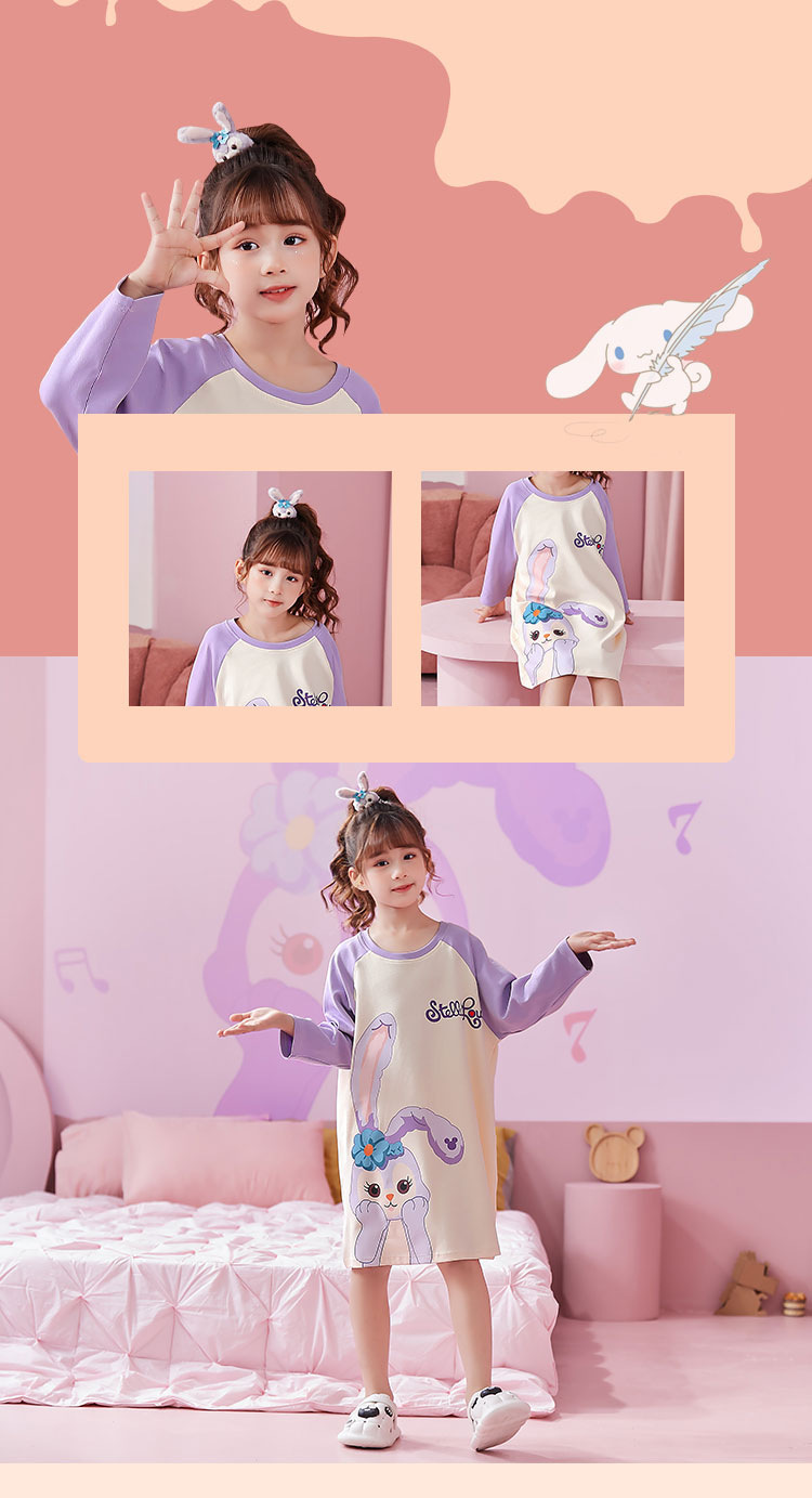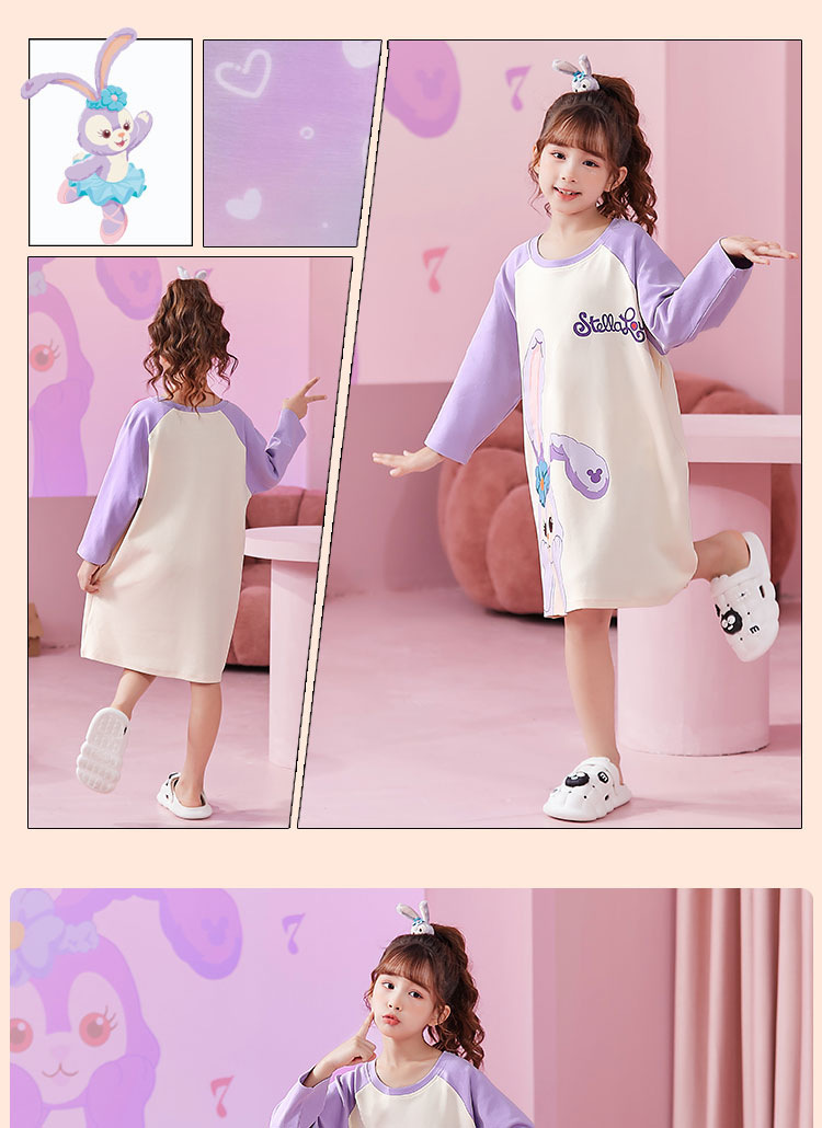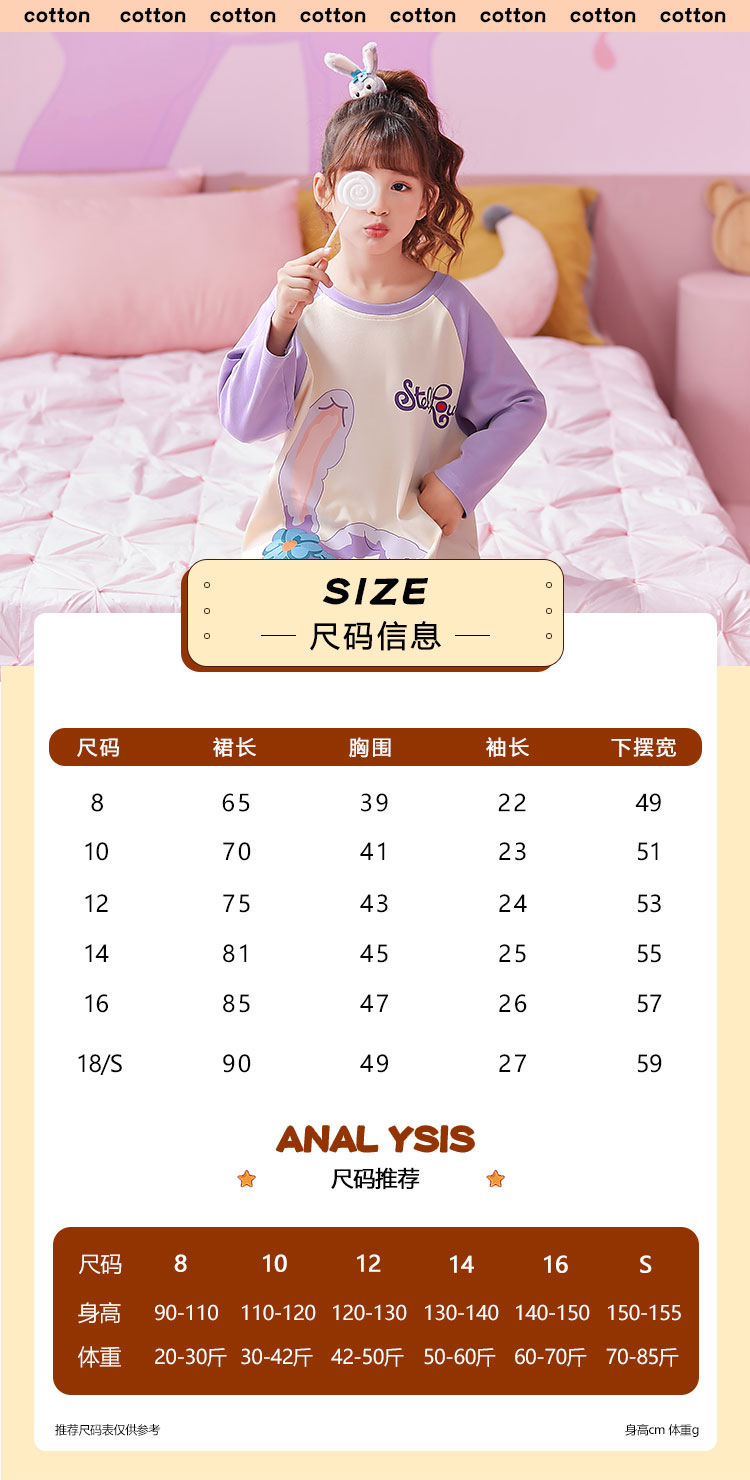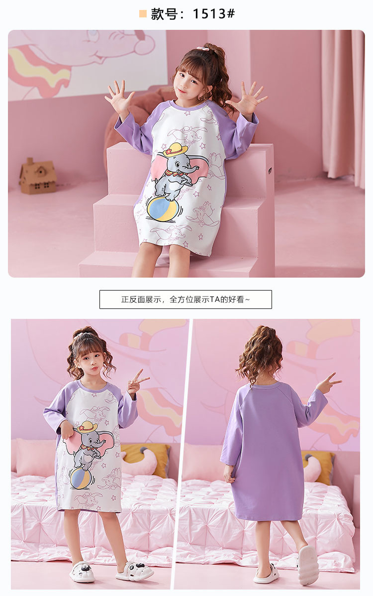 女童睡裙夏季棉质新款儿童睡衣透气长袖中大童家居服女童睡裙可爱
