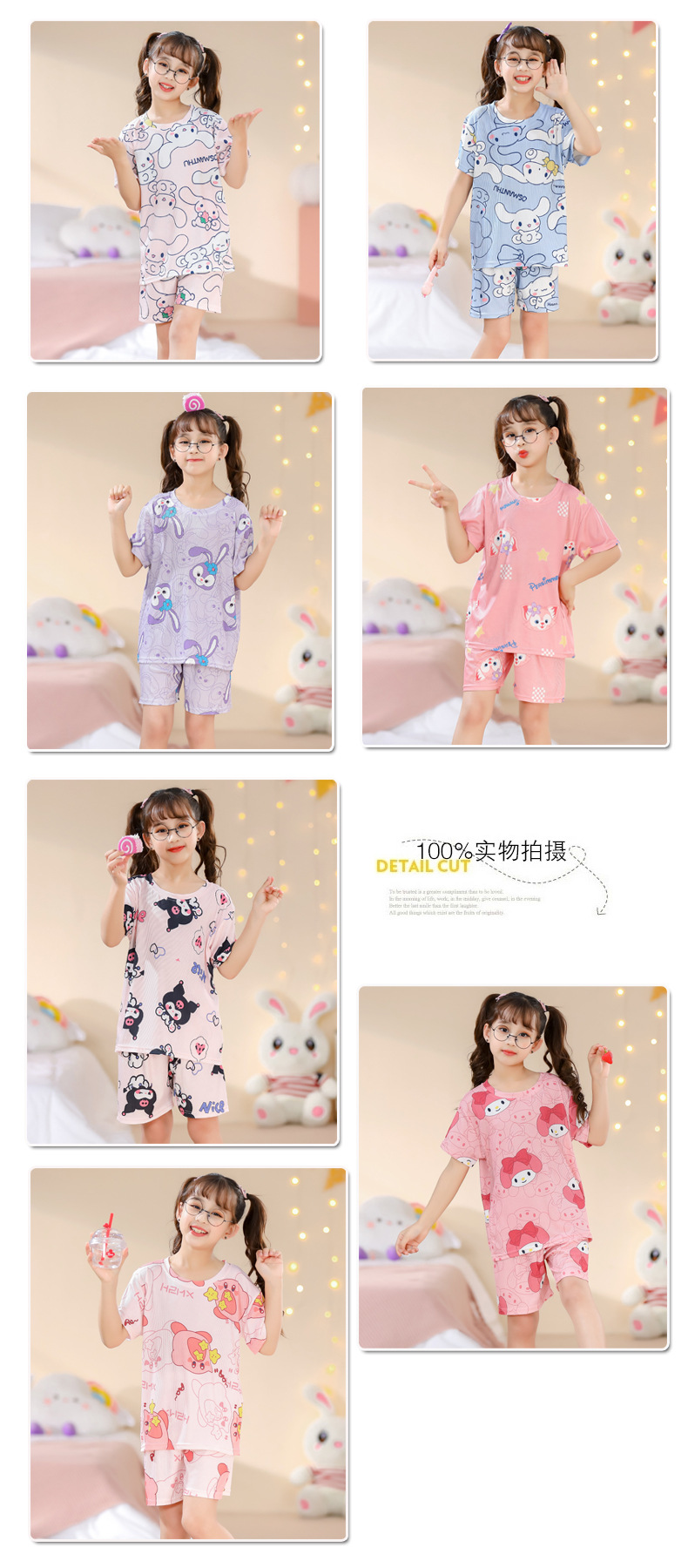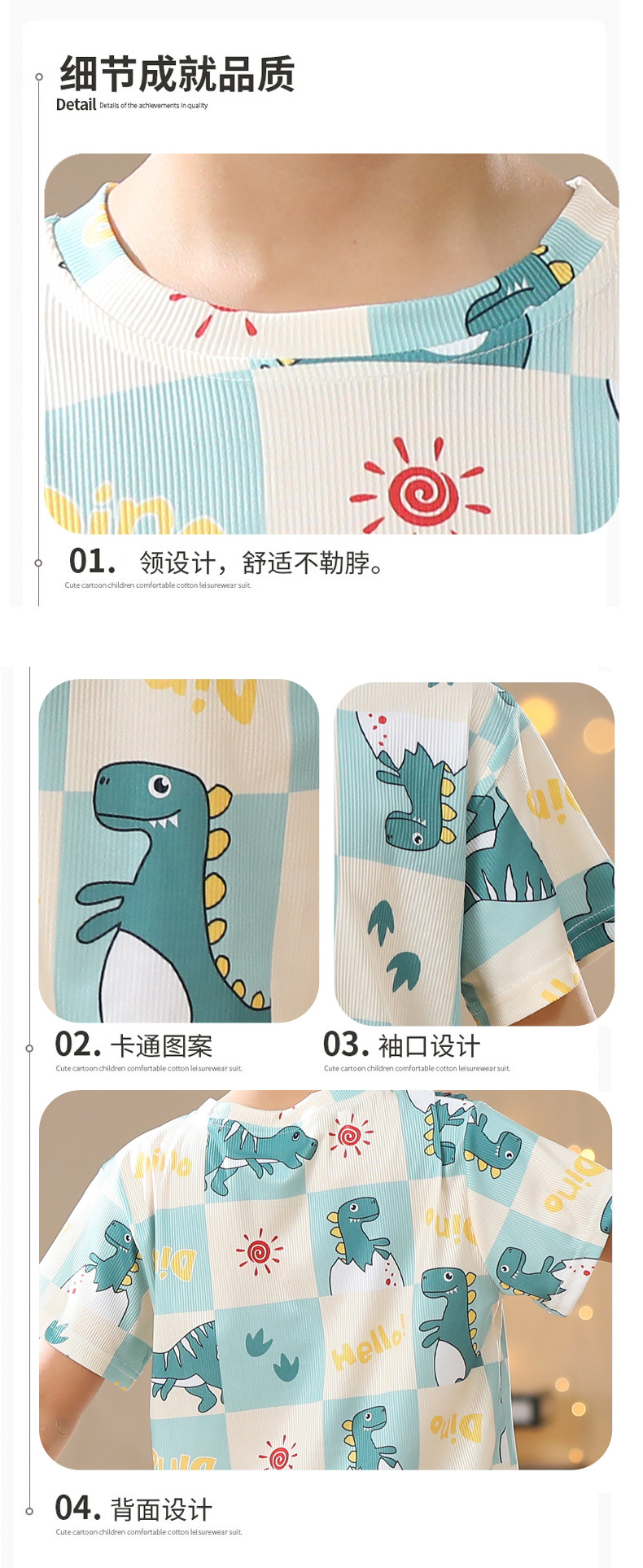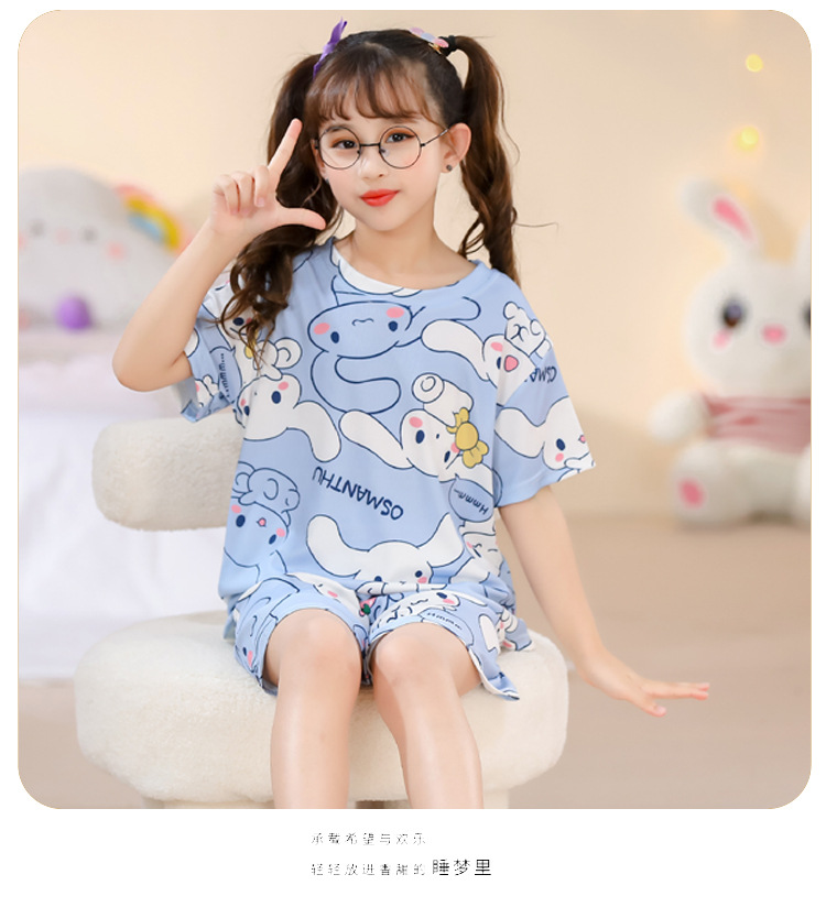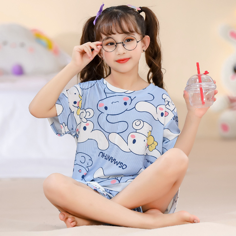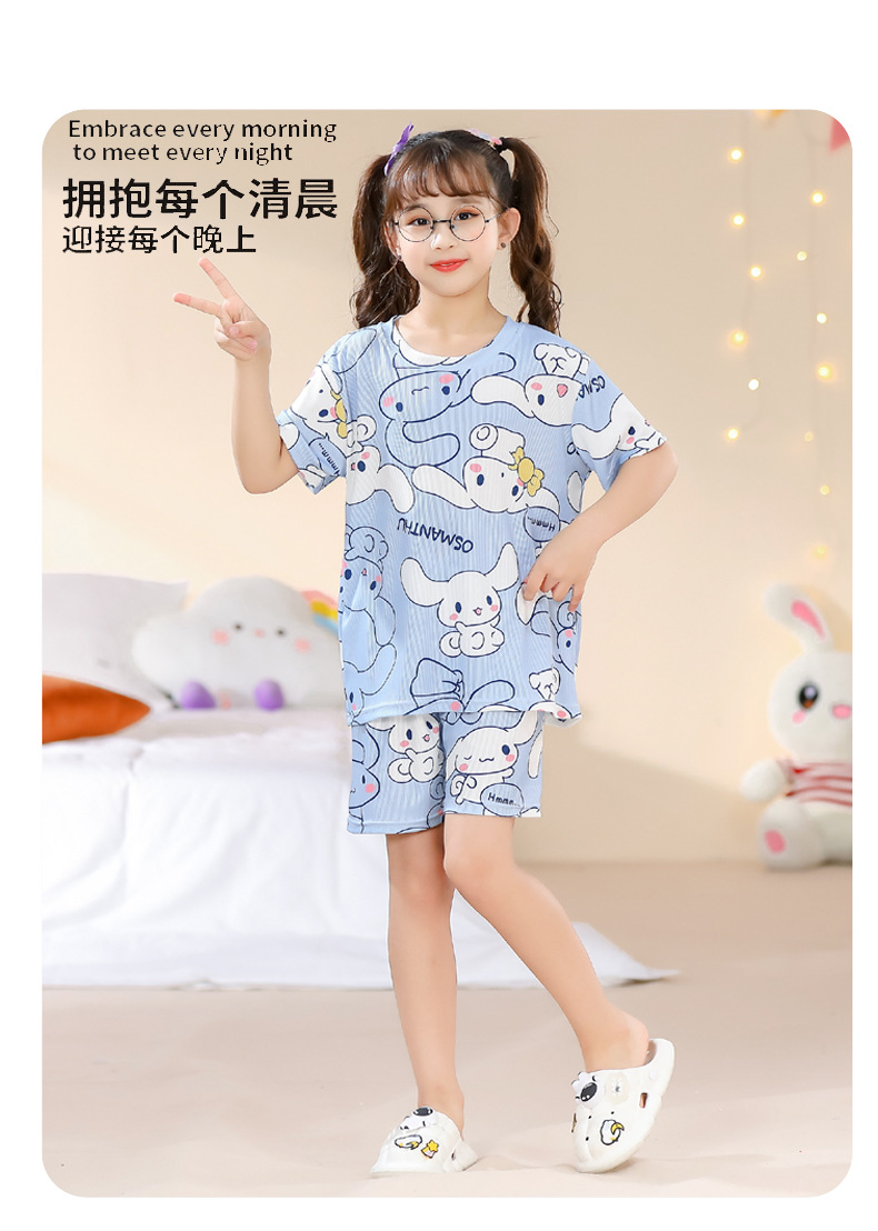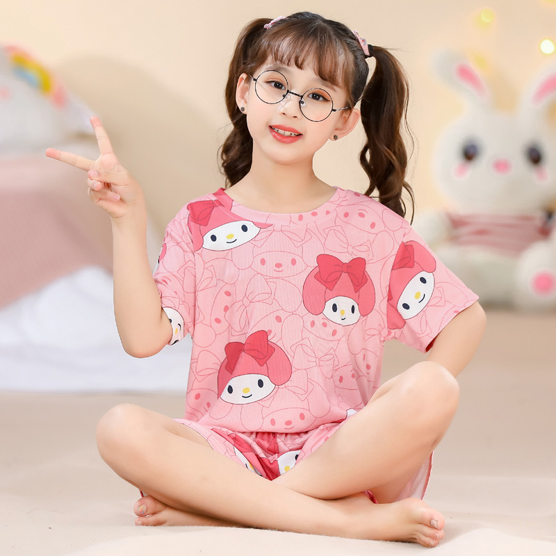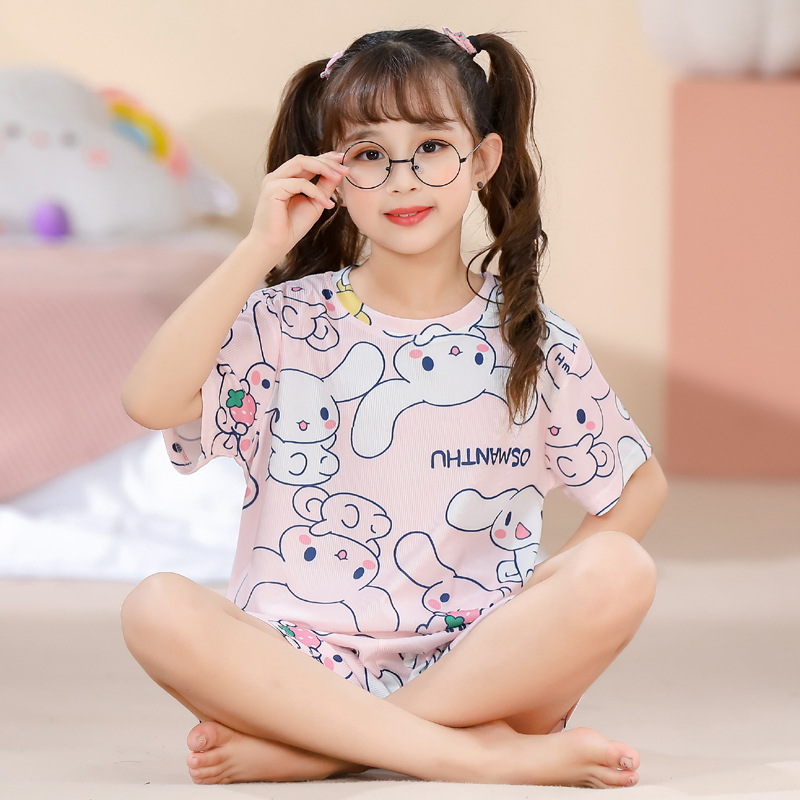 2023夏季儿童睡衣男童冰丝棉坑条韩版家居服中大男孩短袖女孩套装