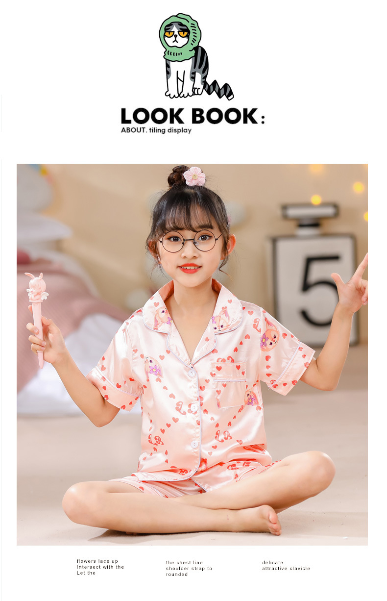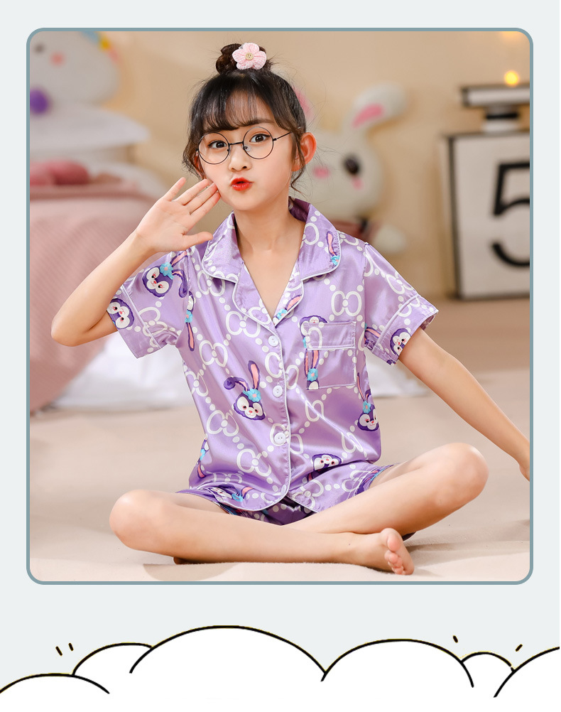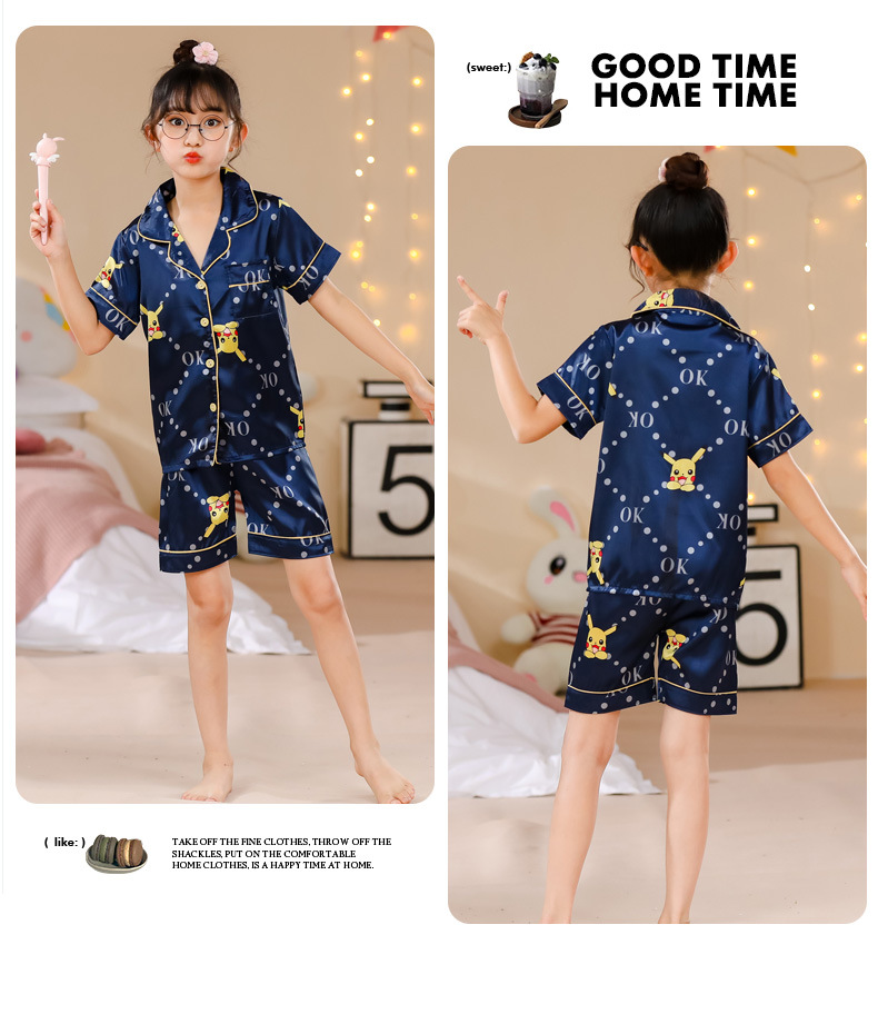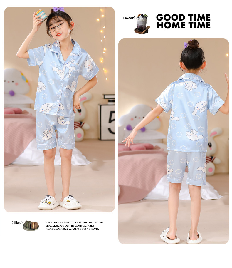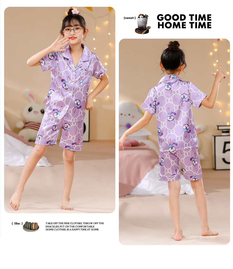 夏季新款儿童睡衣女孩冰丝短袖开衫甜美卡通中小大男女宝宝家居服