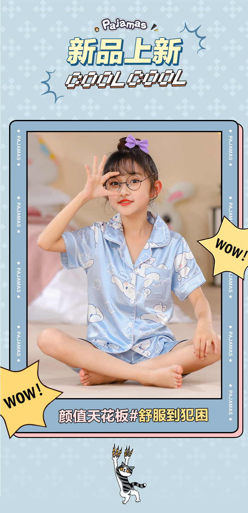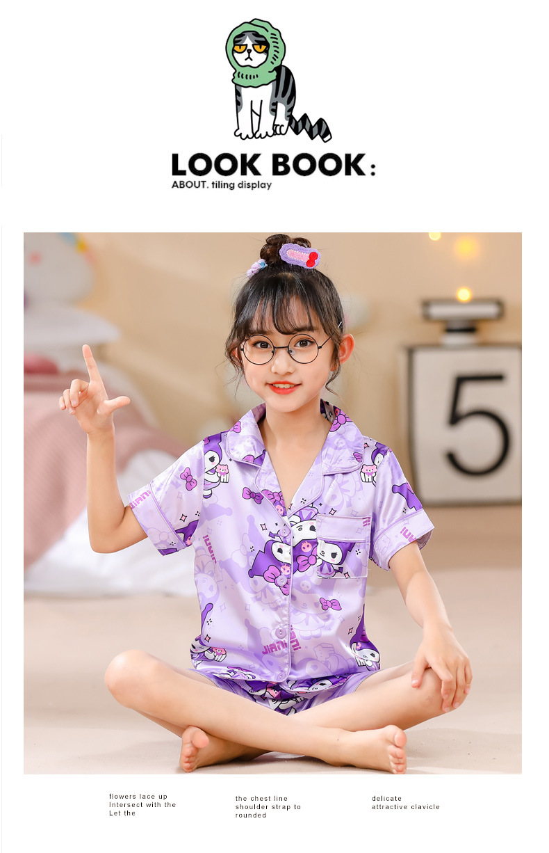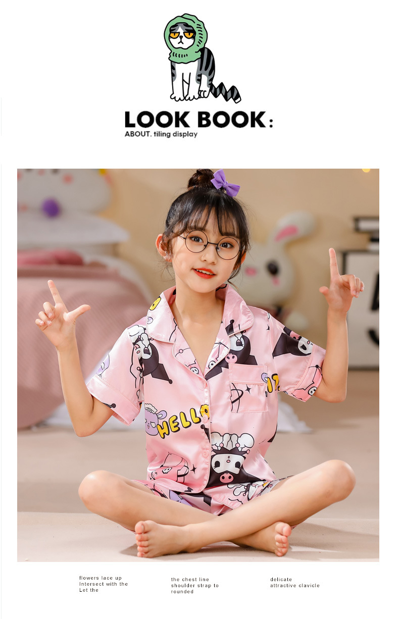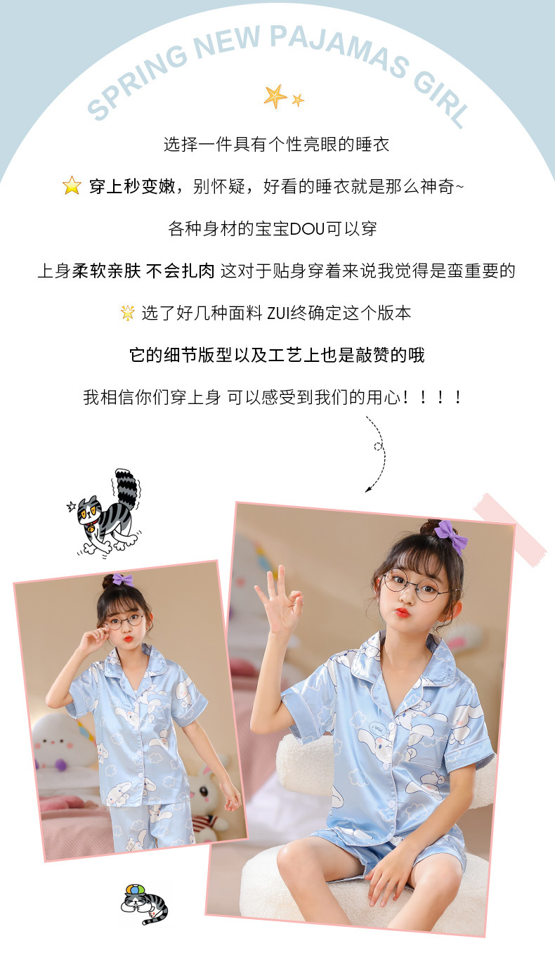 夏季新款儿童睡衣女孩冰丝短袖开衫甜美卡通中小大男女宝宝家居服