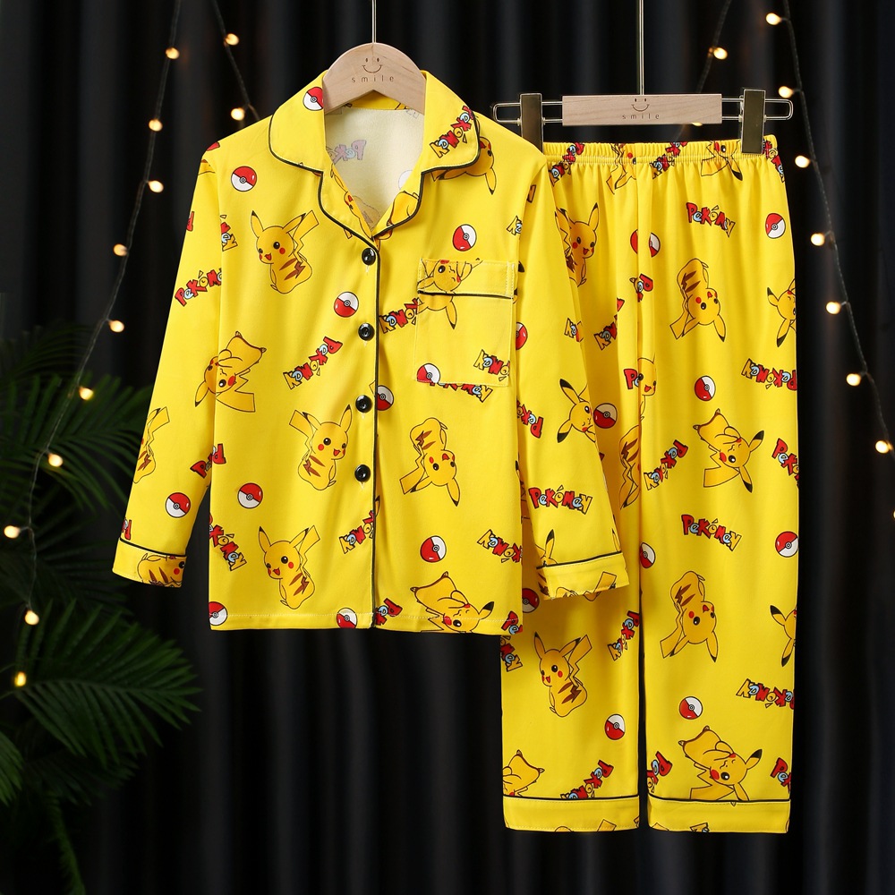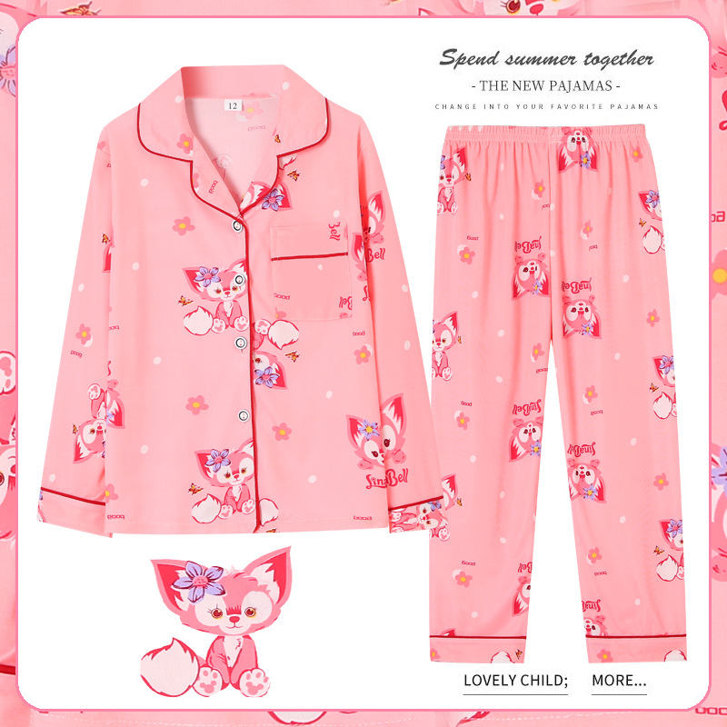 儿童睡衣女童春秋季男孩长袖翻领开衫套装女孩中大童家居服外贸
