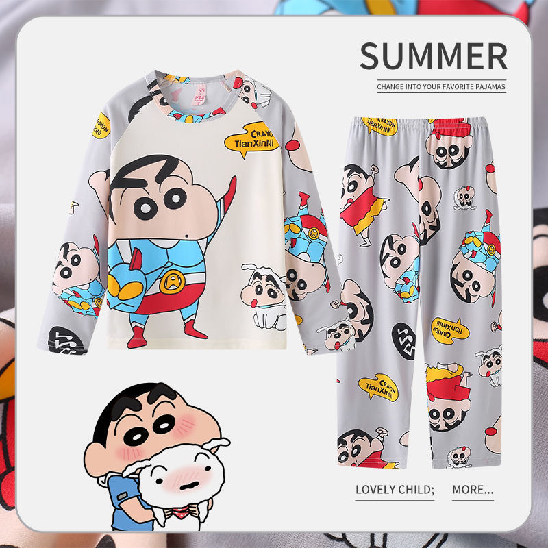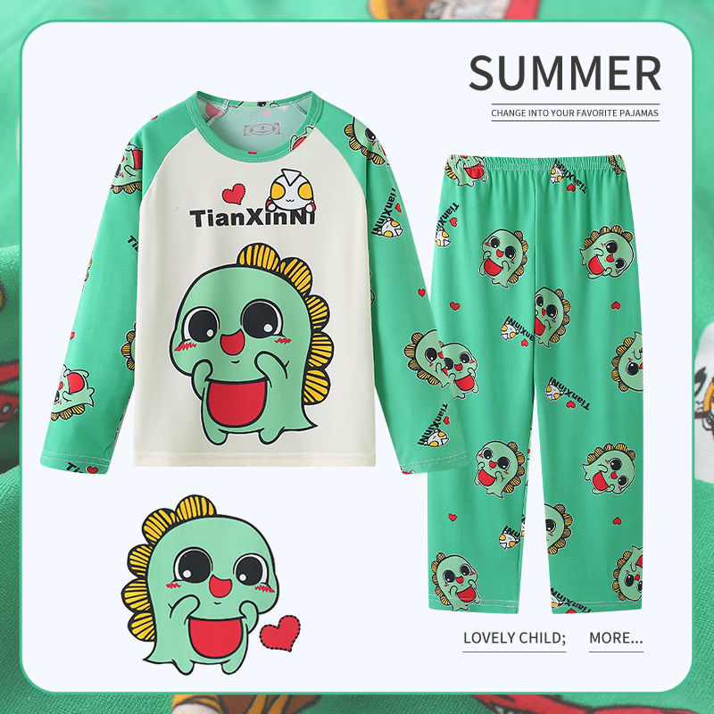 儿童睡衣女长袖春秋男孩女童小童夏季薄款小孩家居服宝宝套装外穿