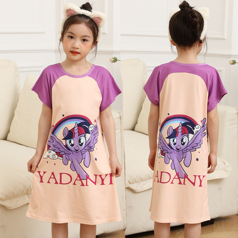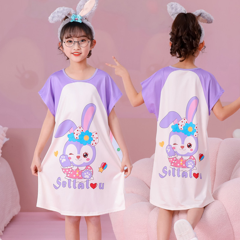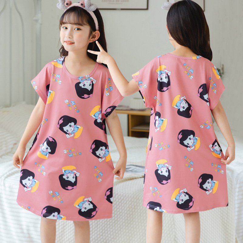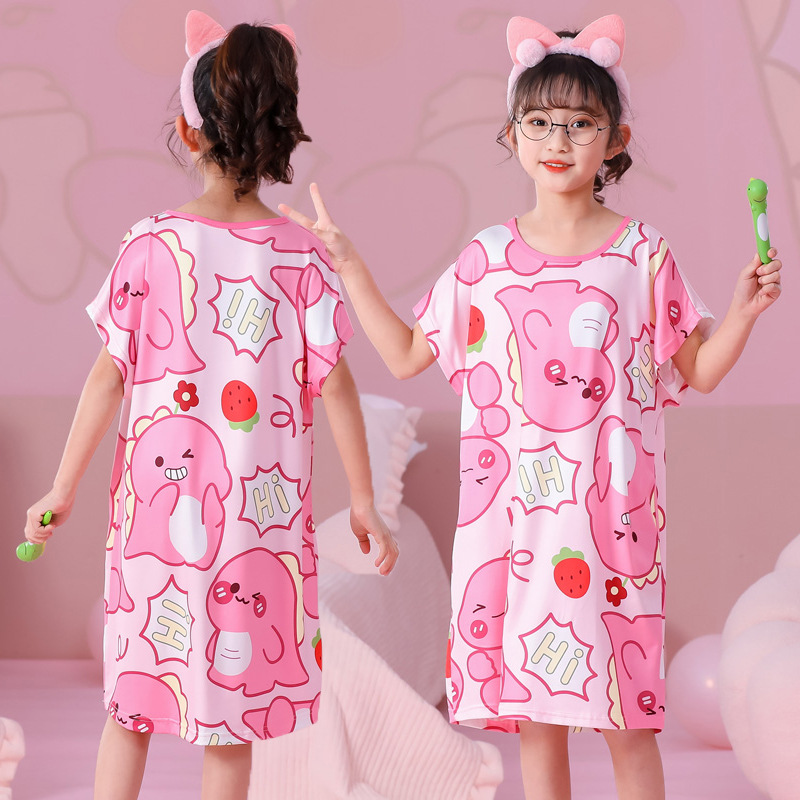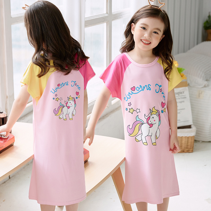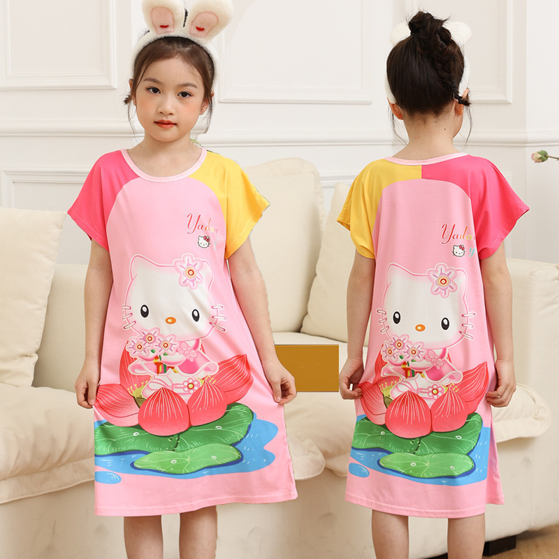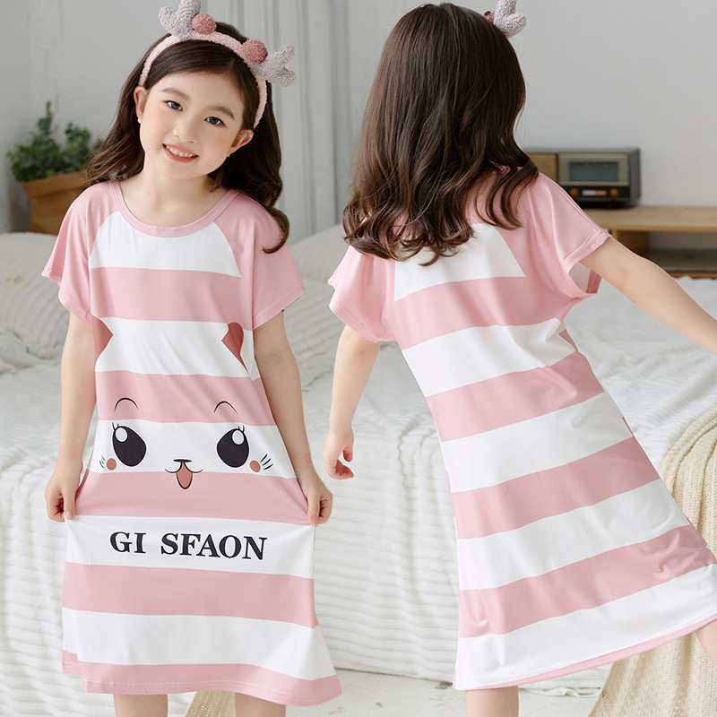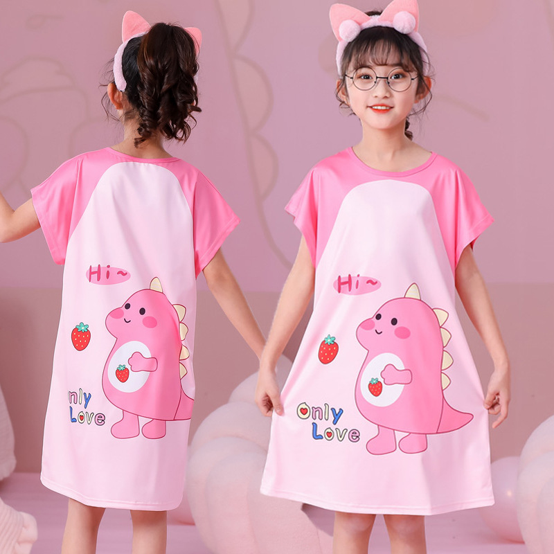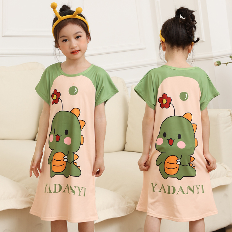 批发夏季儿童睡裙女孩短袖新款睡衣儿童卡通中大女童空调家居服裙