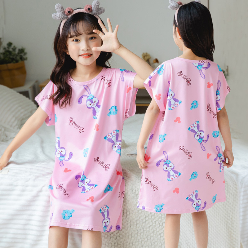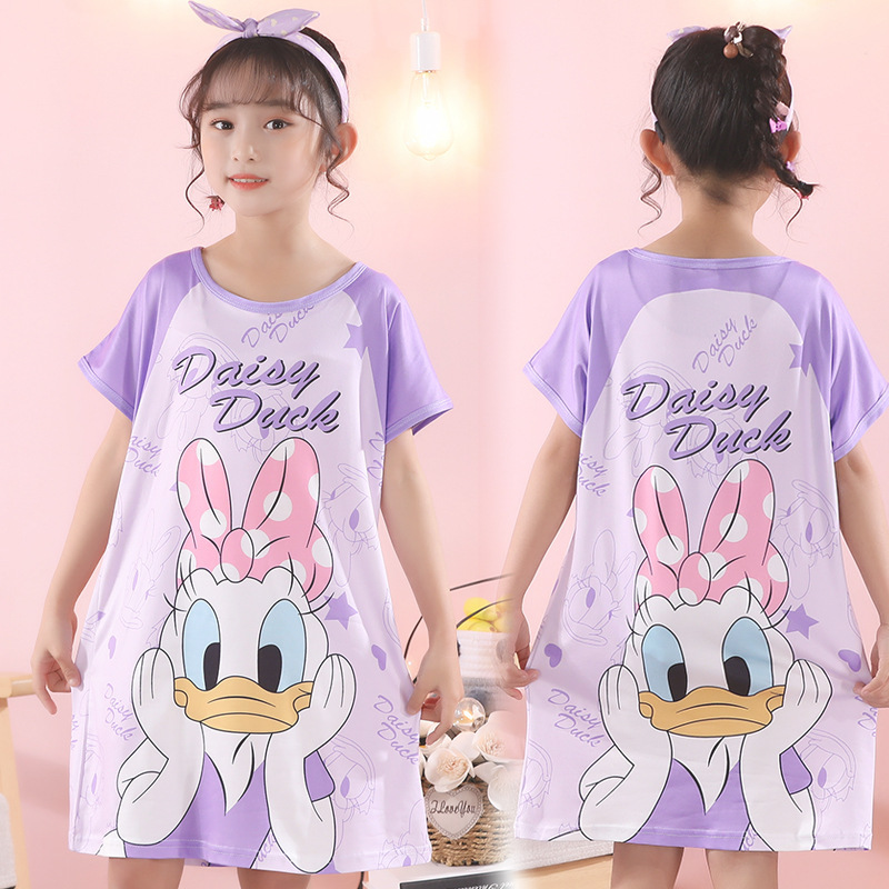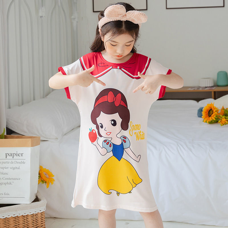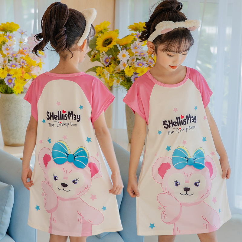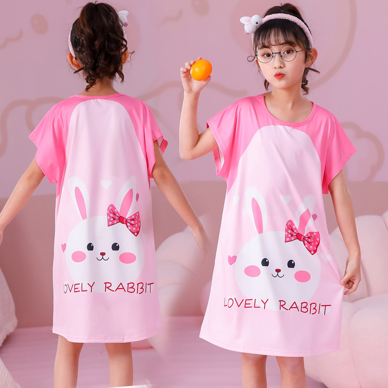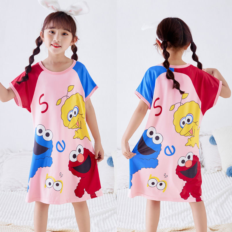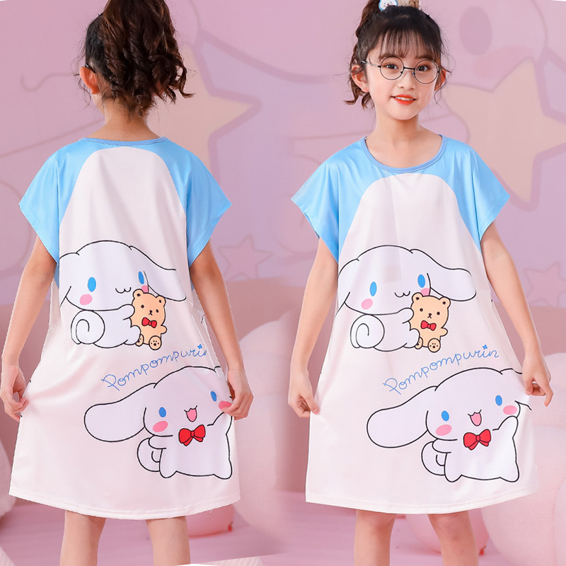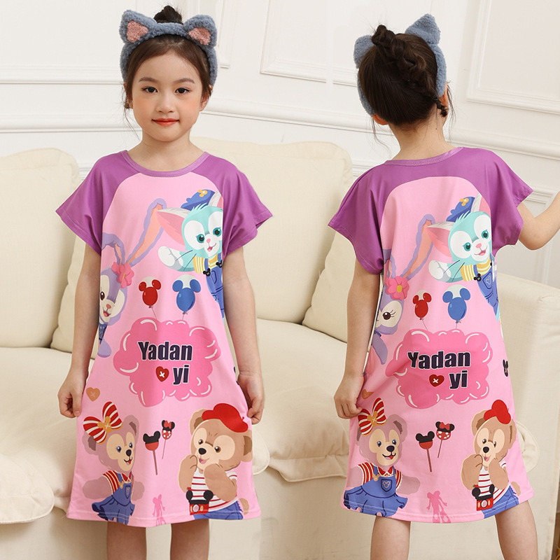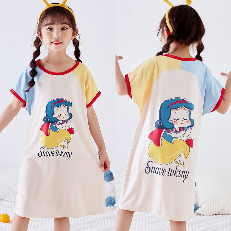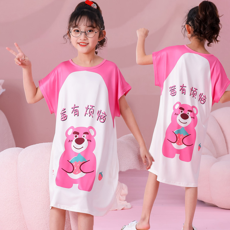 批发夏季儿童睡裙女孩短袖新款睡衣儿童卡通中大女童空调家居服裙