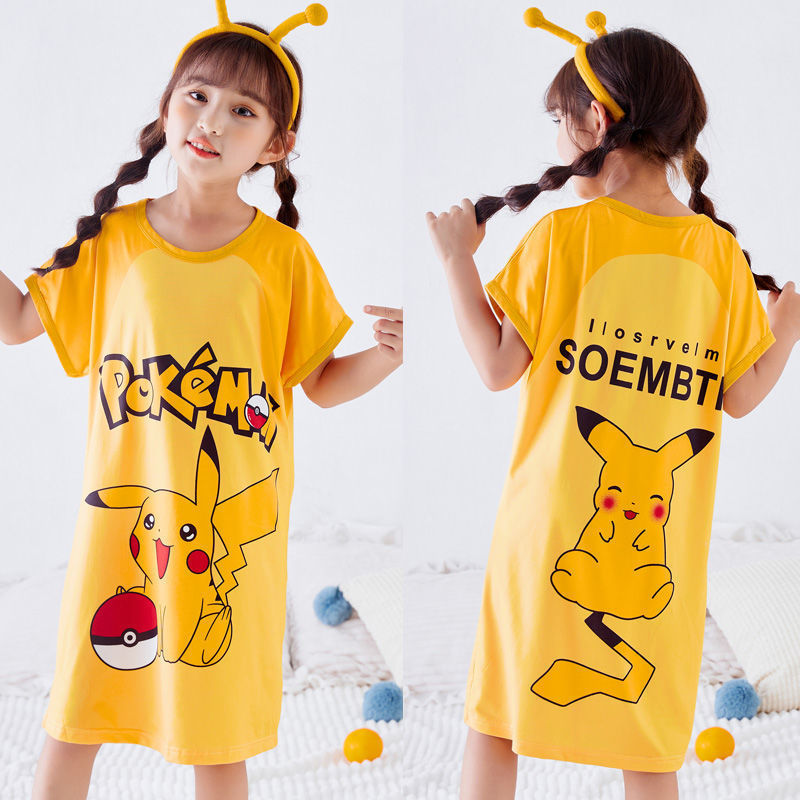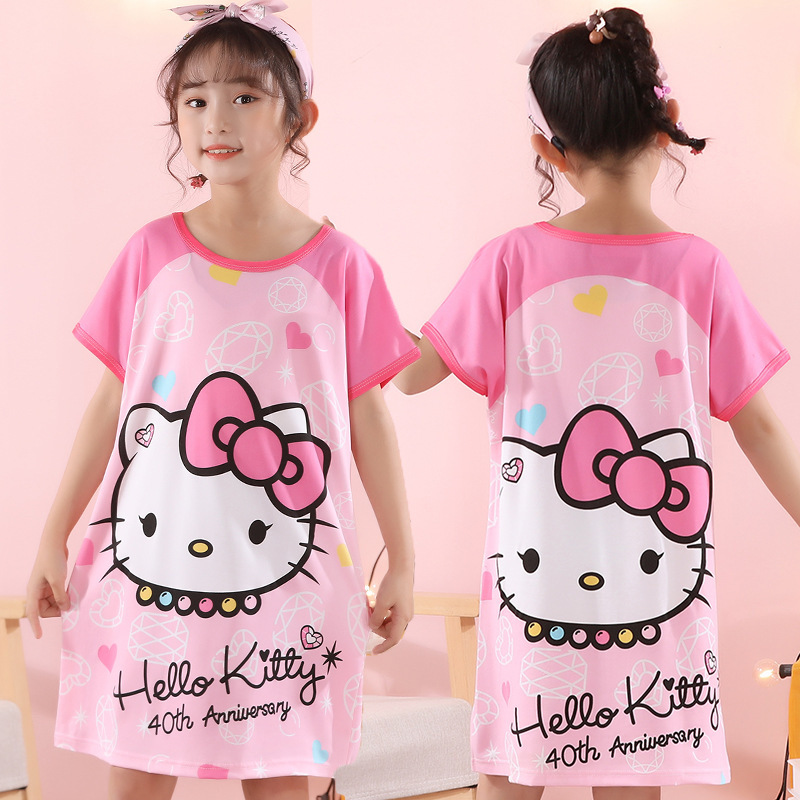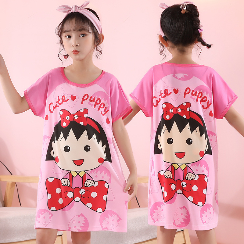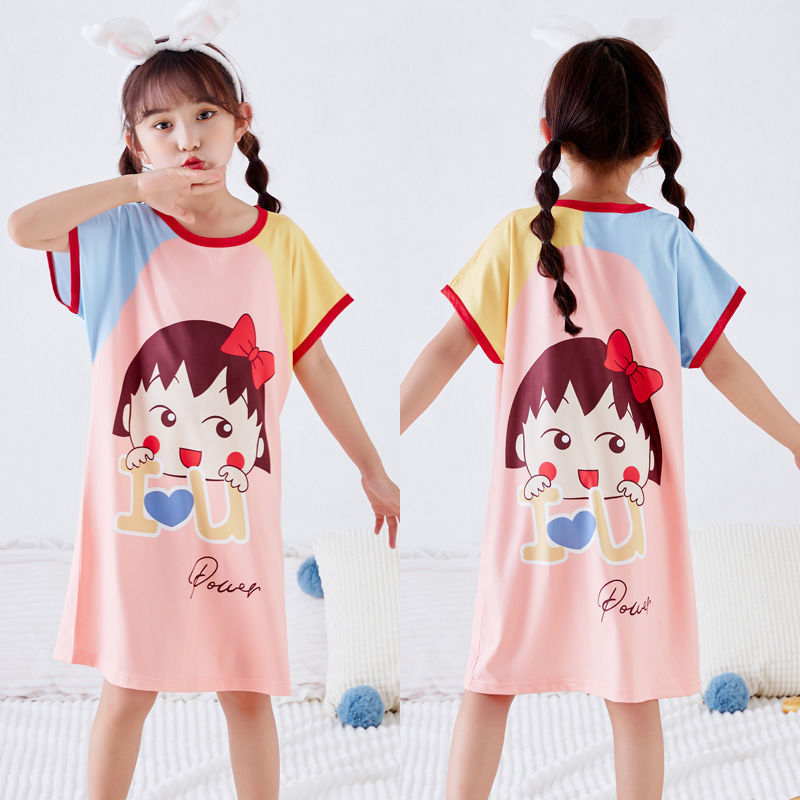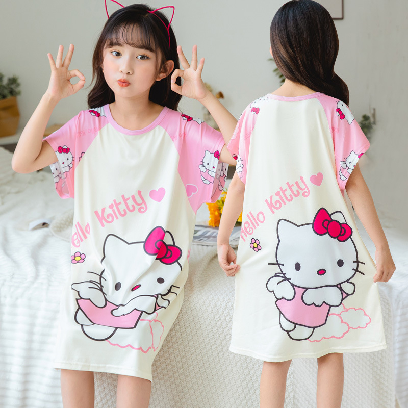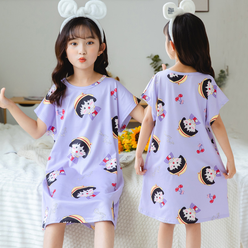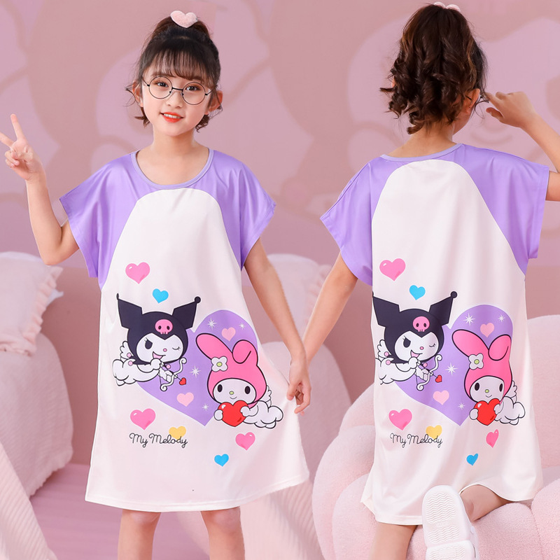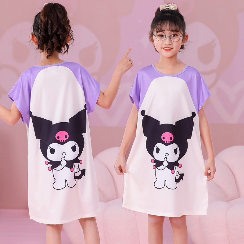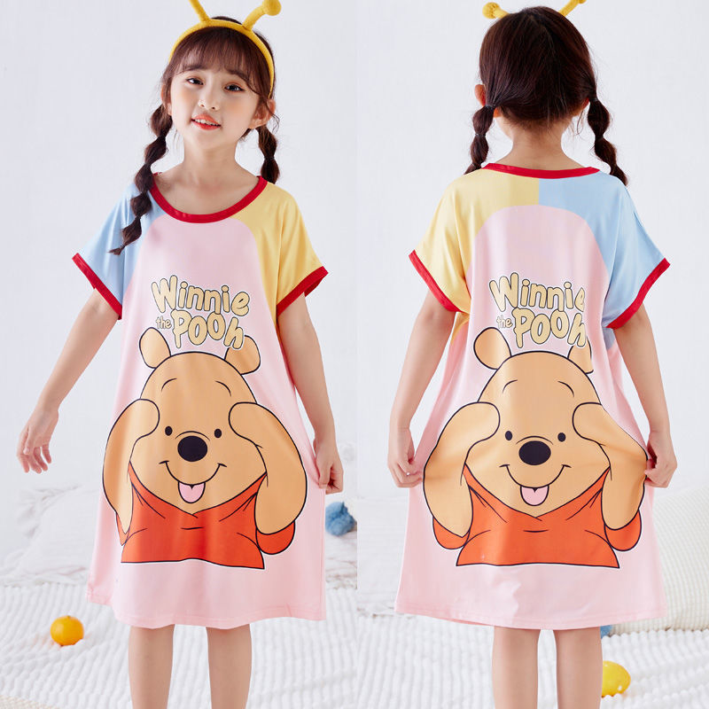 批发夏季儿童睡裙女孩短袖新款睡衣儿童卡通中大女童空调家居服裙