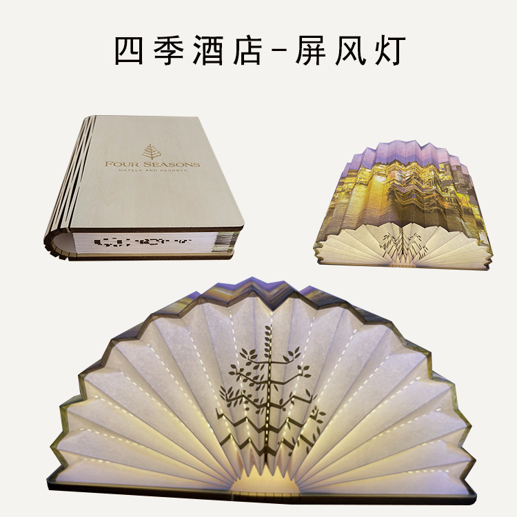 创意折叠蓝牙音乐书灯触摸发光书本灯文创小夜灯新年礼品LED木制