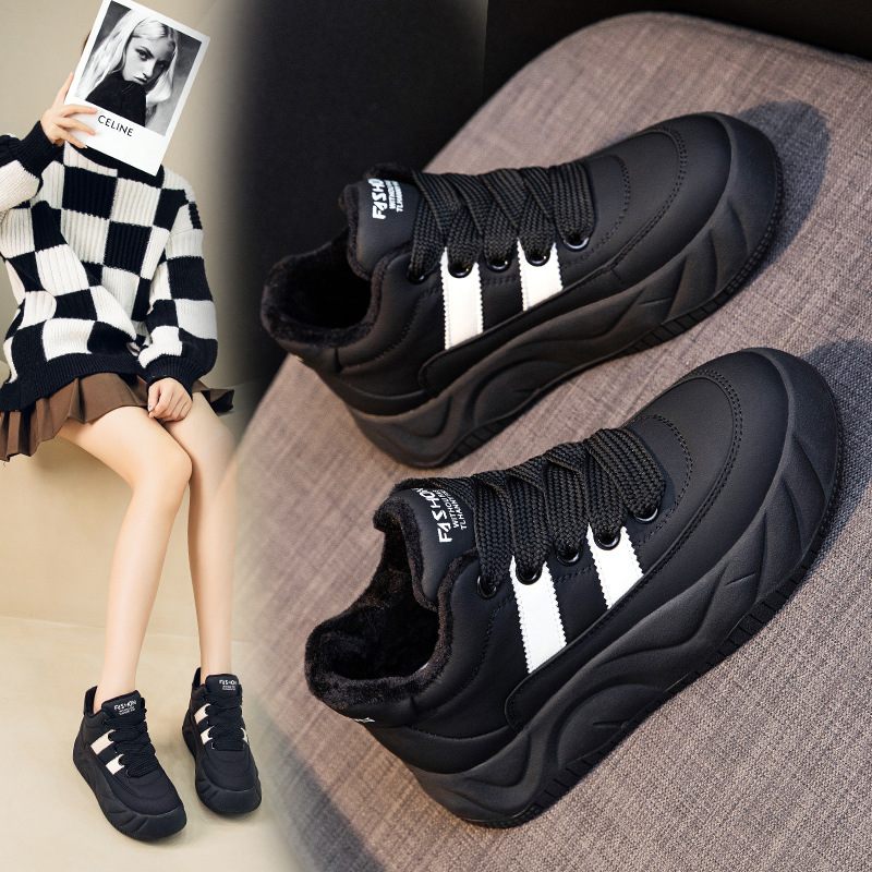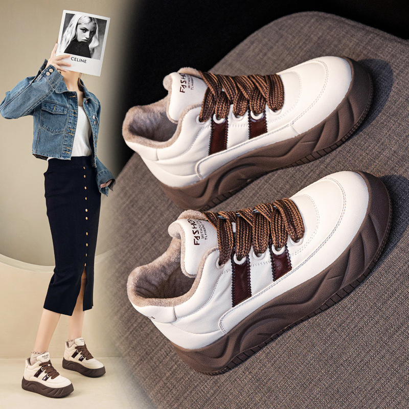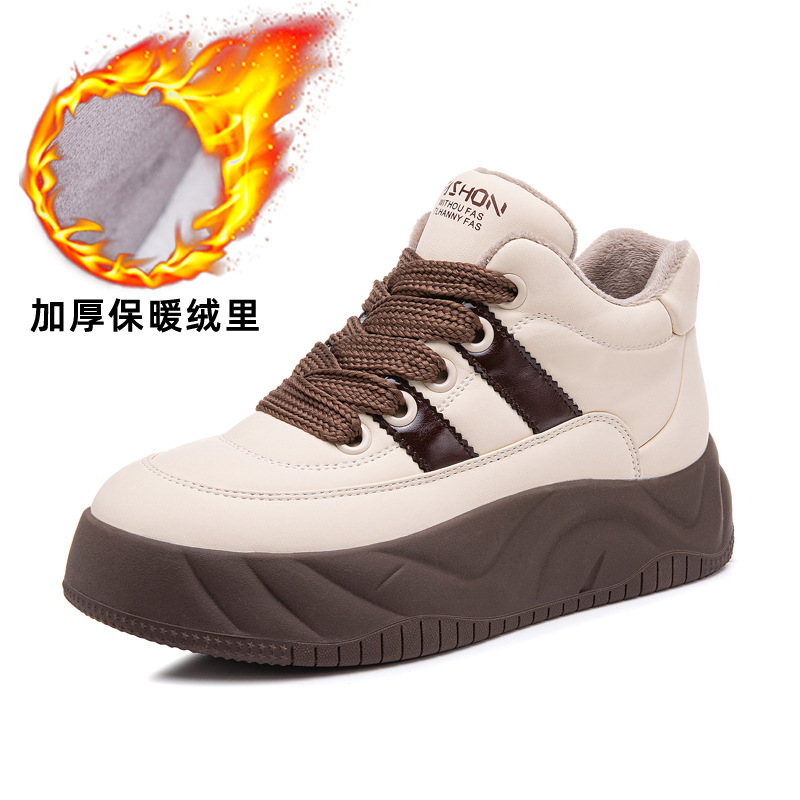 厚底面包鞋女2023秋冬加绒加厚棉鞋高帮平底板鞋百搭休闲小白鞋女
