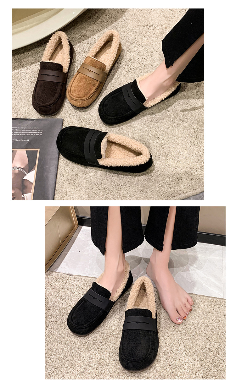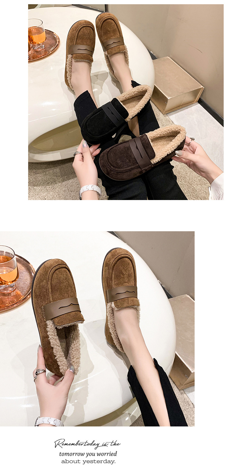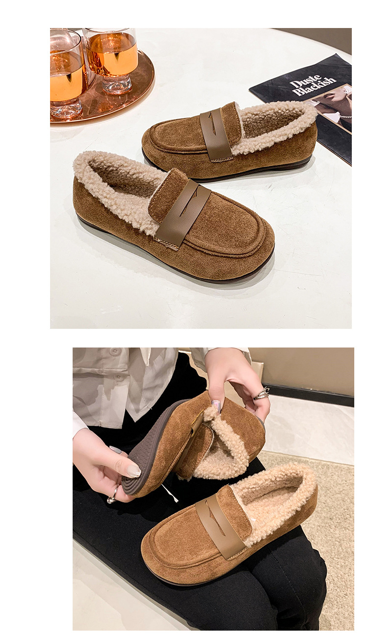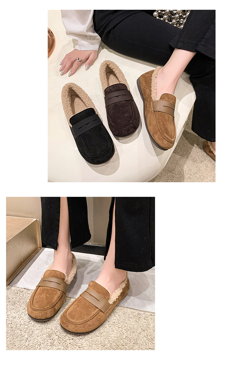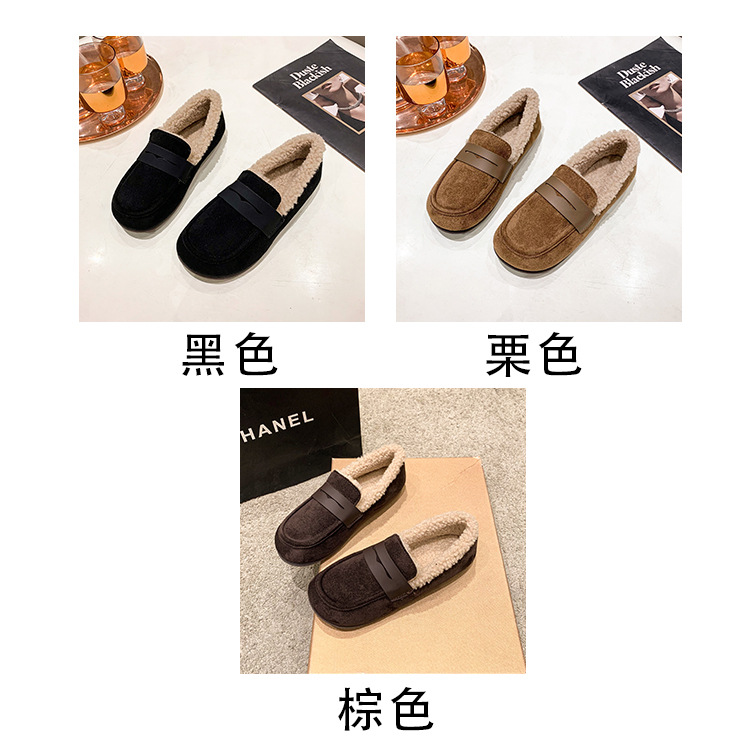 软底软皮加绒保暖小皮鞋女2023秋冬新款平底圆头孕妇一脚蹬豆豆鞋