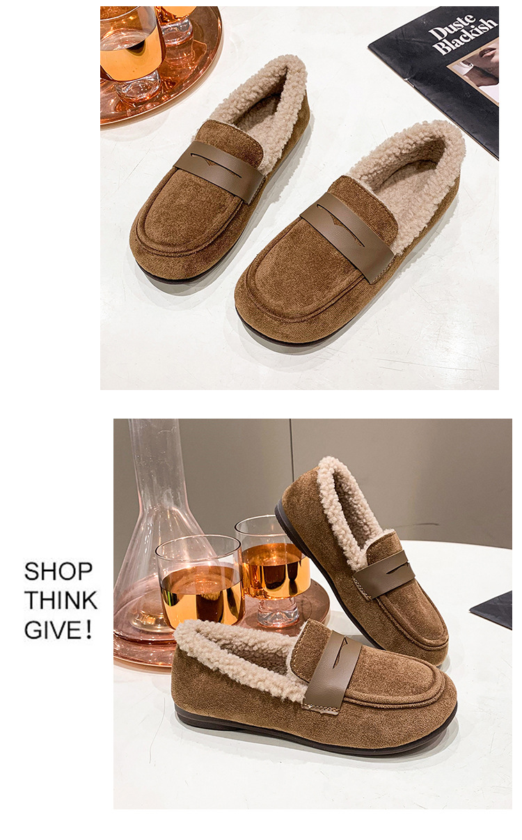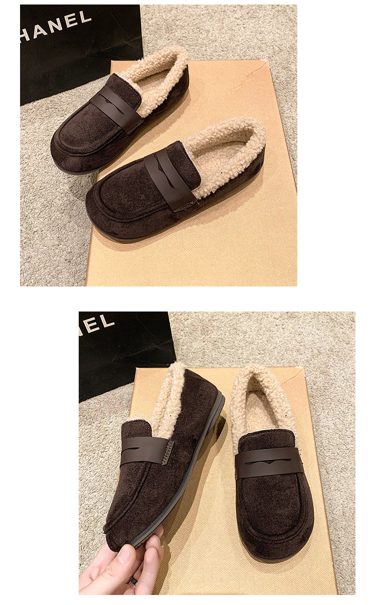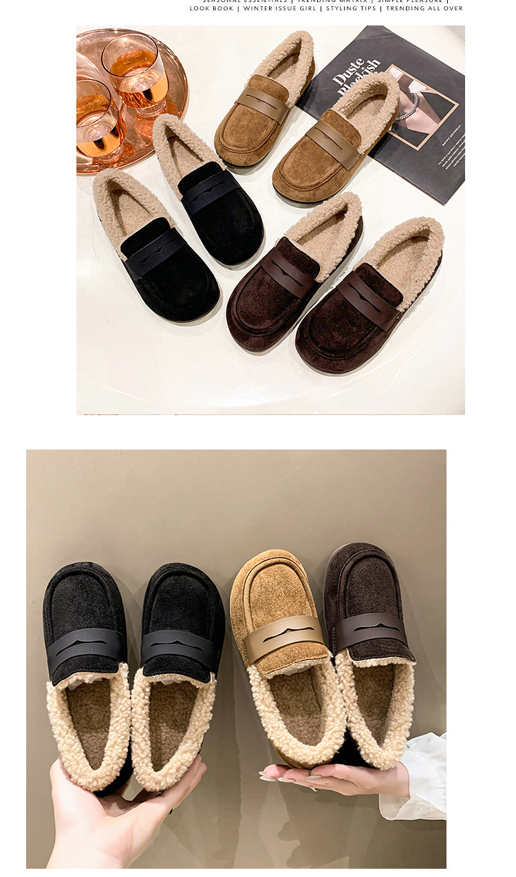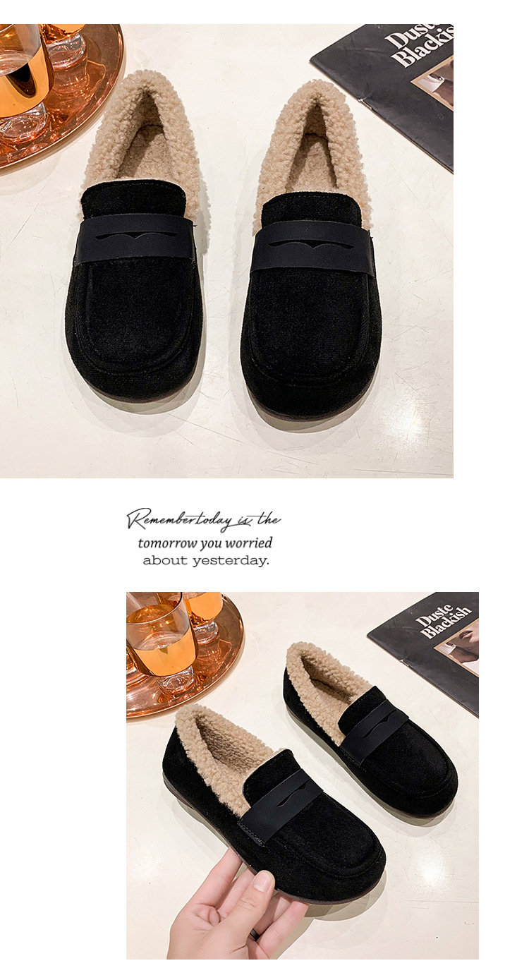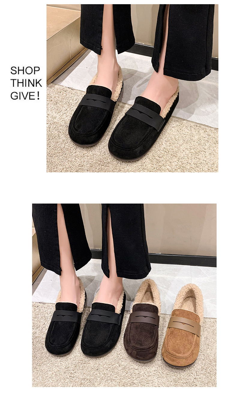 软底软皮加绒保暖小皮鞋女2023秋冬新款平底圆头孕妇一脚蹬豆豆鞋