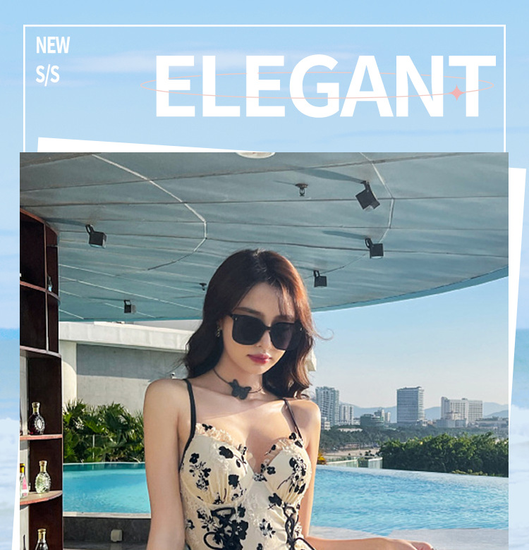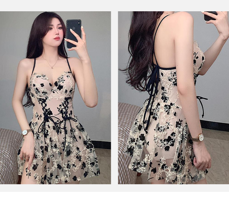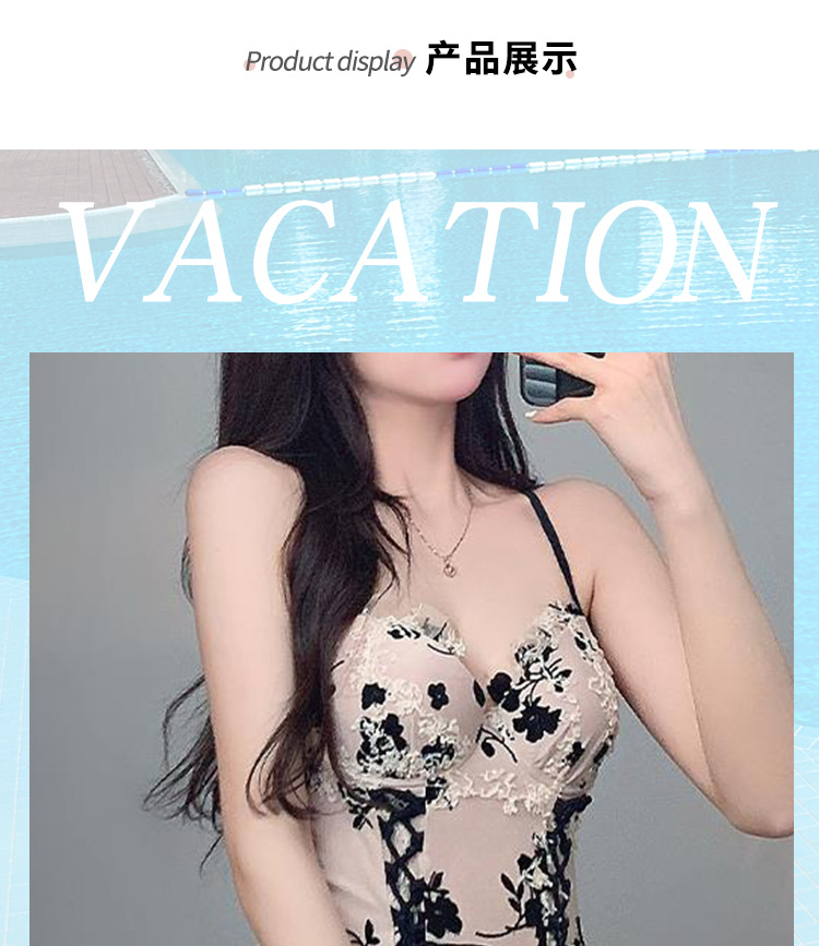 连体泳衣女新款甜美辣妹风吊带连衣裙遮肚显瘦御姐气质温泉泳装