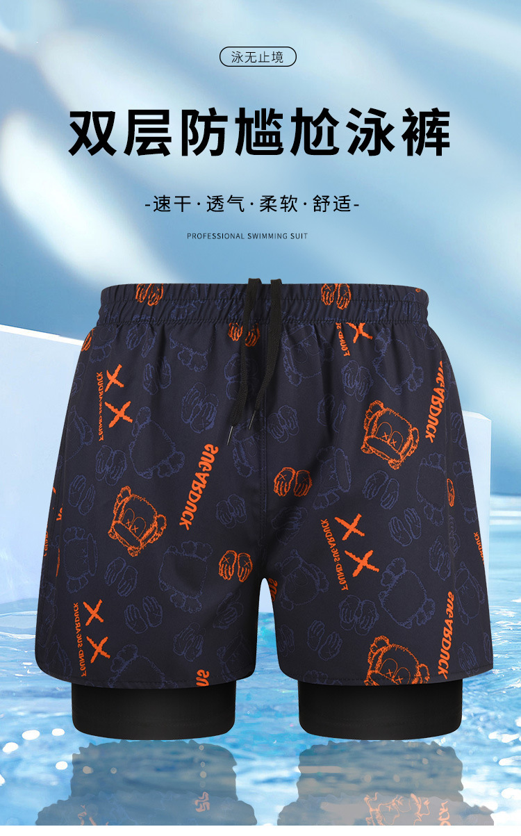 男士泳裤防尴尬双层款式速干大码平角泳衣温泉专业游泳全套装备