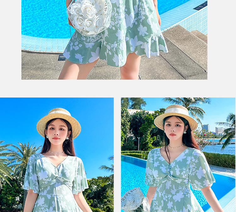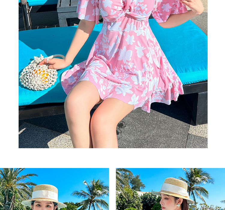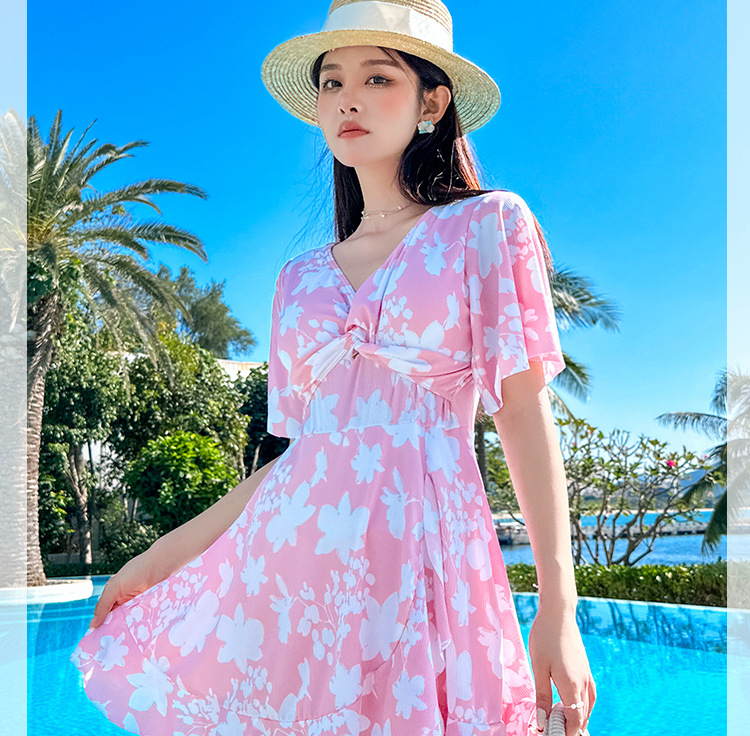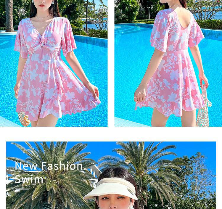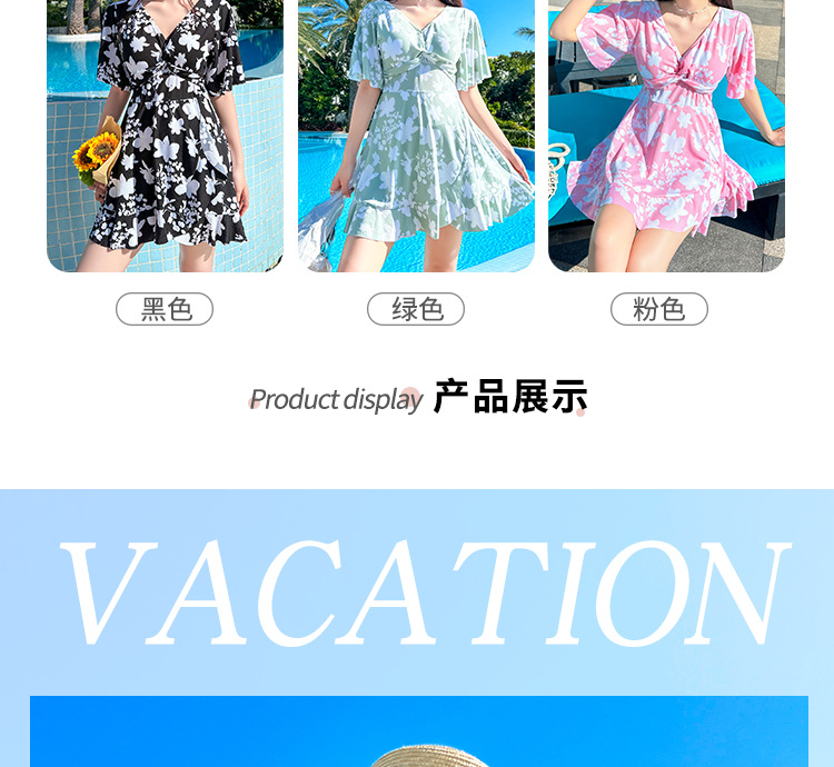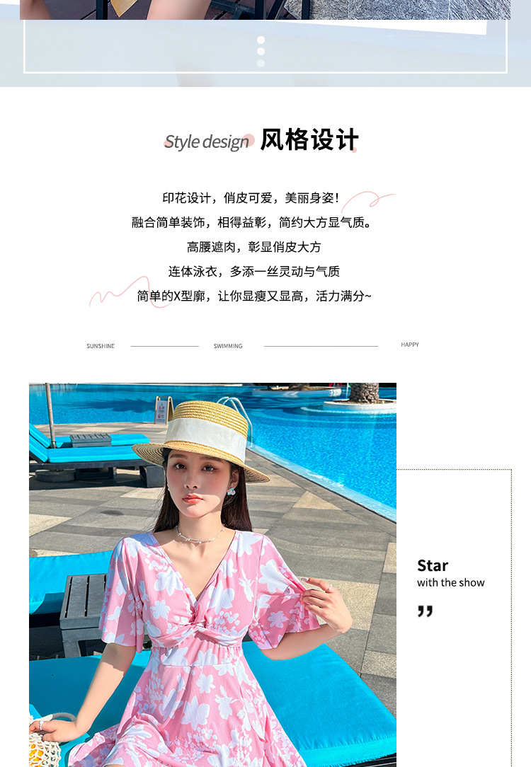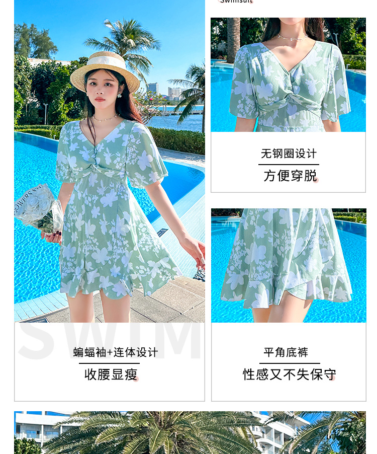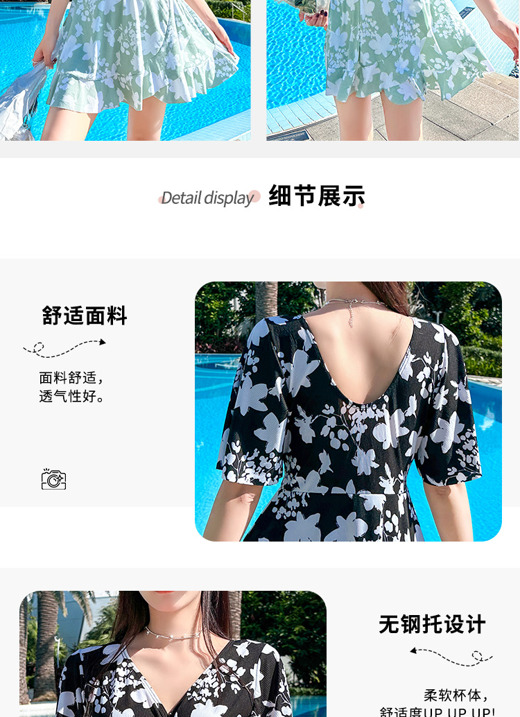 大码游泳衣女连体保守裙式胖mm大胸遮肚显瘦泡温泉妈妈款泳装宽松