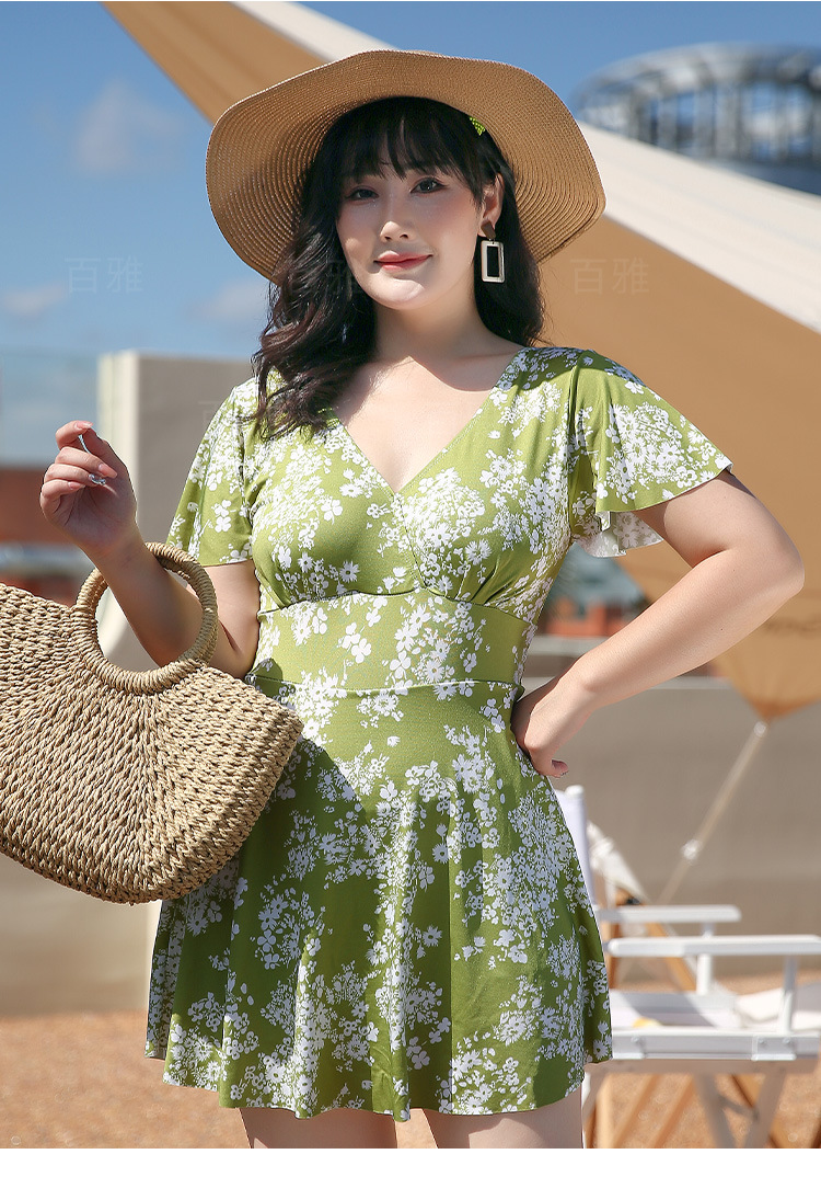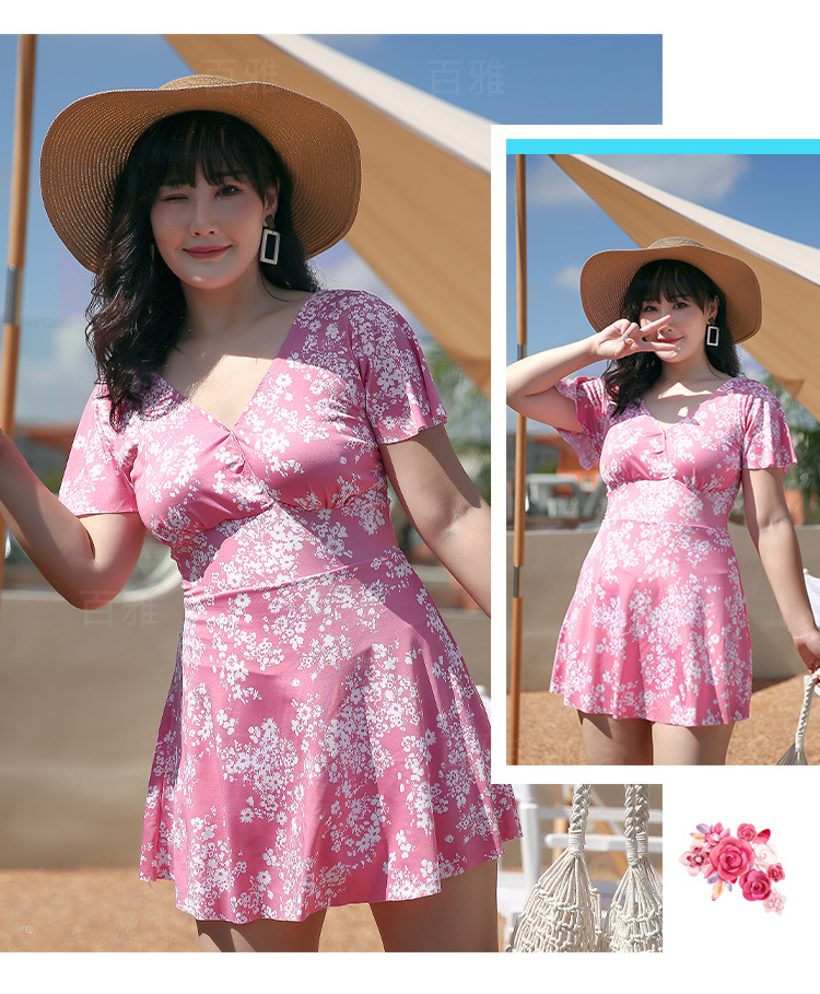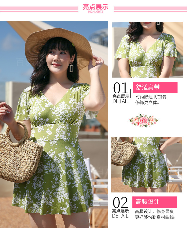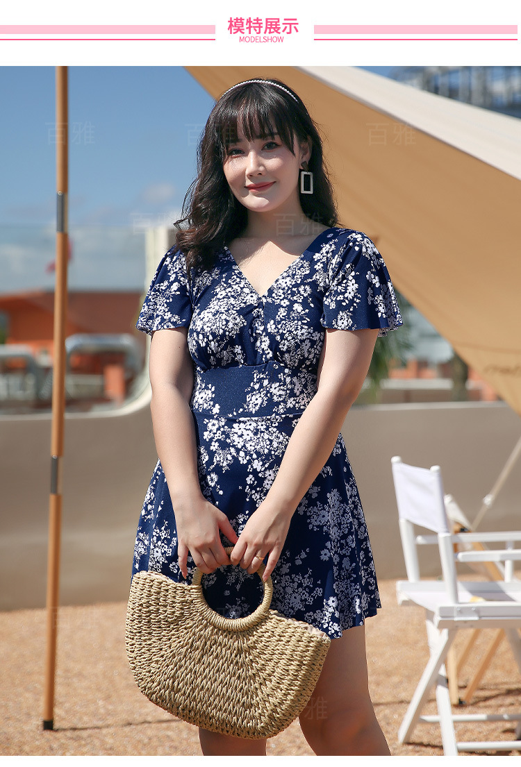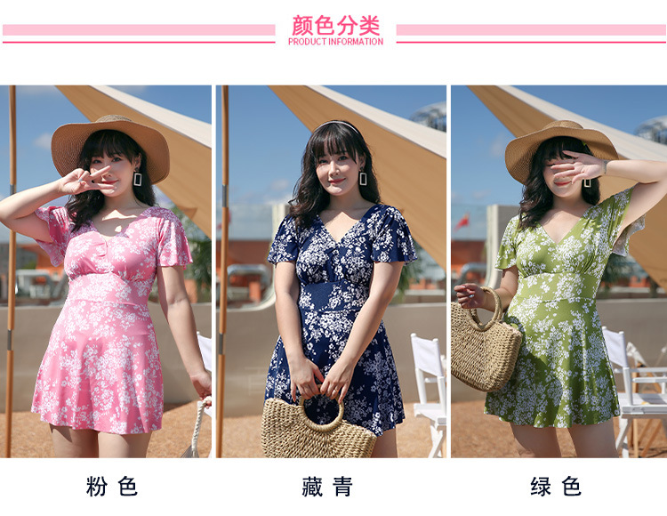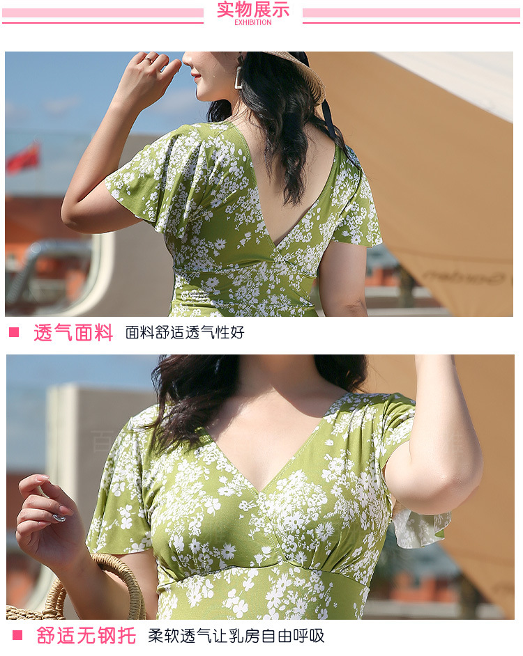 大码泳衣女显瘦遮肚大胸聚拢保守裙式连体泳装海边温泉游泳衣现货