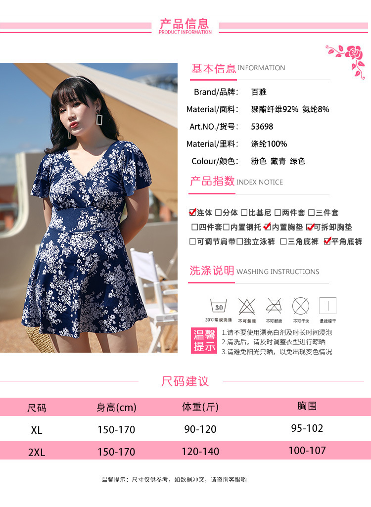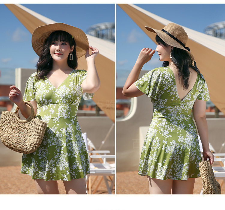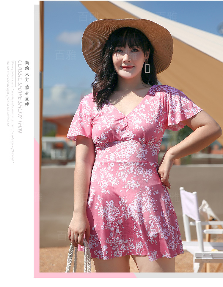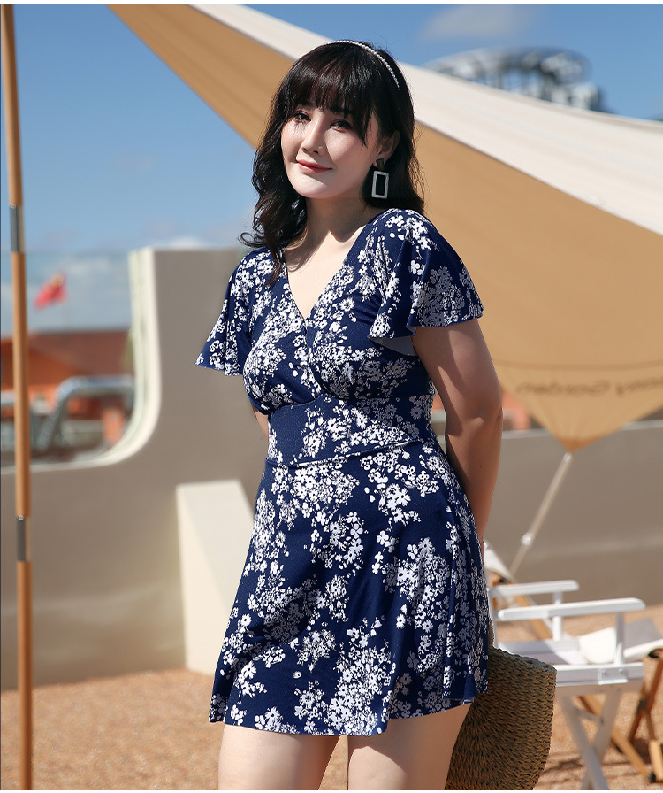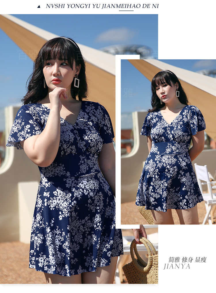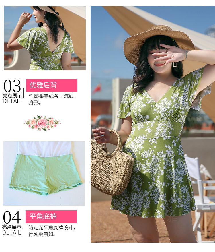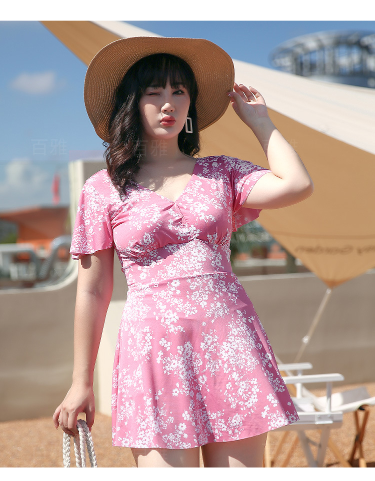 大码泳衣女显瘦遮肚大胸聚拢保守裙式连体泳装海边温泉游泳衣现货