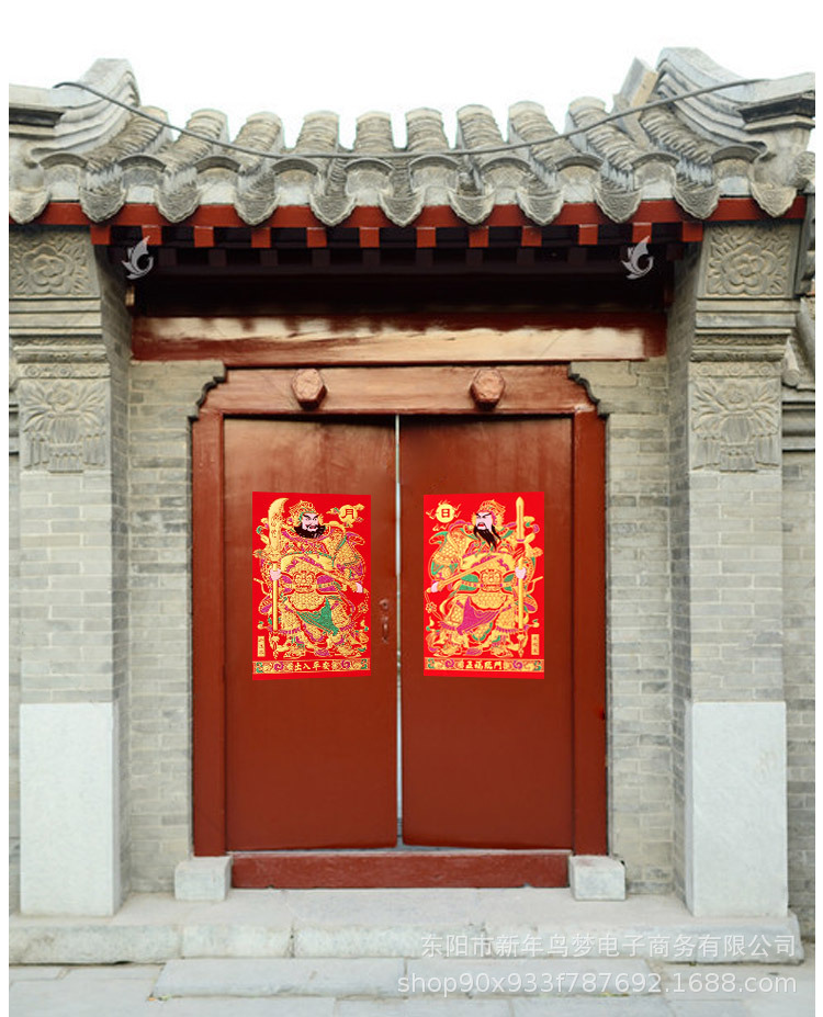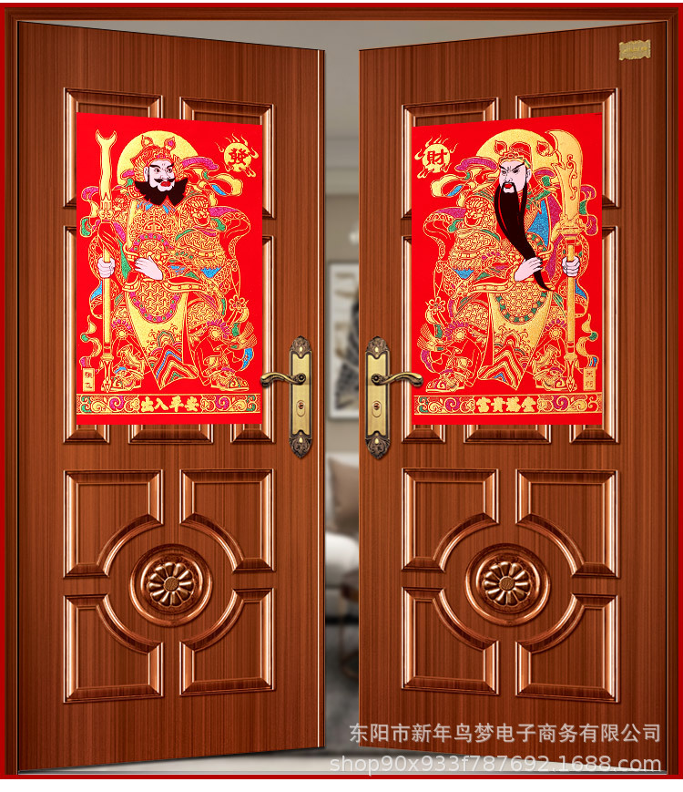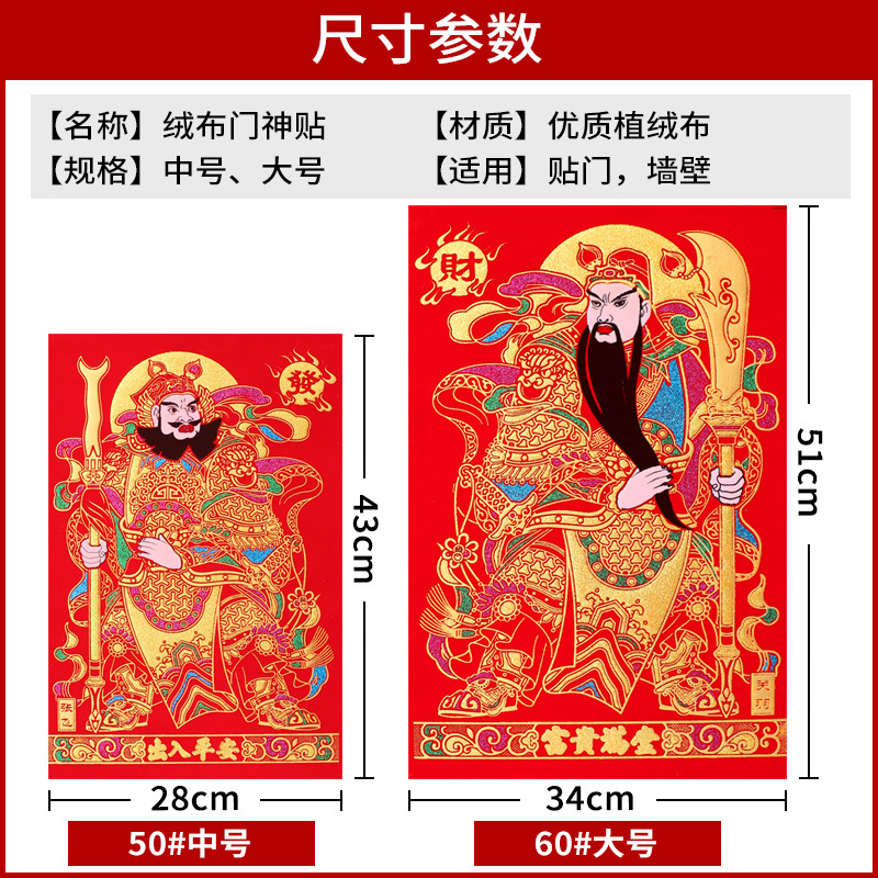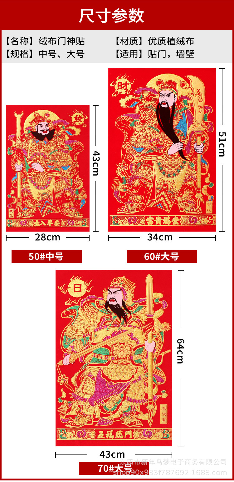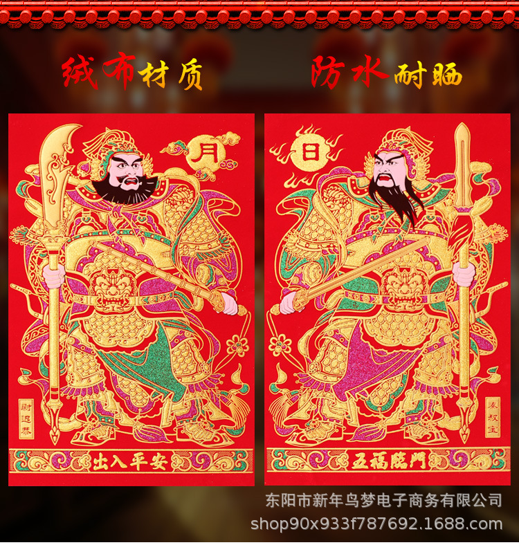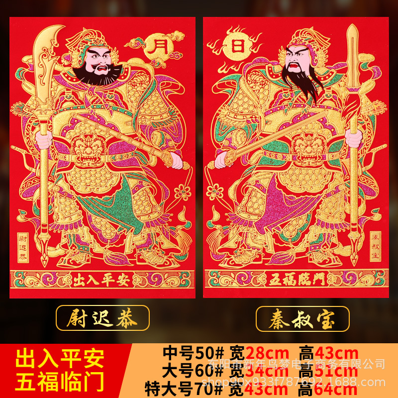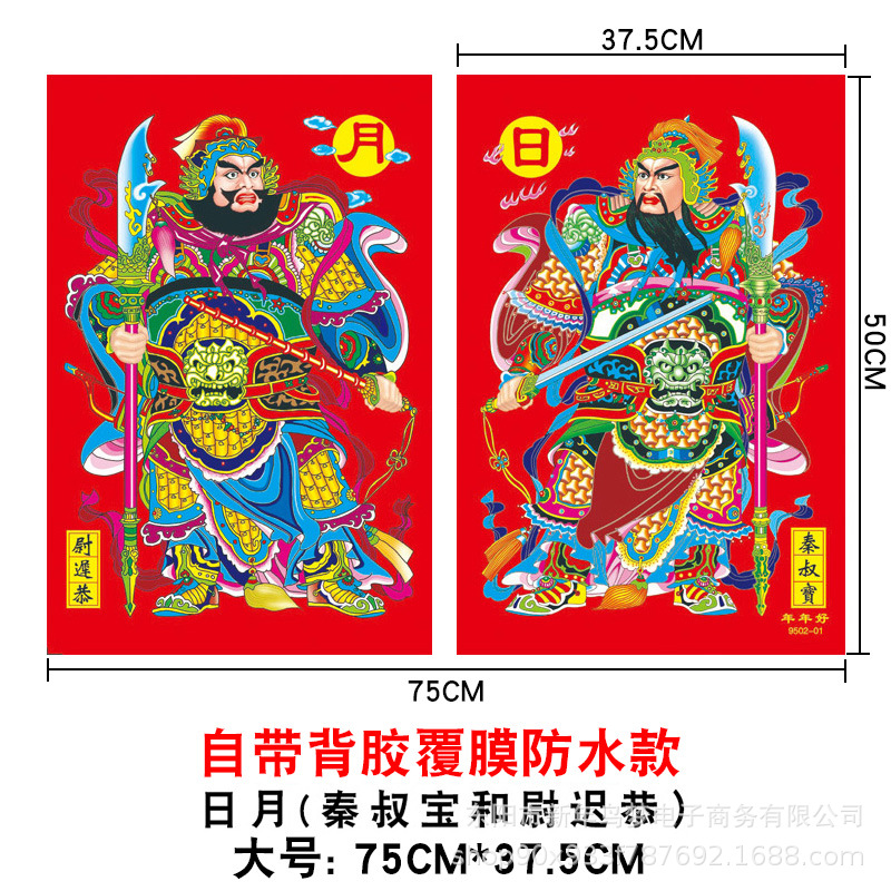 门神新年大门门贴春节烫金秦叔宝尉迟恭日月装饰年画自粘绒布镇宅