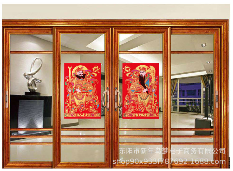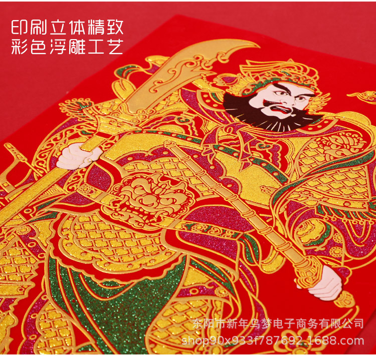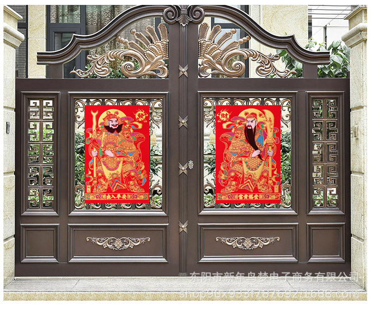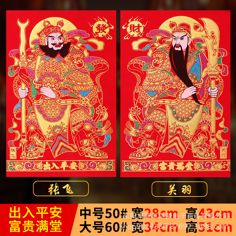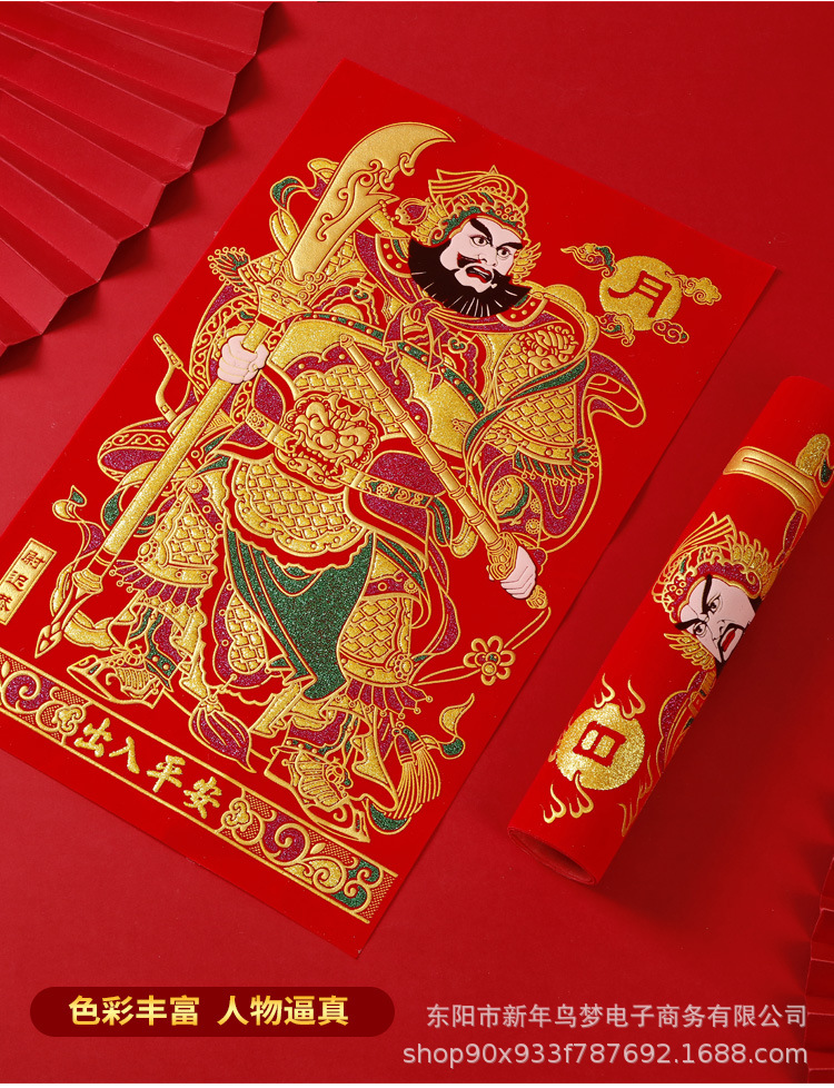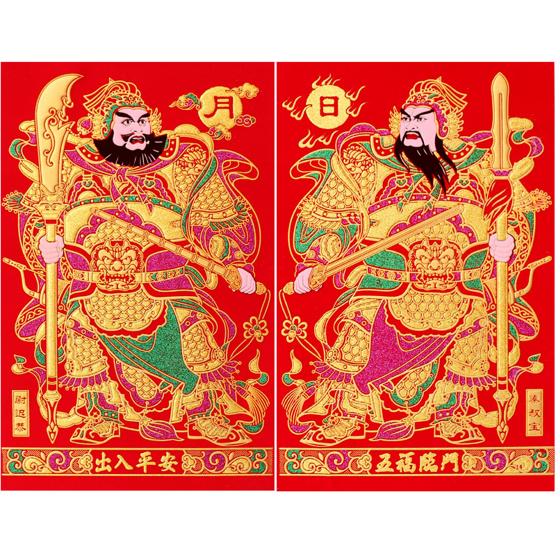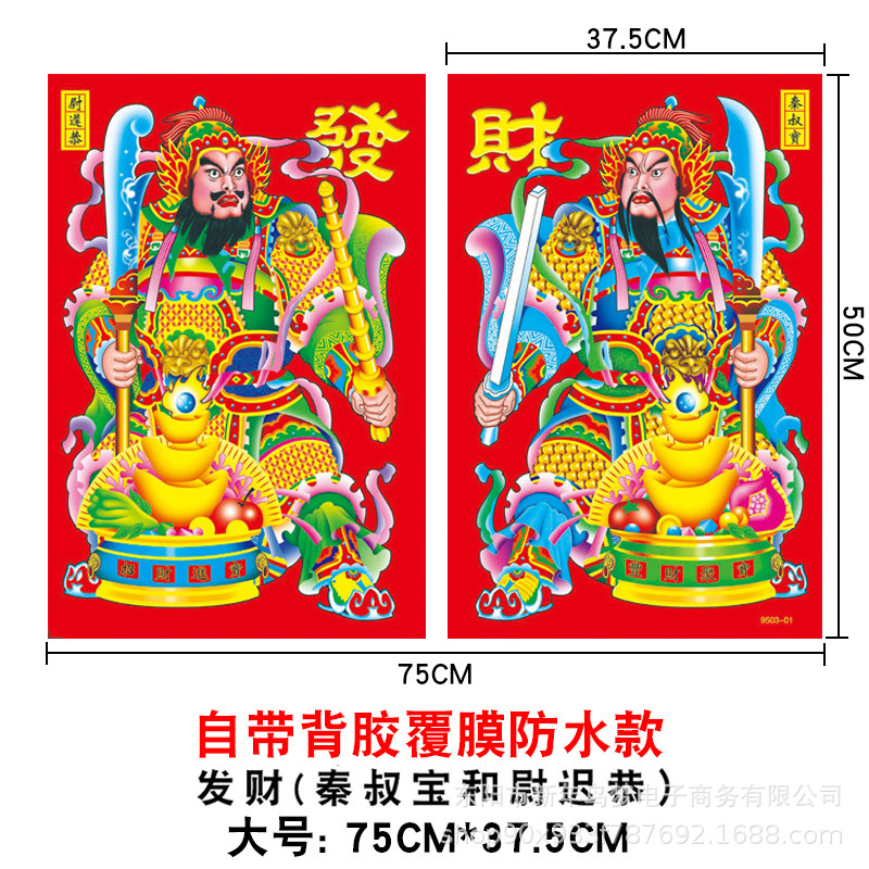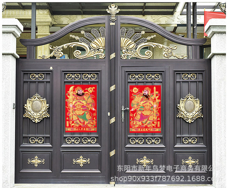 门神新年大门门贴春节烫金秦叔宝尉迟恭日月装饰年画自粘绒布镇宅