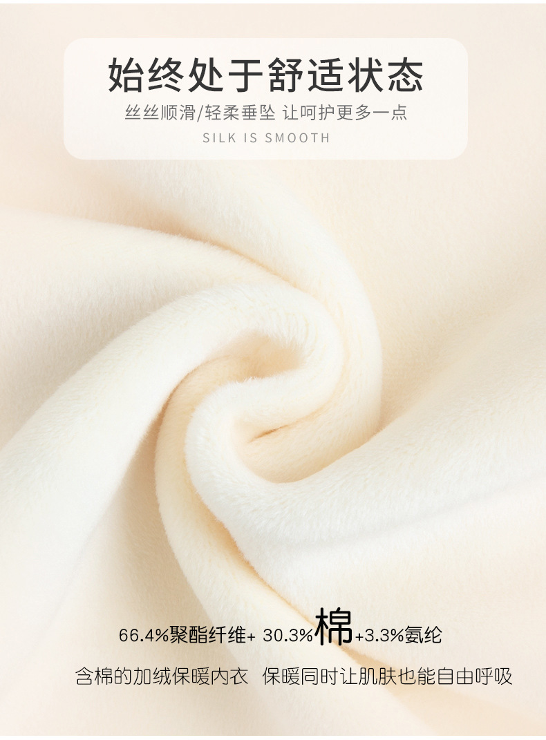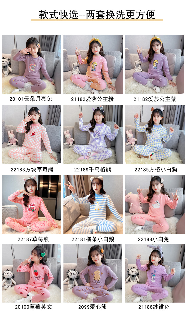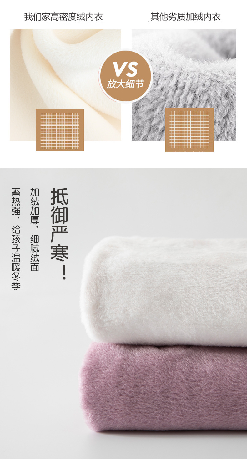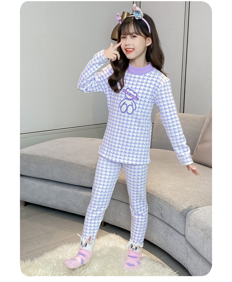 A类一体绒圆领保暖内衣套装 儿童千鸟格熊23秋冬新款女童加绒内衣