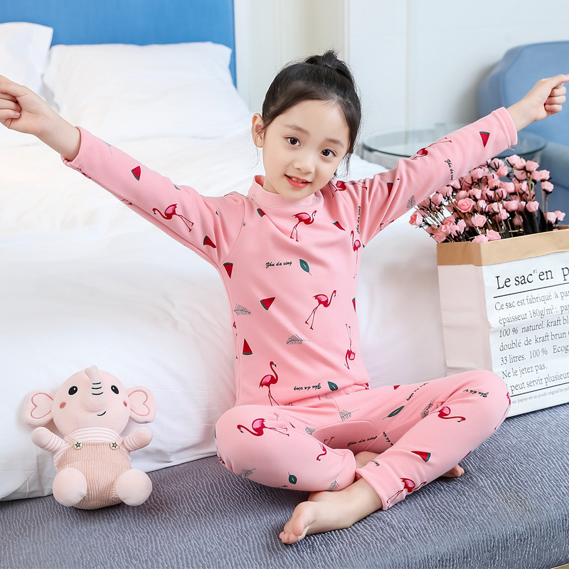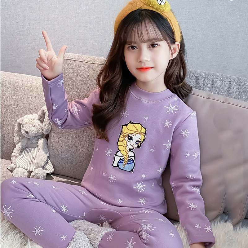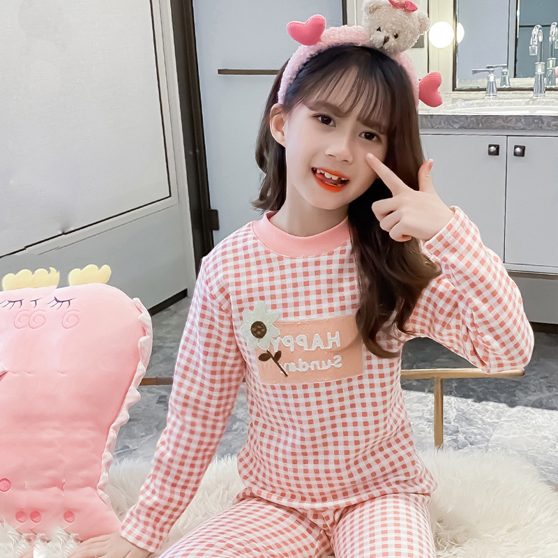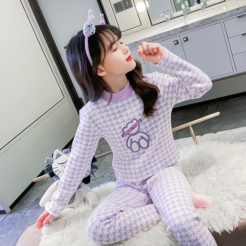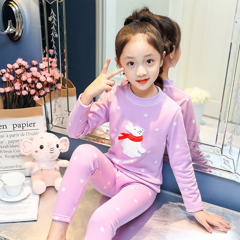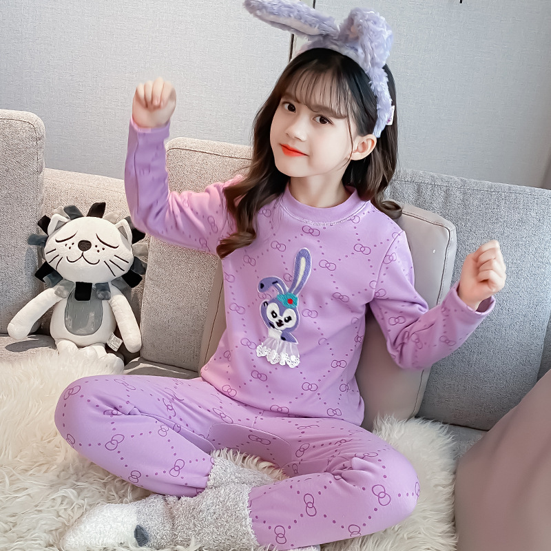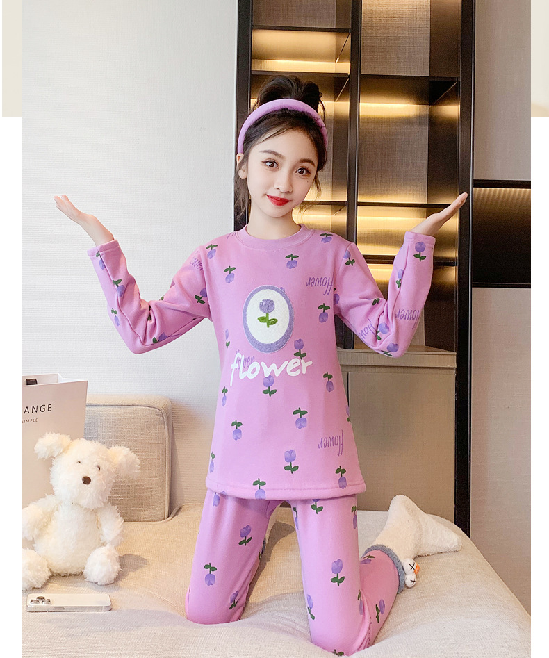 2023秋冬新款女童A类一体绒圆领保暖内衣套装 儿童郁金香加绒内衣
