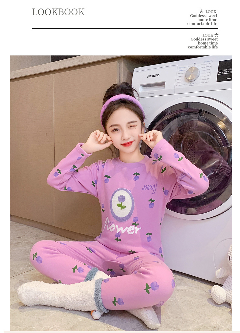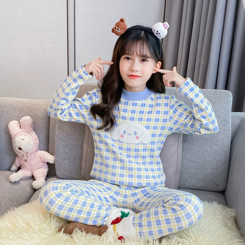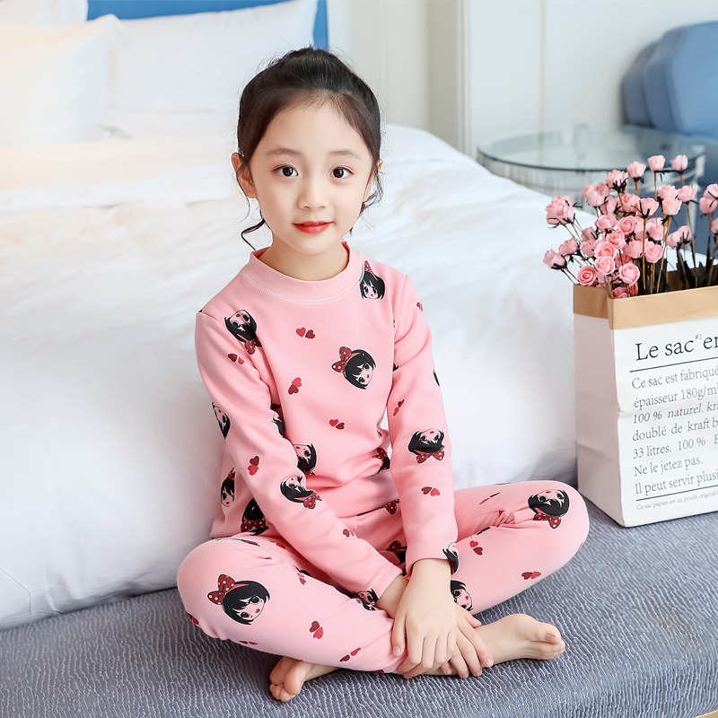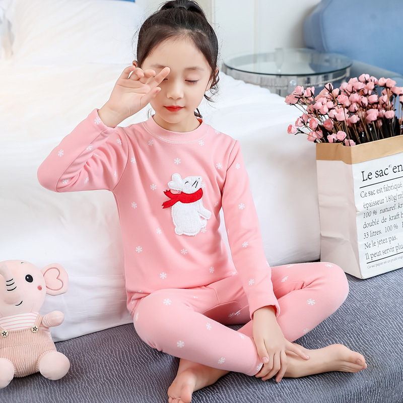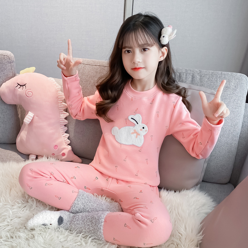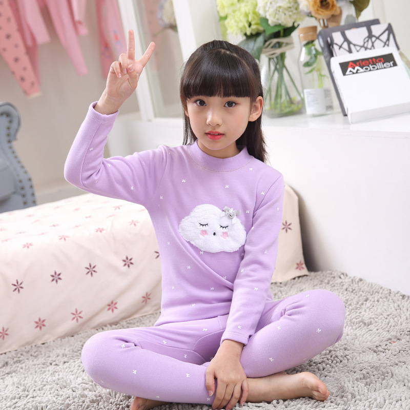 2023秋冬新款女童A类一体绒圆领保暖内衣套装 儿童郁金香加绒内衣