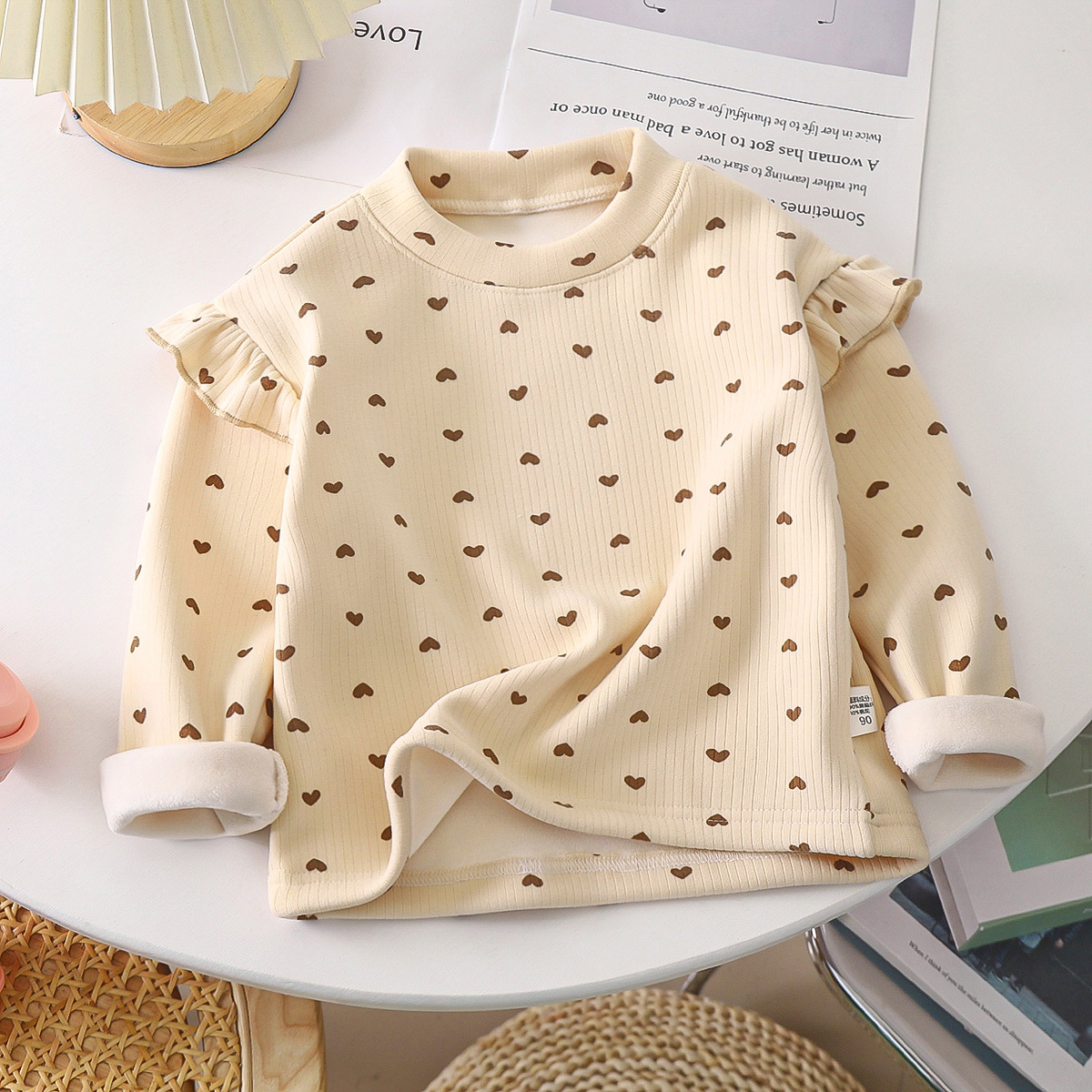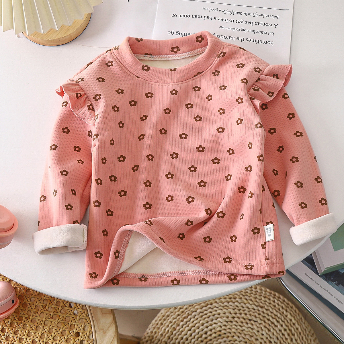 女童秋冬季碎花打底衫女童飞袖秋季T恤小女孩百搭网红飞袖打底衫