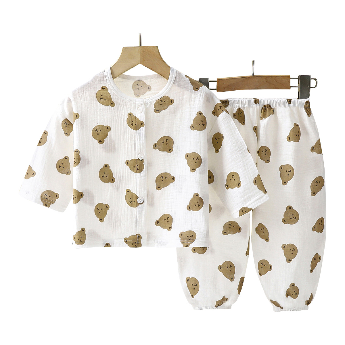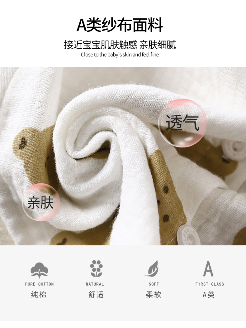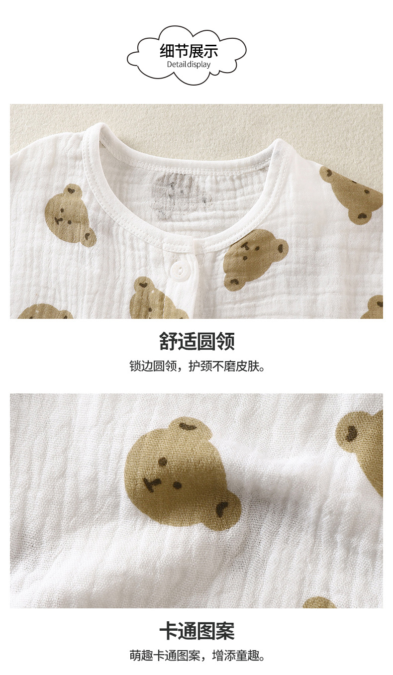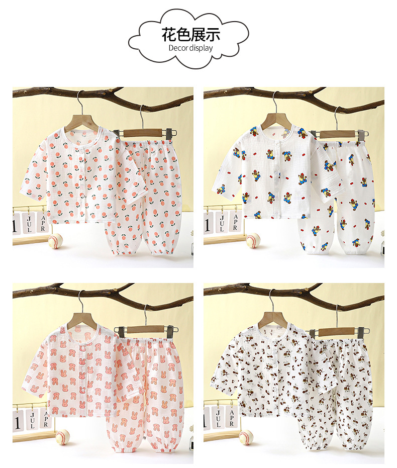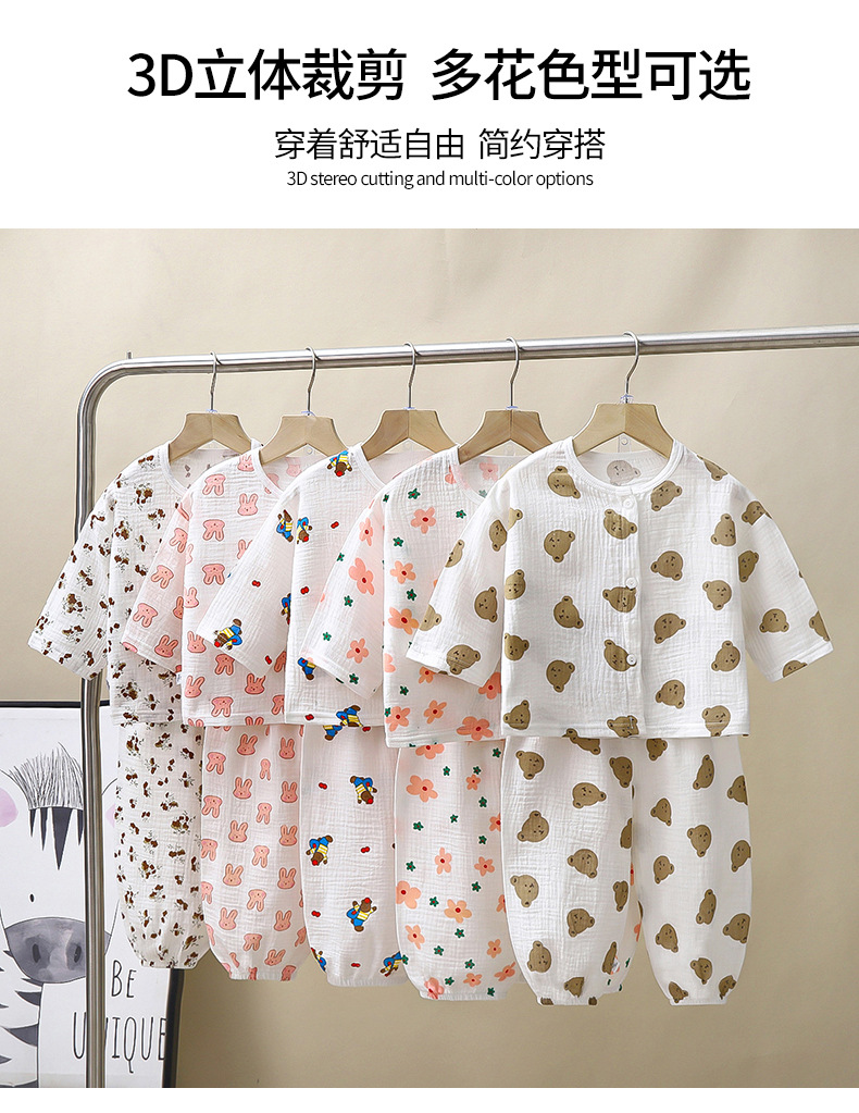 儿童薄款双层棉纱布睡衣夏季女童家居服男宝宝长袖灯笼裤套装春秋