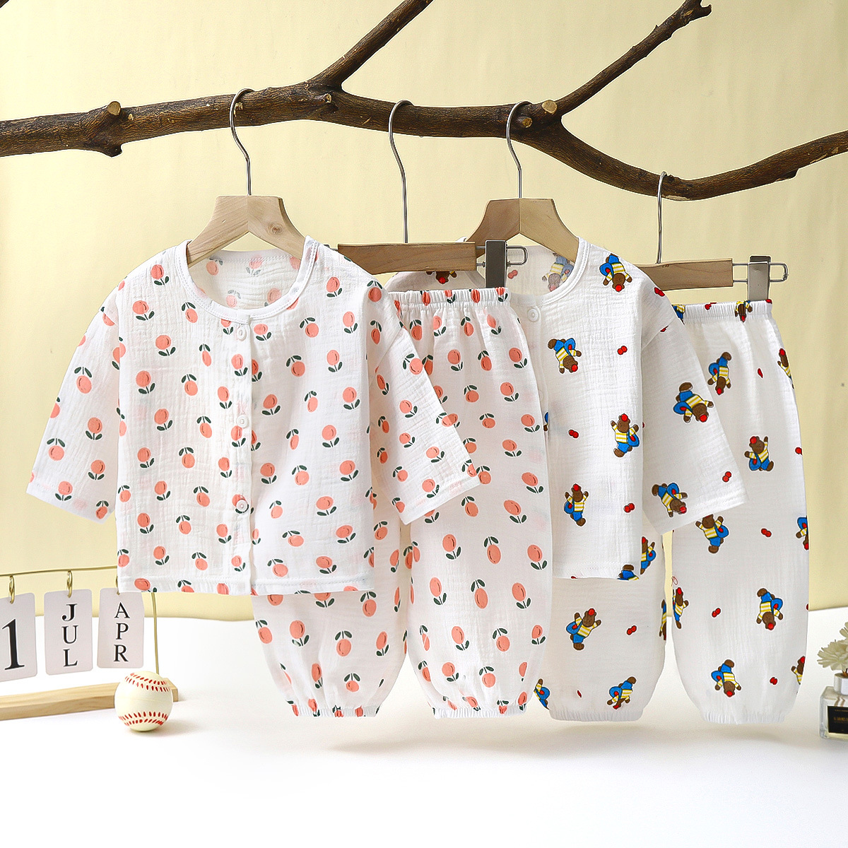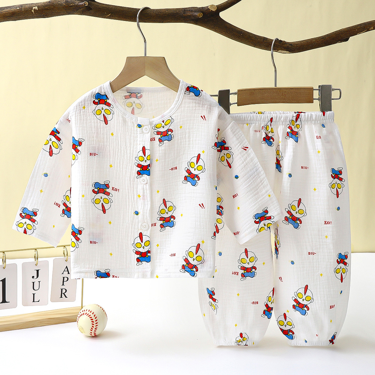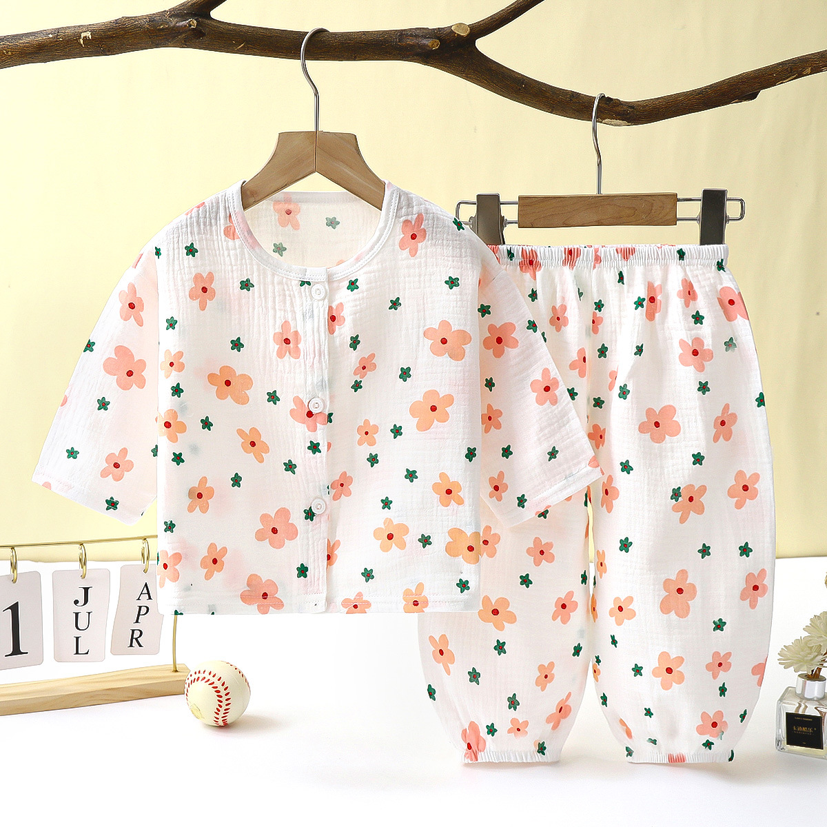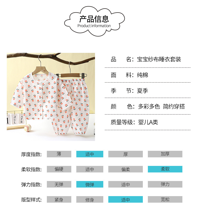 儿童薄款双层棉纱布睡衣夏季女童家居服男宝宝长袖灯笼裤套装春秋