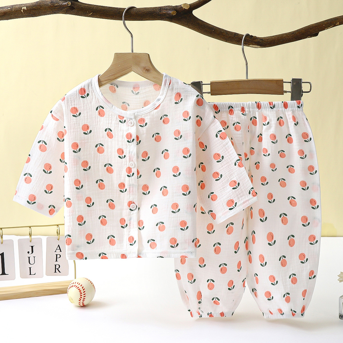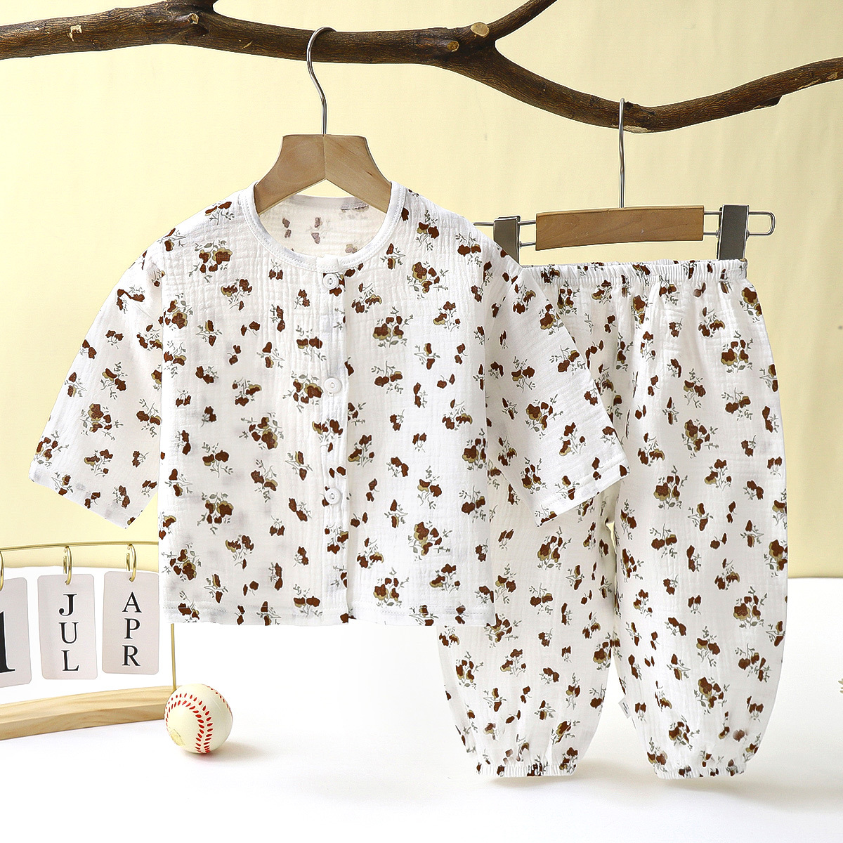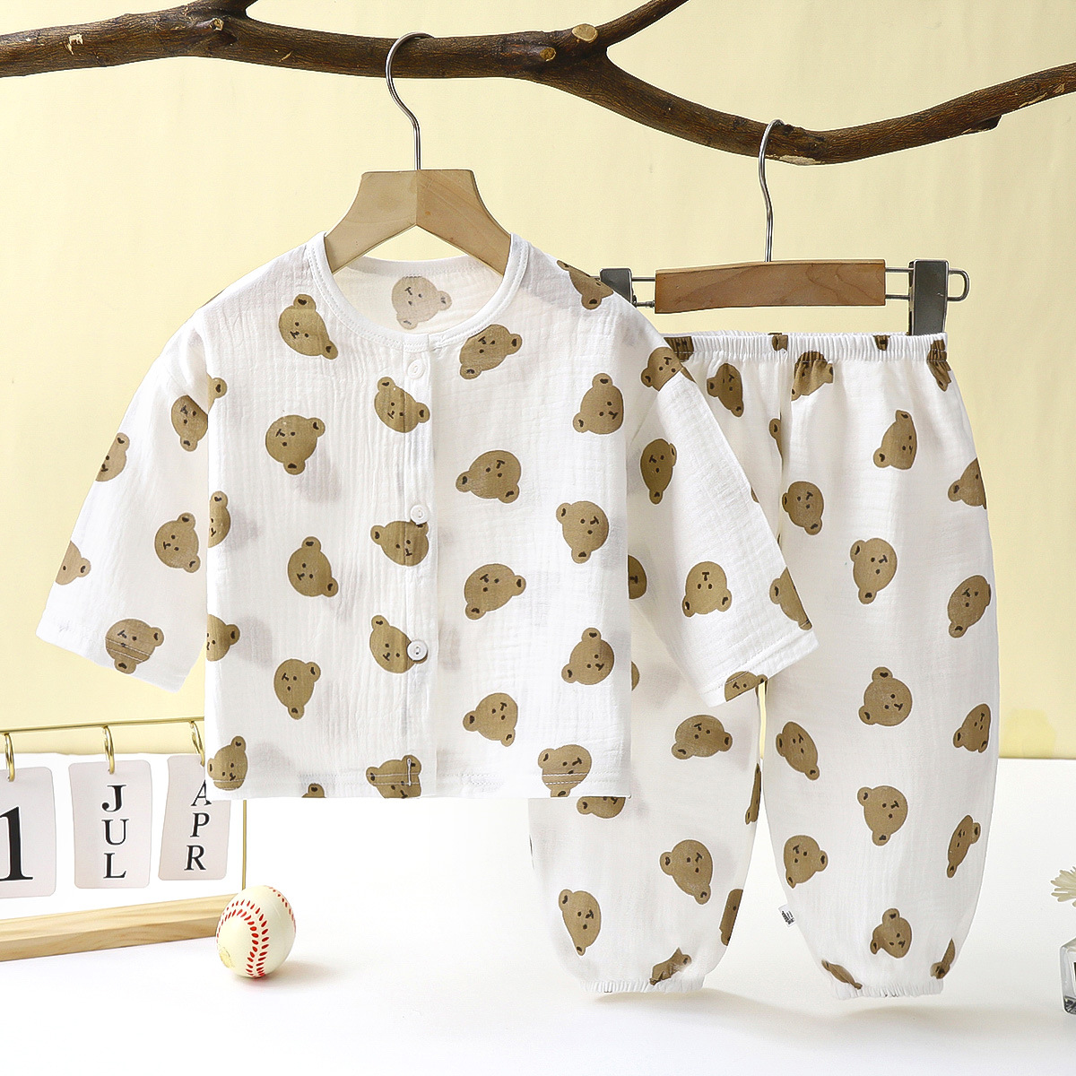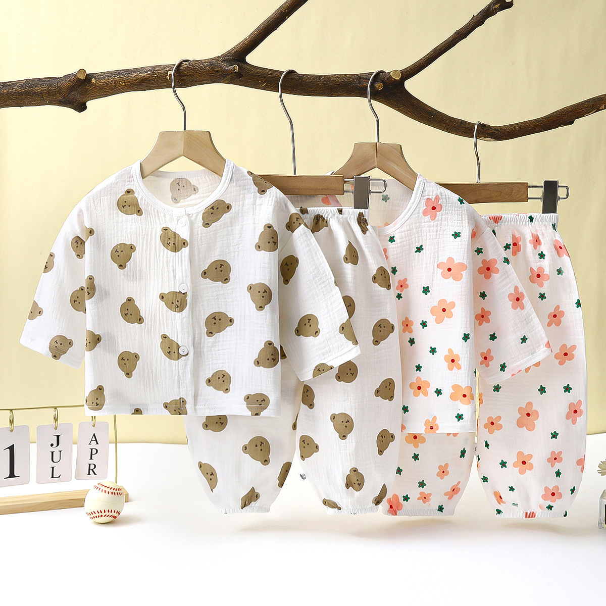 儿童薄款双层棉纱布睡衣夏季女童家居服男宝宝长袖灯笼裤套装春秋