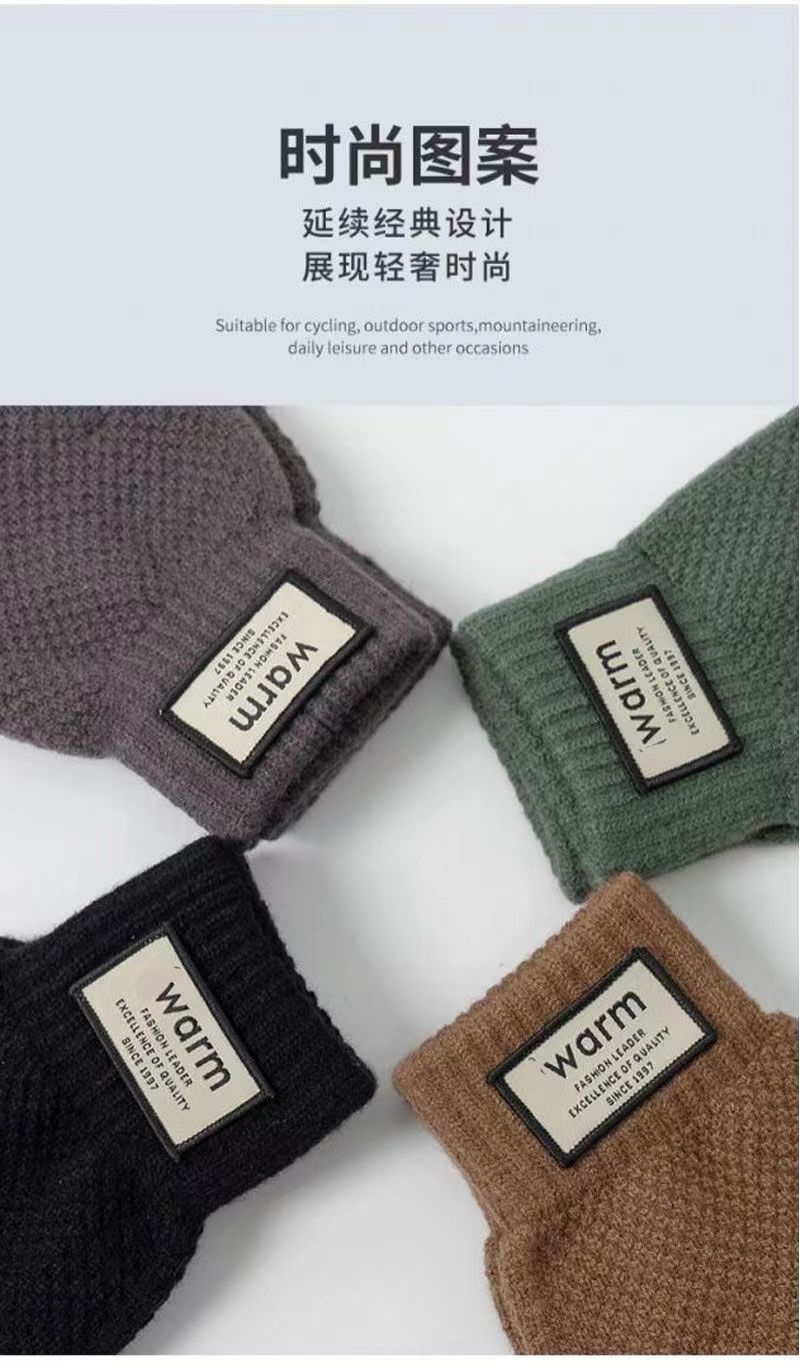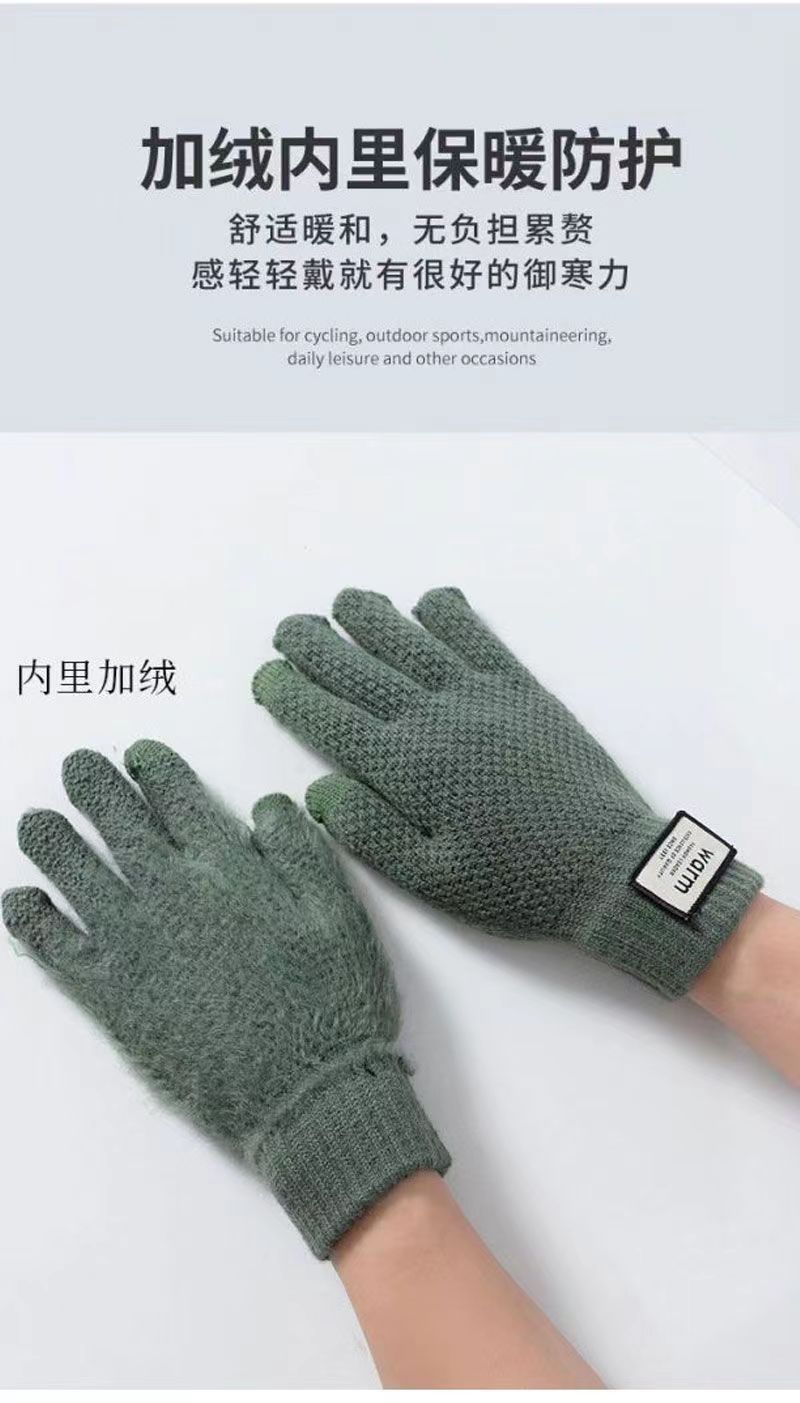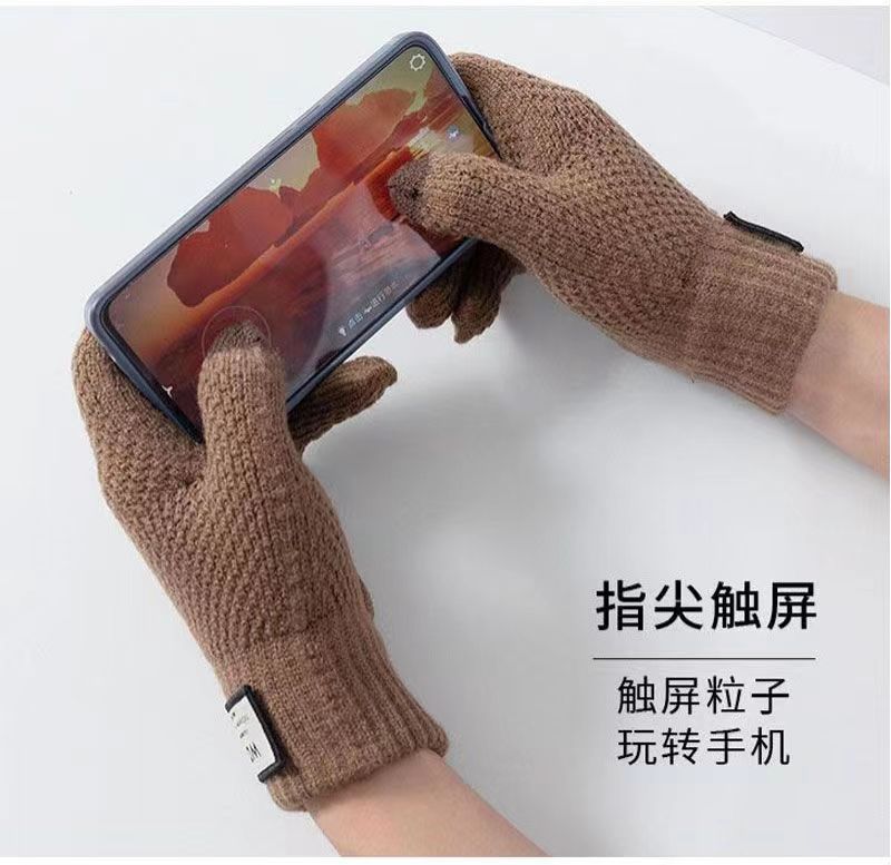 毛线冬天男款触屏针织情侣秋冬加绒加厚骑行防寒成人大码保暖手套