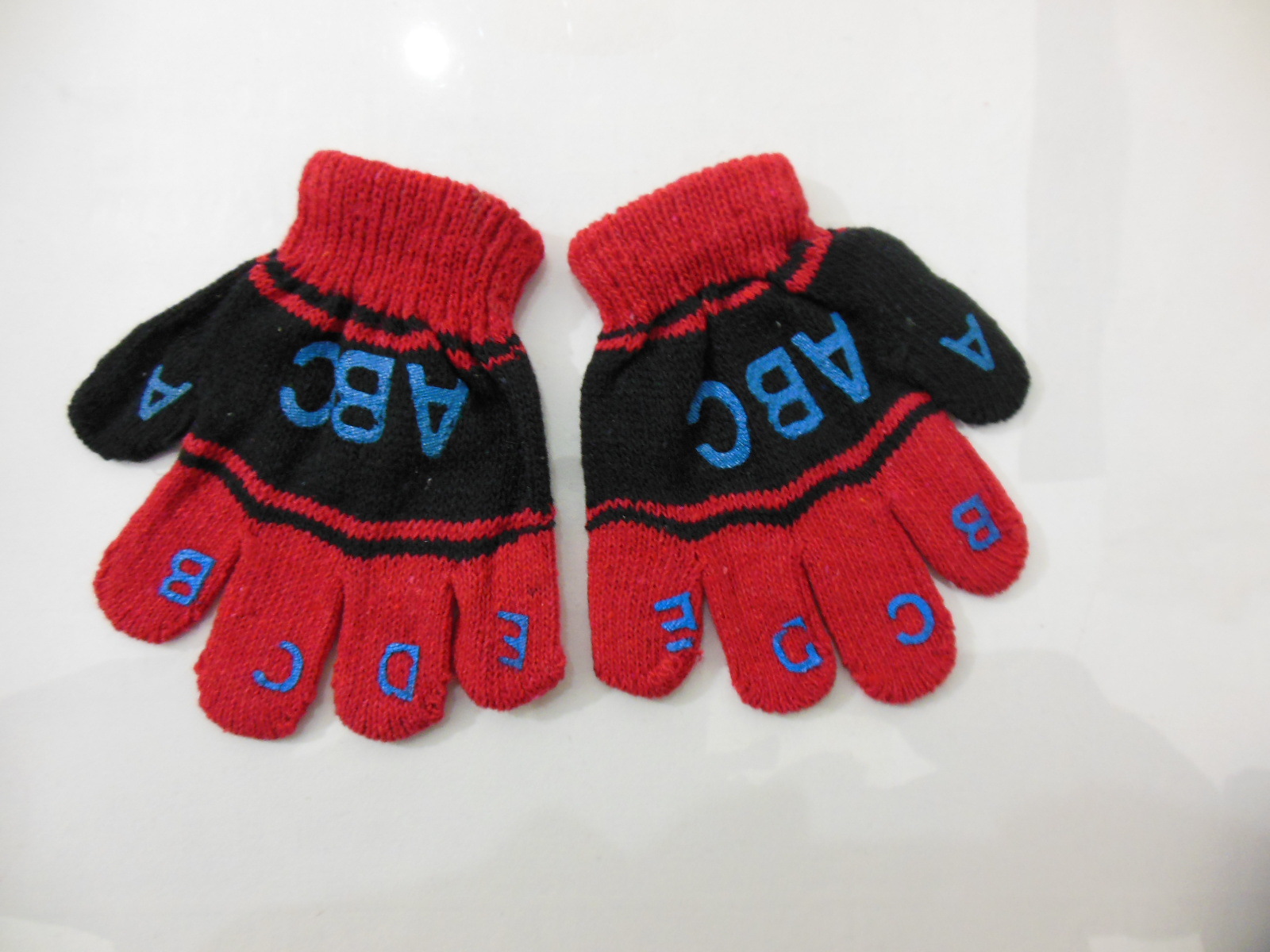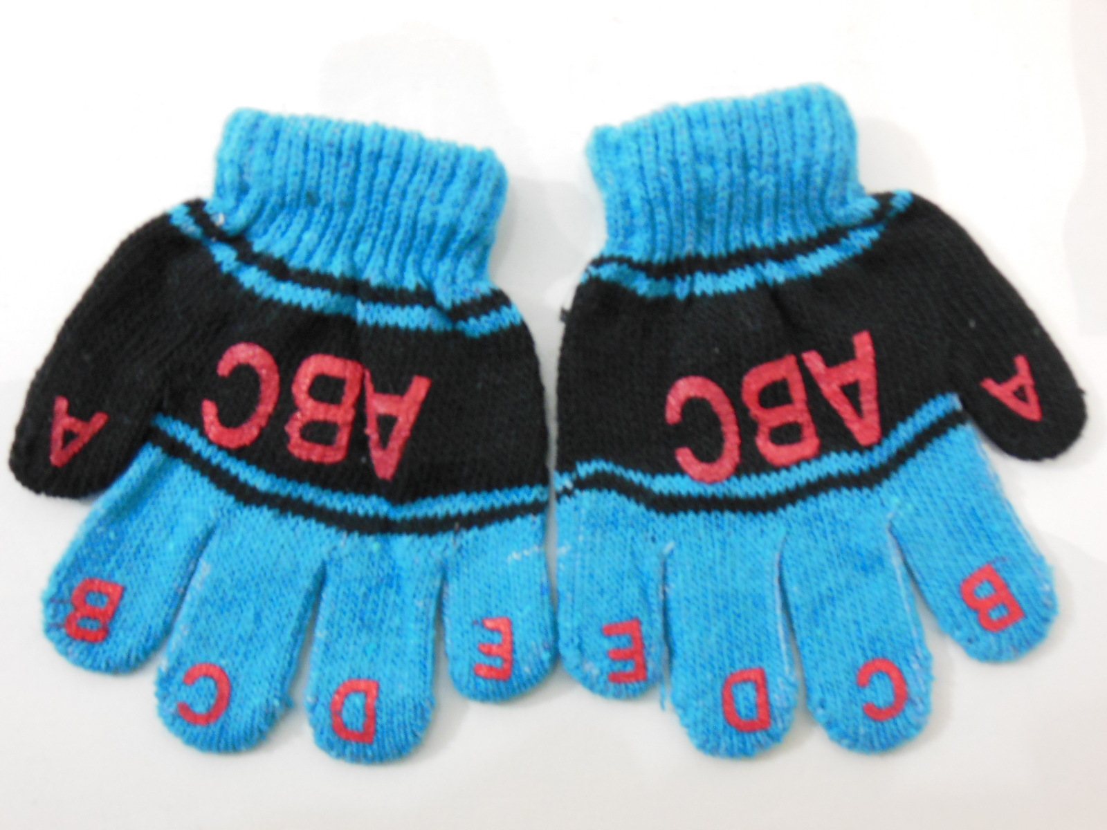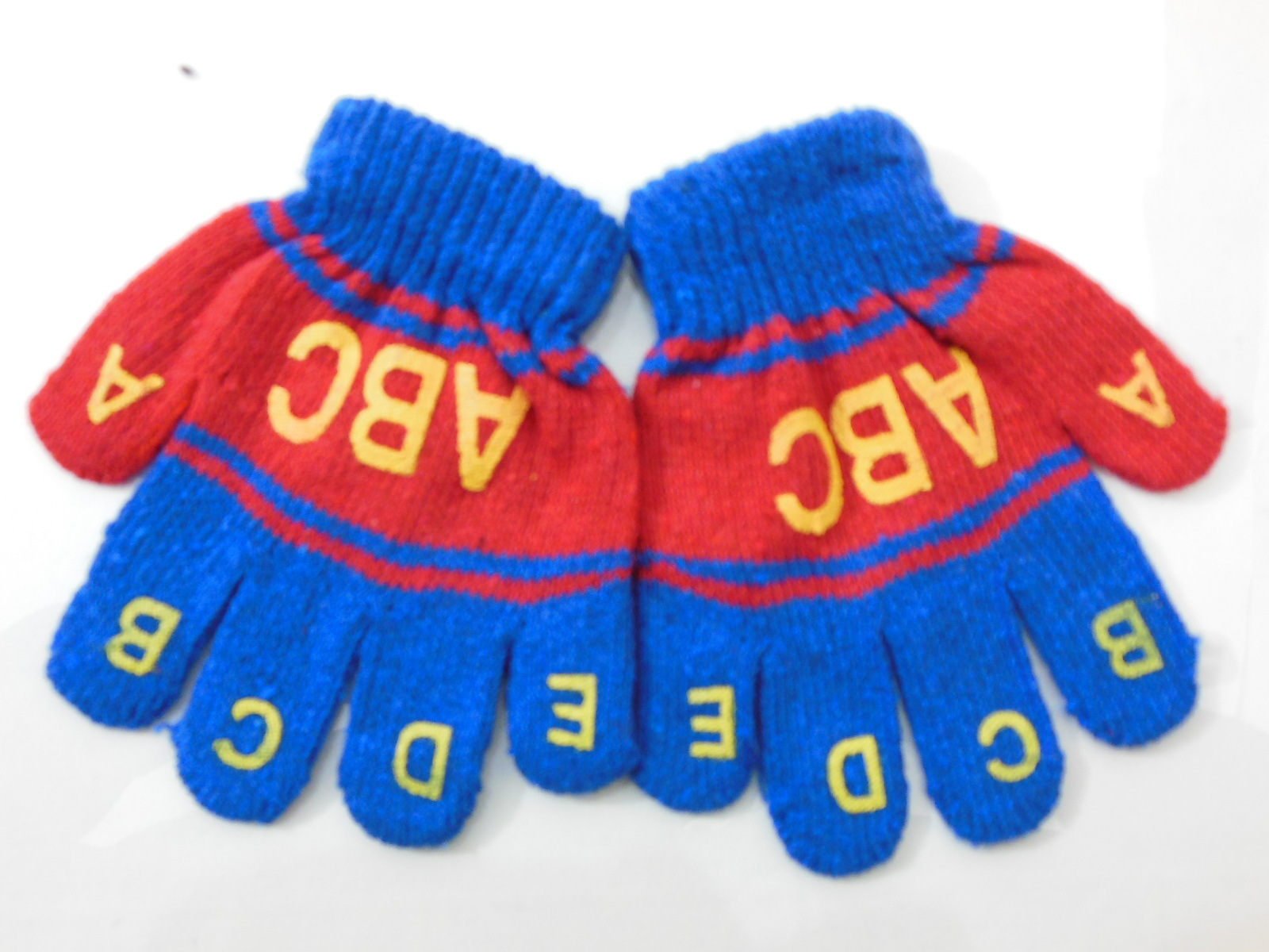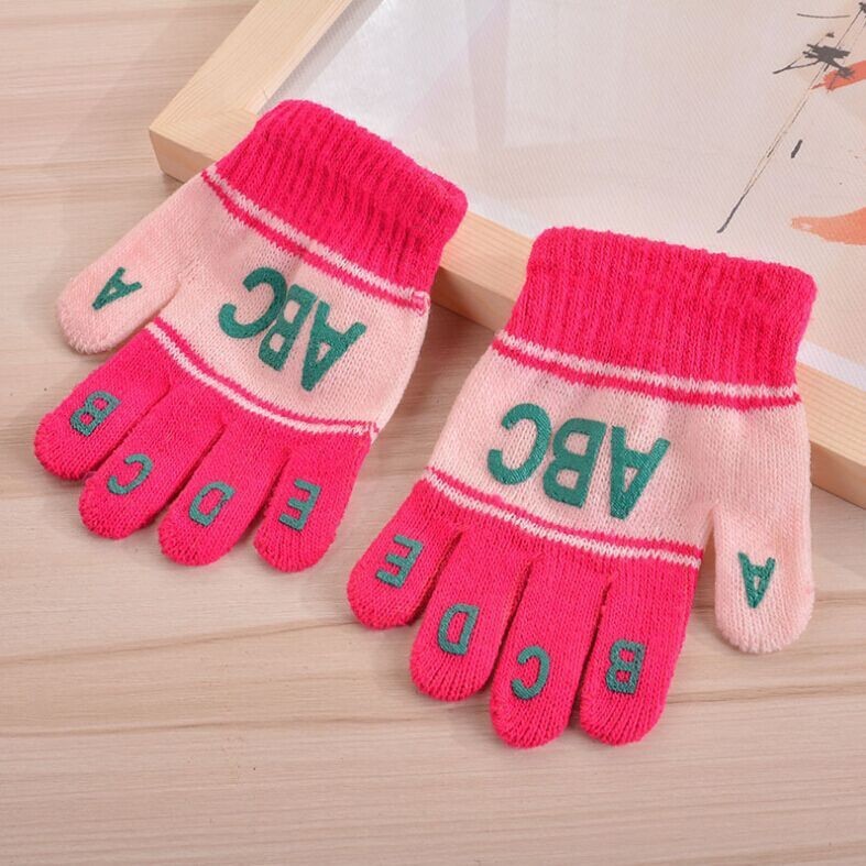 冬季保暖儿童全指针织卡通小学生写作业魔术印胶印花ABC小孩手套