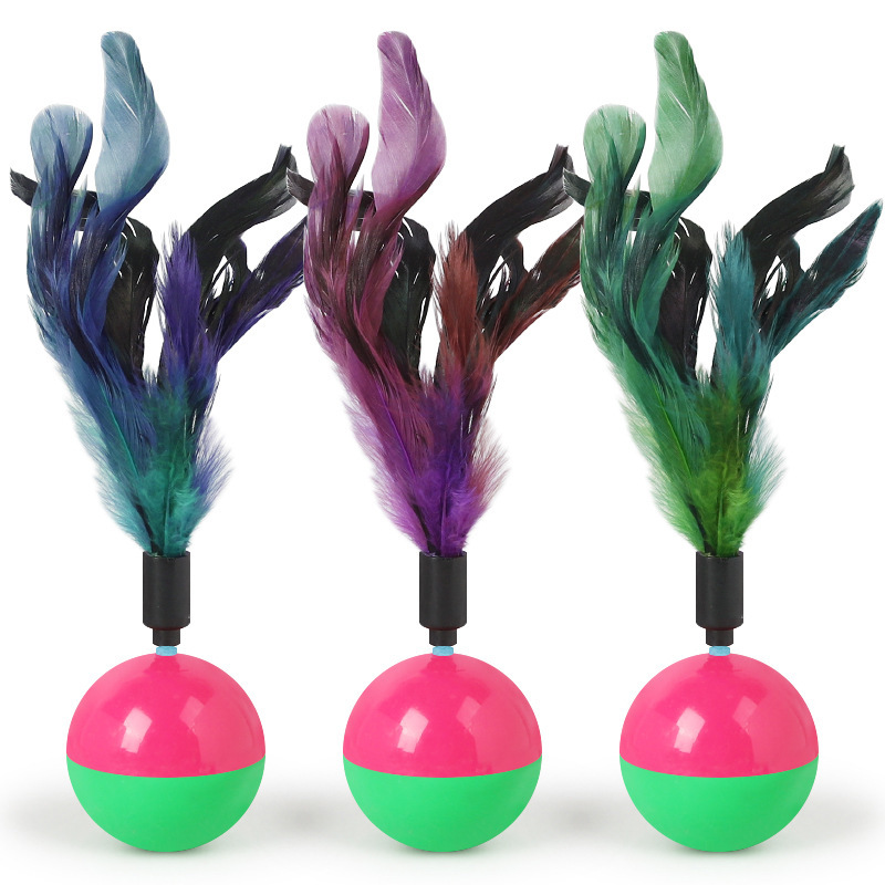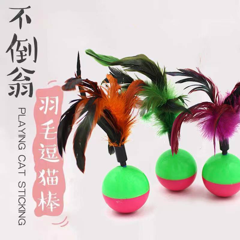 厂家批发宠物玩具不倒翁耐咬球塑料羽毛款猫咪玩具互动神器