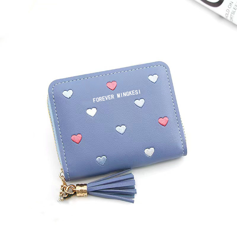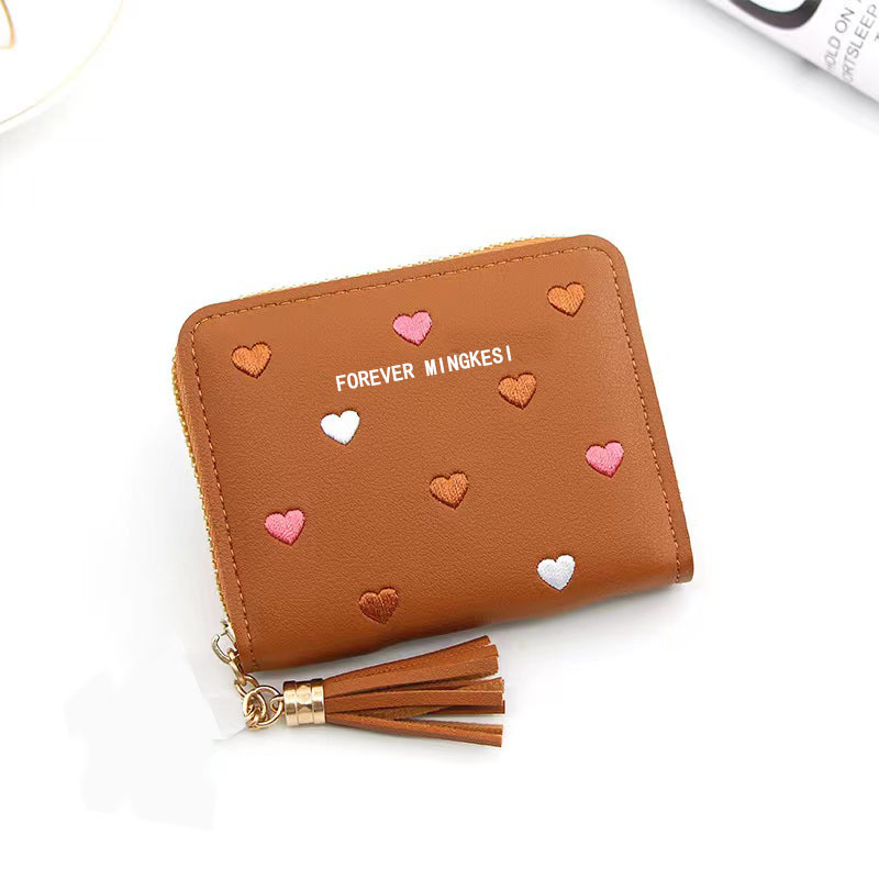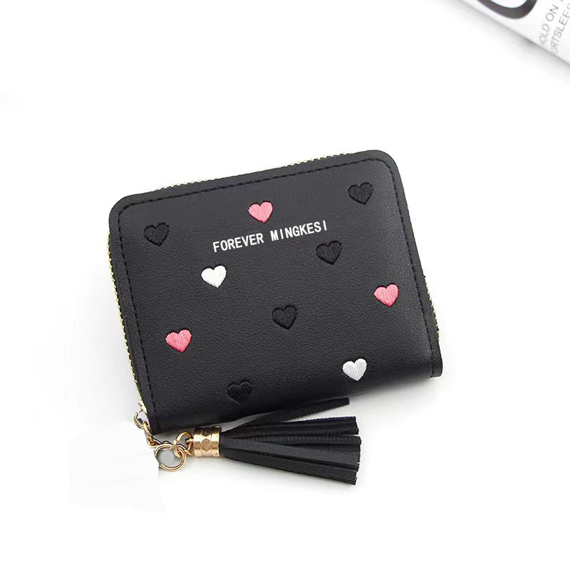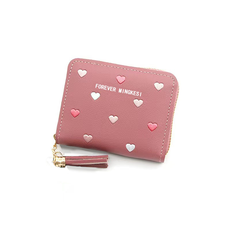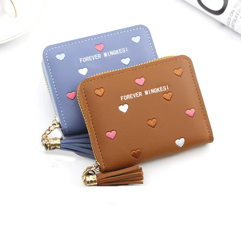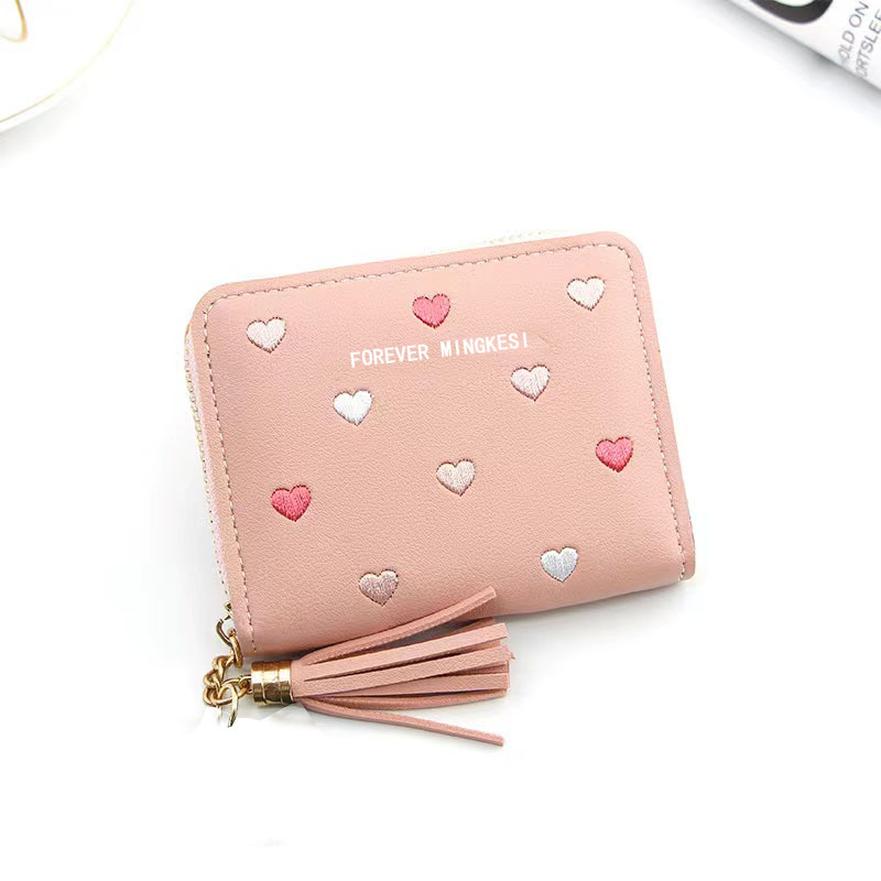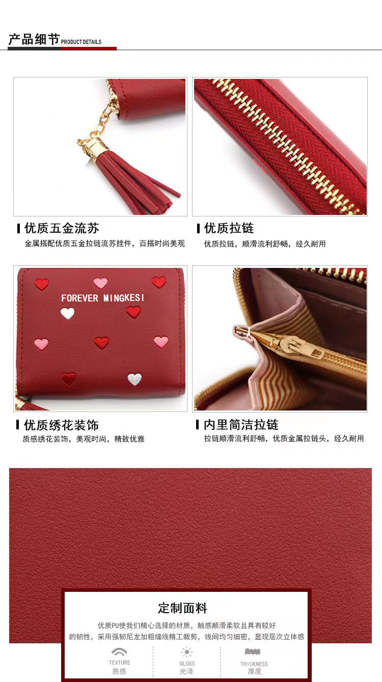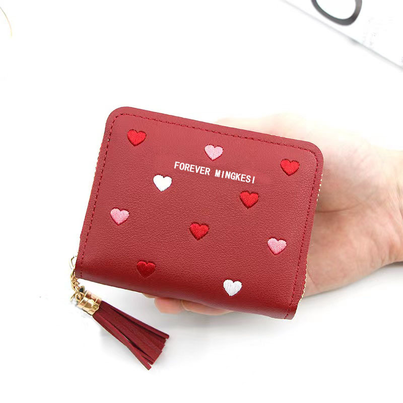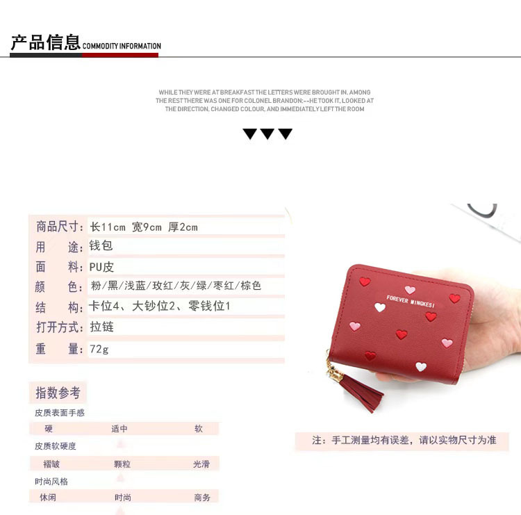 新款韩版钱包女士短款拉链大容量百搭爱心彩色手拿包钱夹