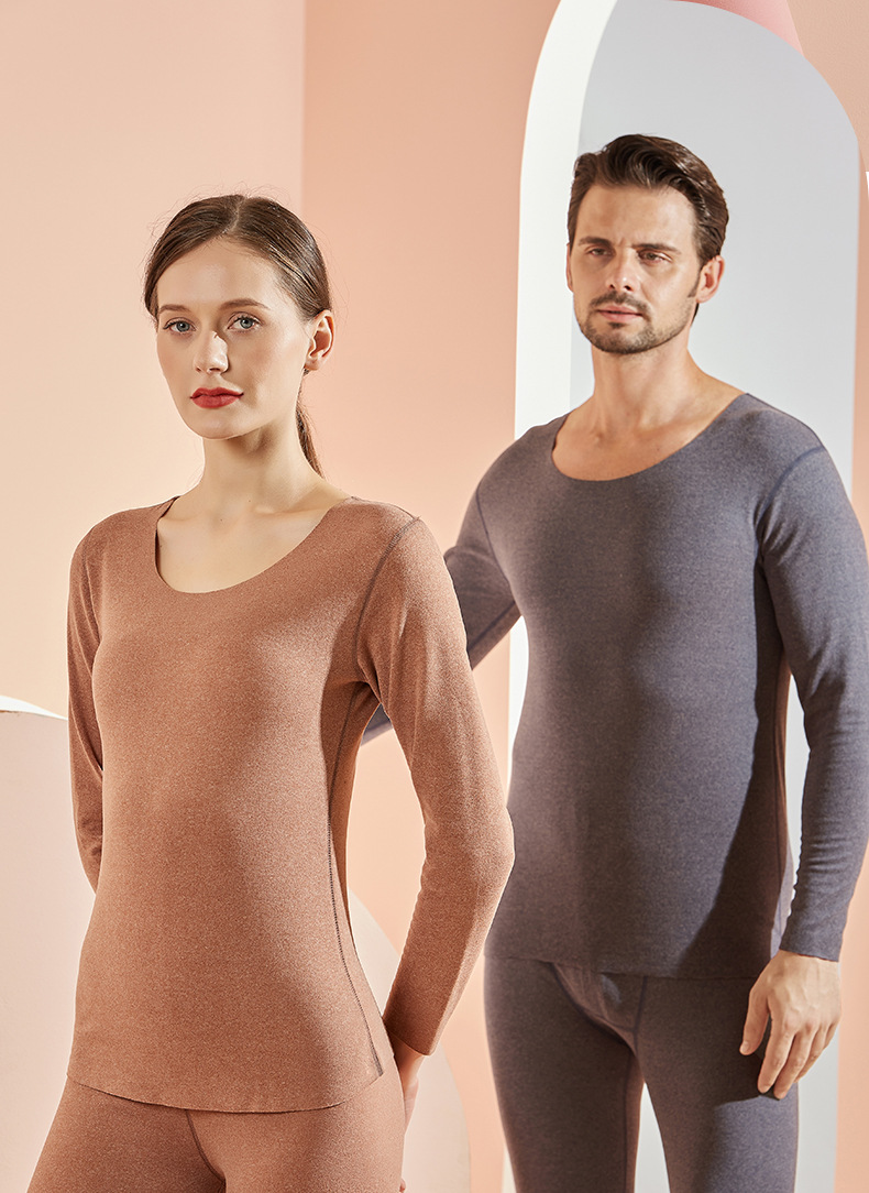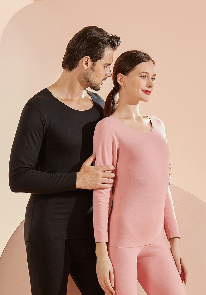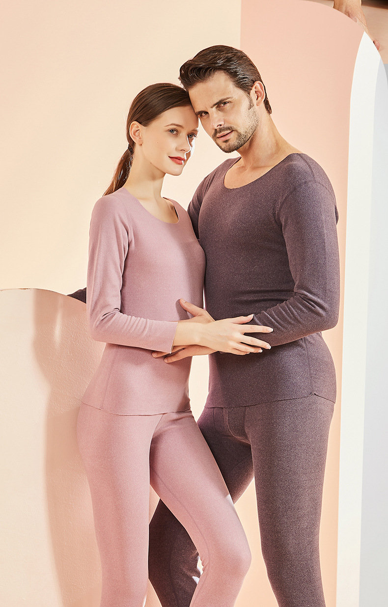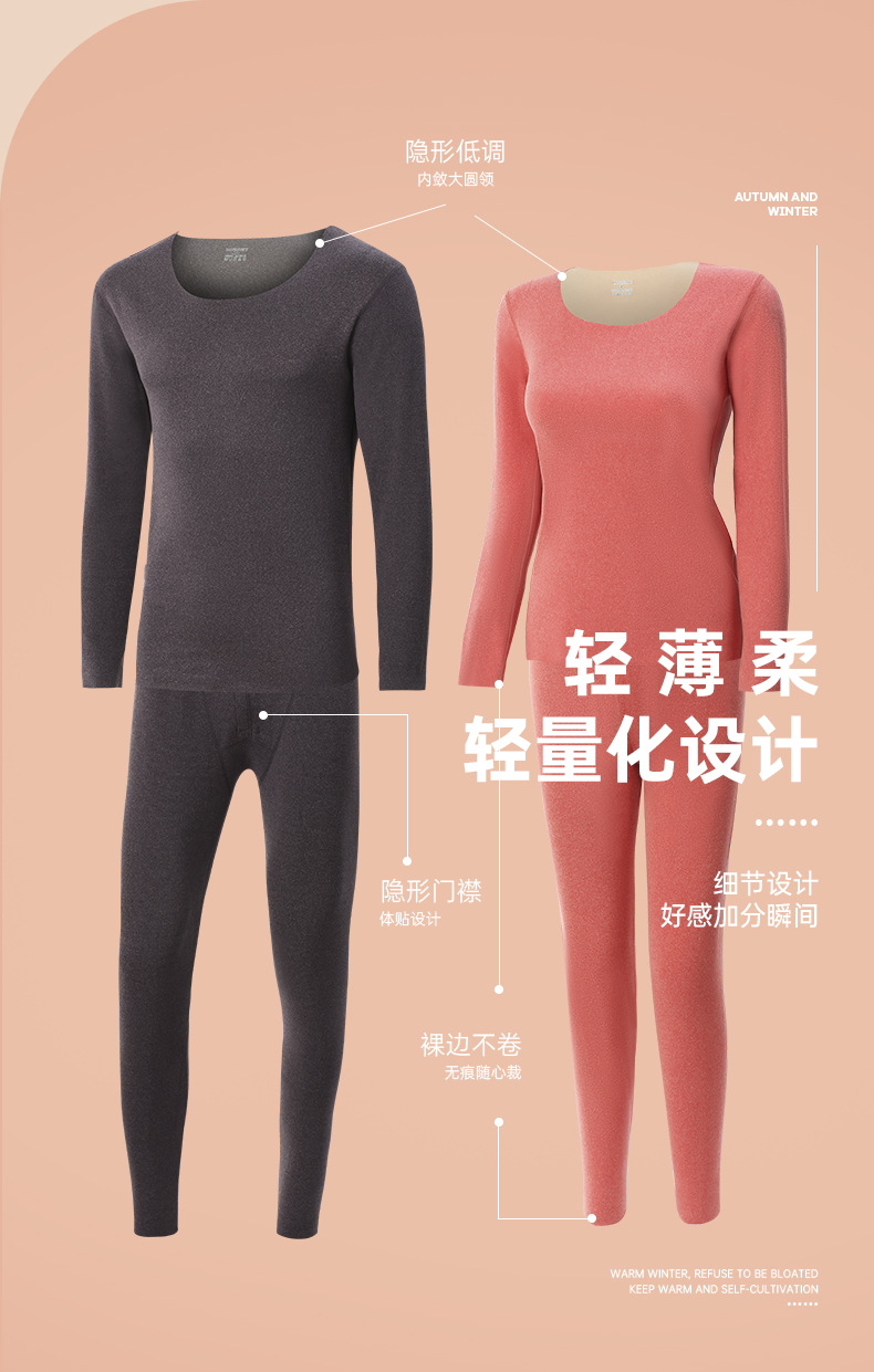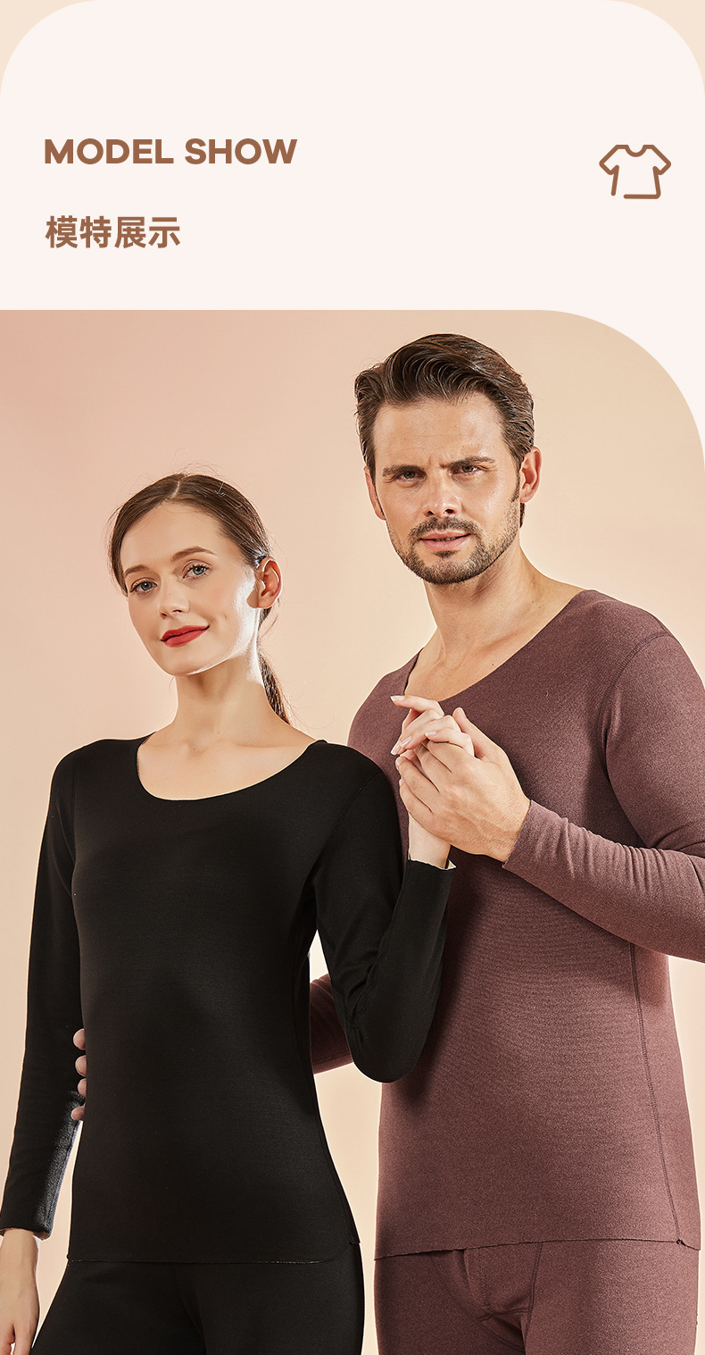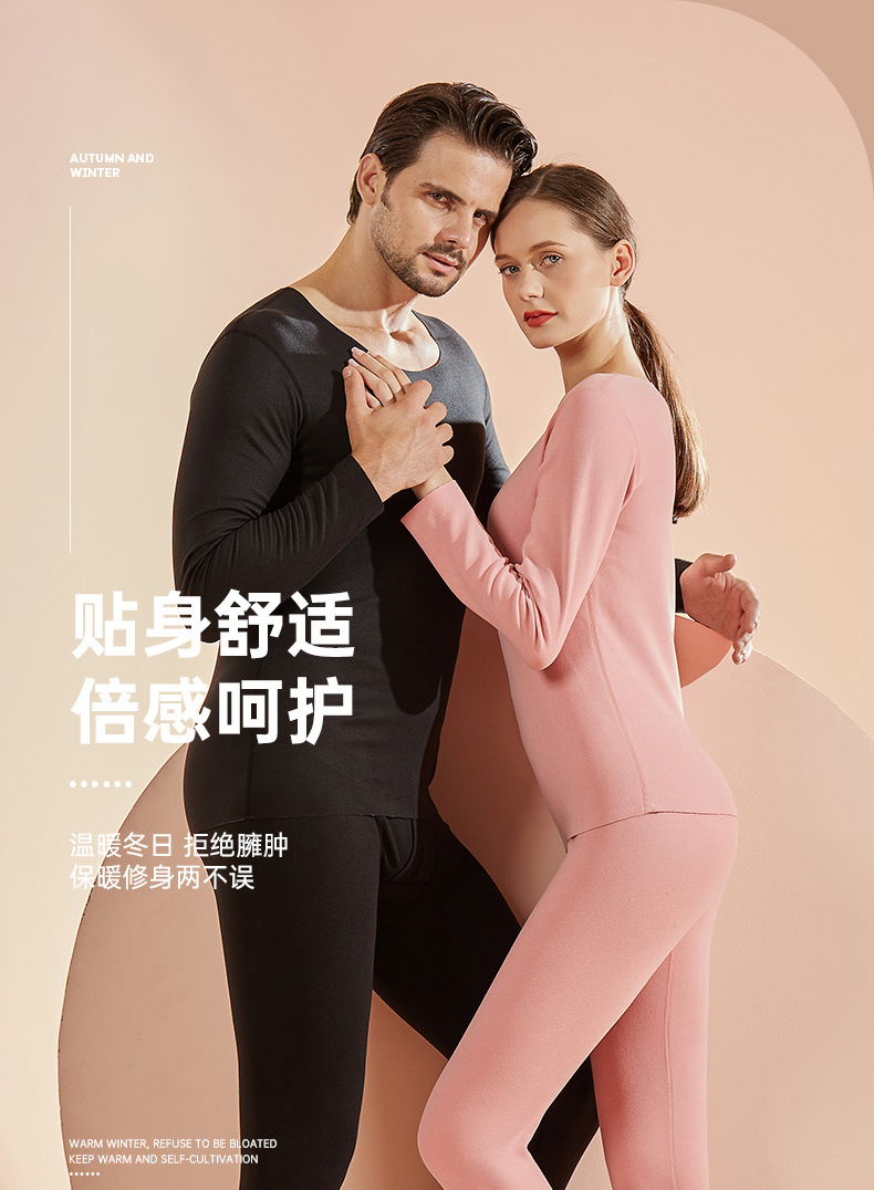 ab面德绒情侣保暖内衣套装恒温发热加绒加厚男女无痕秋衣秋裤
