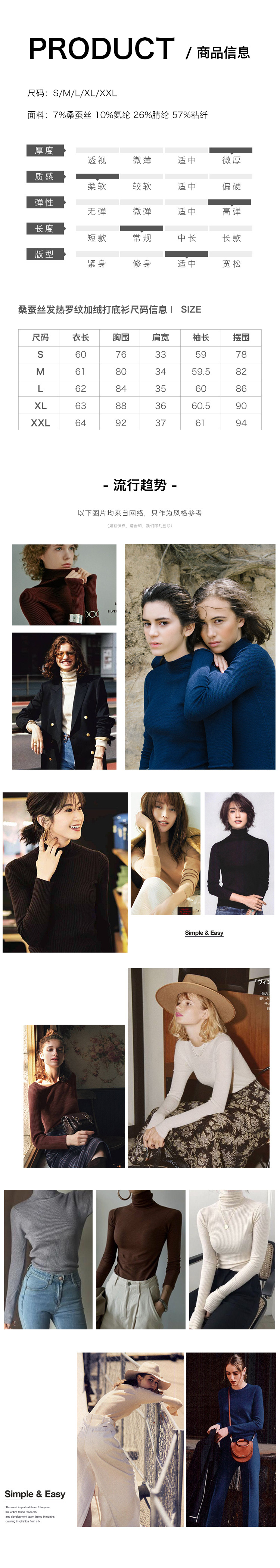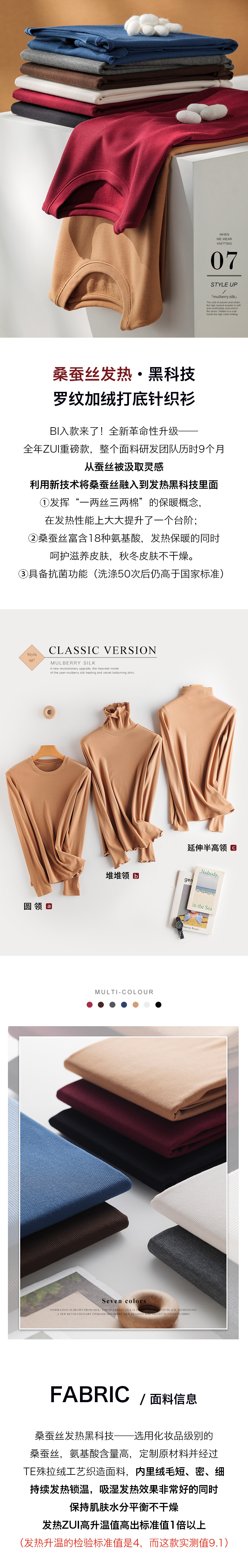 新桑蚕丝发热罗纹加绒滋养皮肤多色保暖内衣女 女式打底衫保暖衣