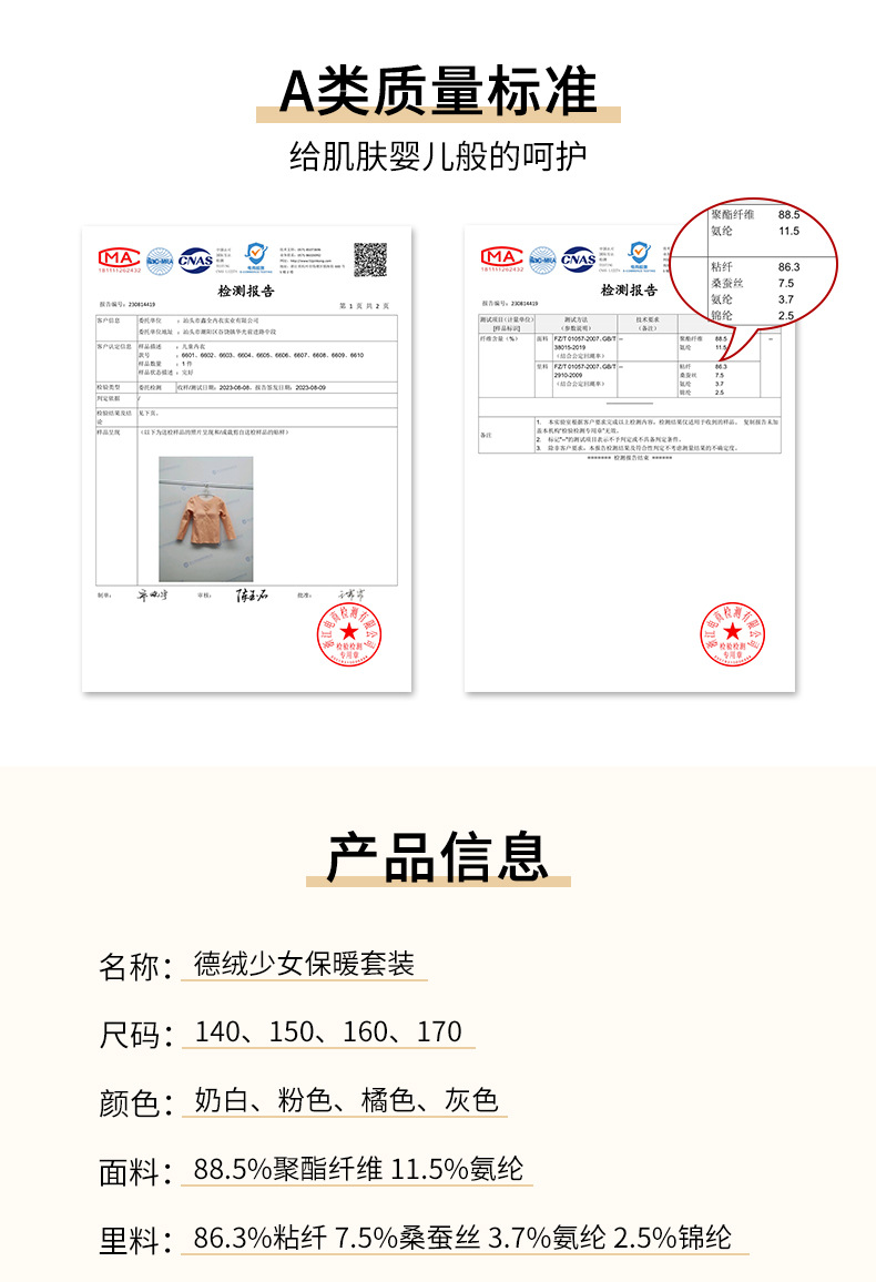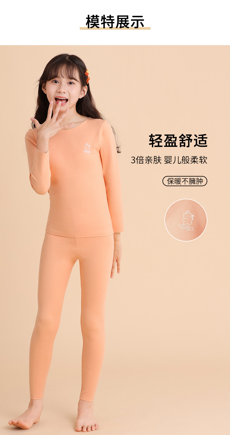 德绒少女保暖套装轻盈舒适无痕亲肤高弹不变形女大童秋衣秋裤套装