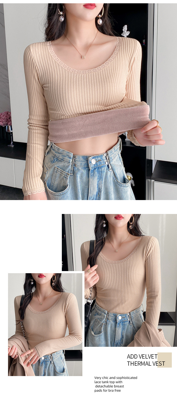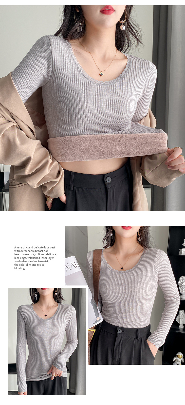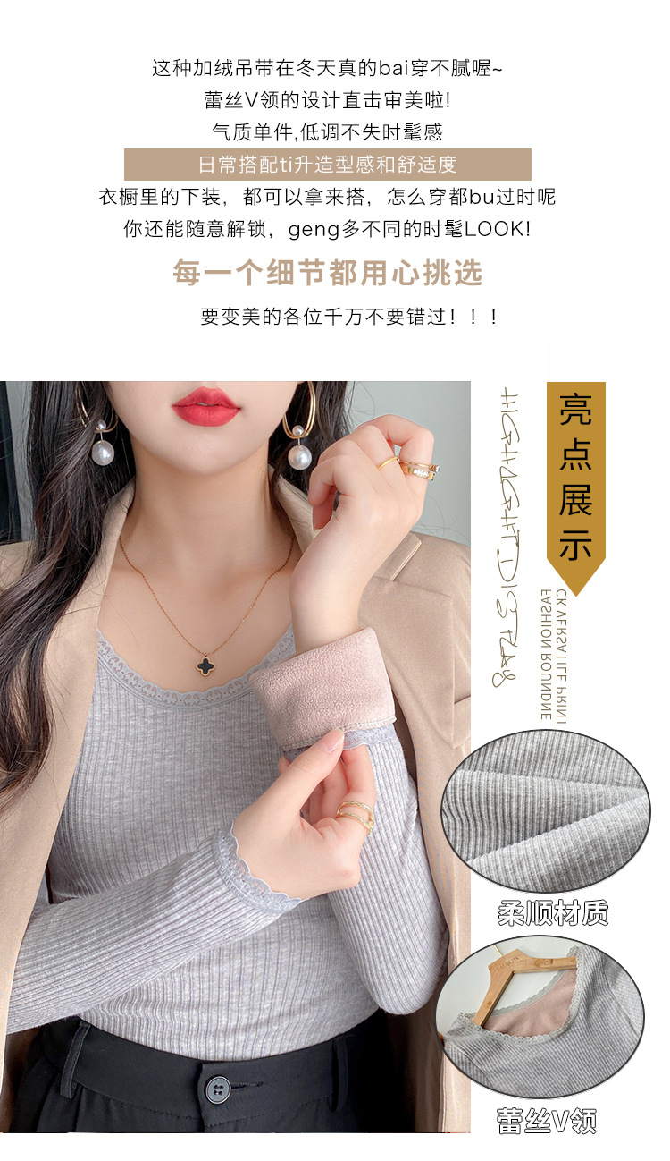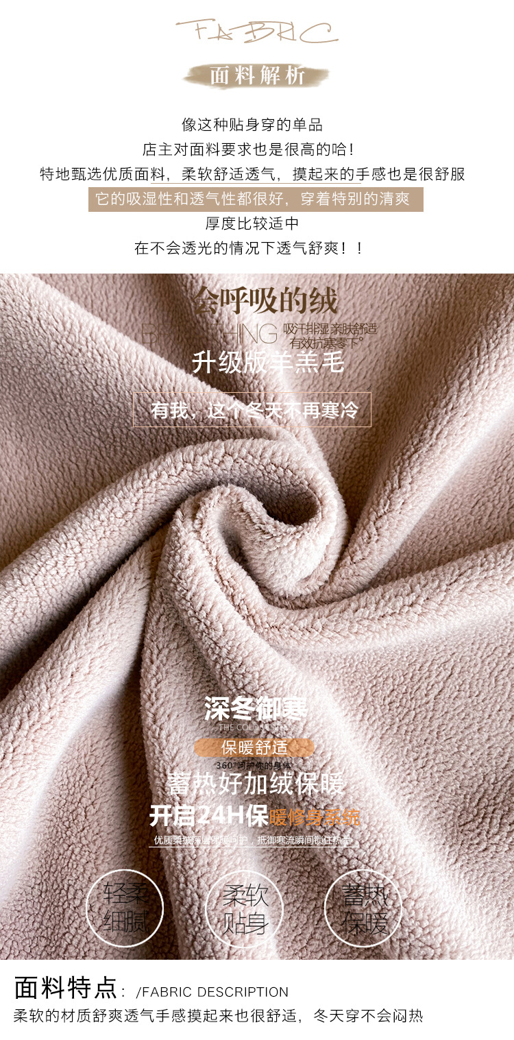 羊羔毛保暖上衣女冬季新款加绒加厚内搭秋衣弹力修身打底衫上衣潮