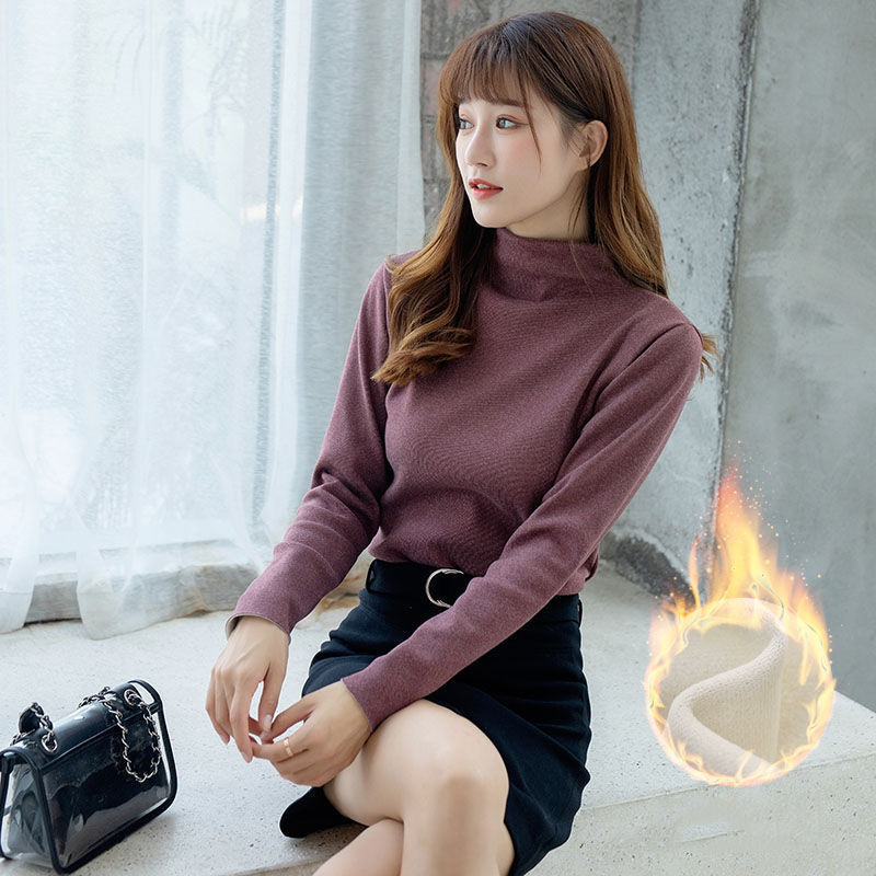 阳离子打底衫2.0加绒加厚保暖内衣秋冬韩版百搭半高领德绒上衣女