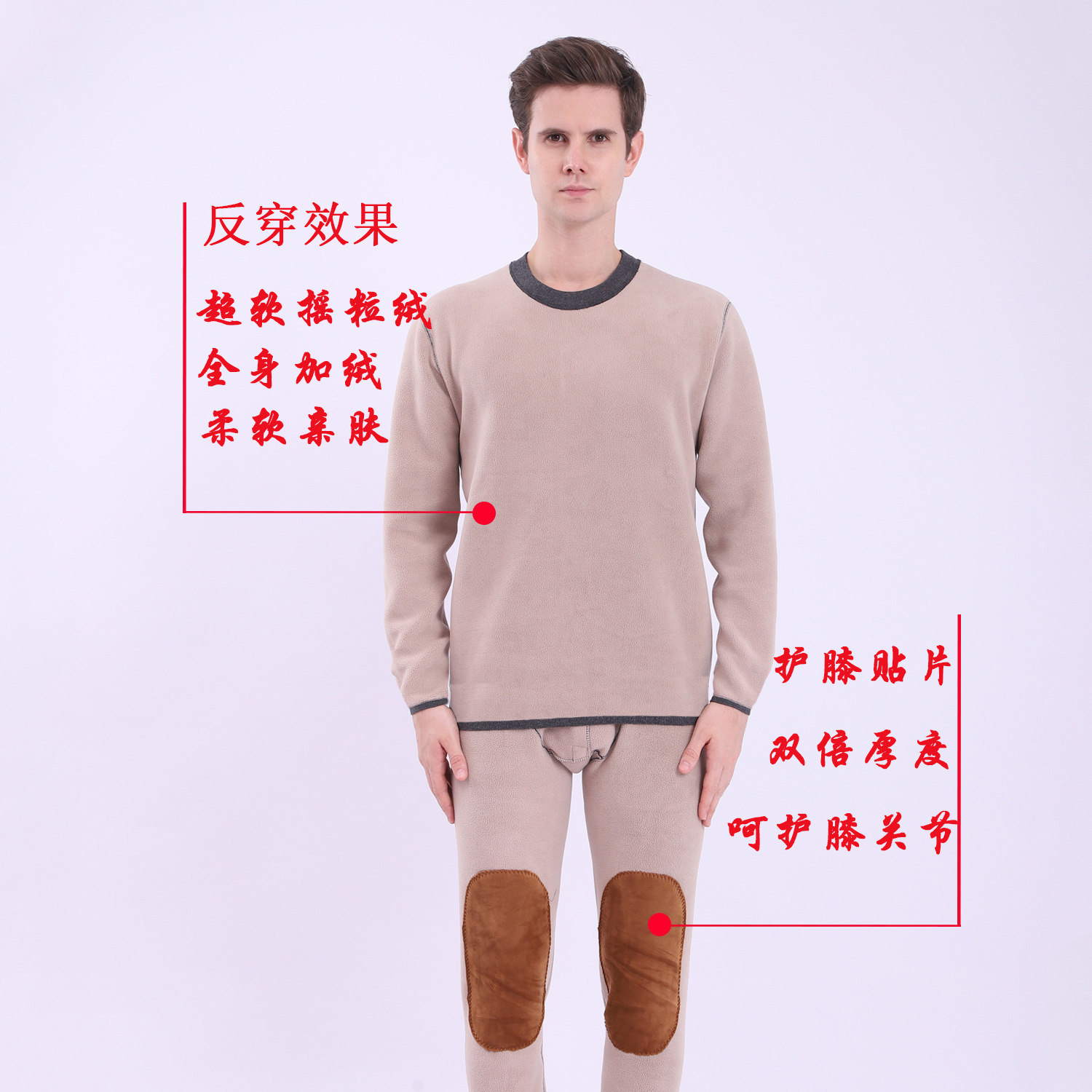 男士女士保暖内衣套装摇粒绒加绒加厚中老年磨毛保暖秋衣秋裤