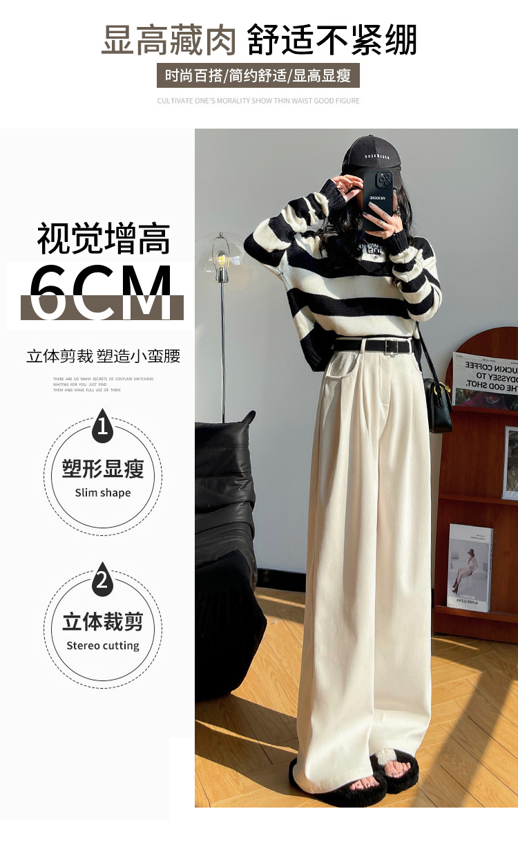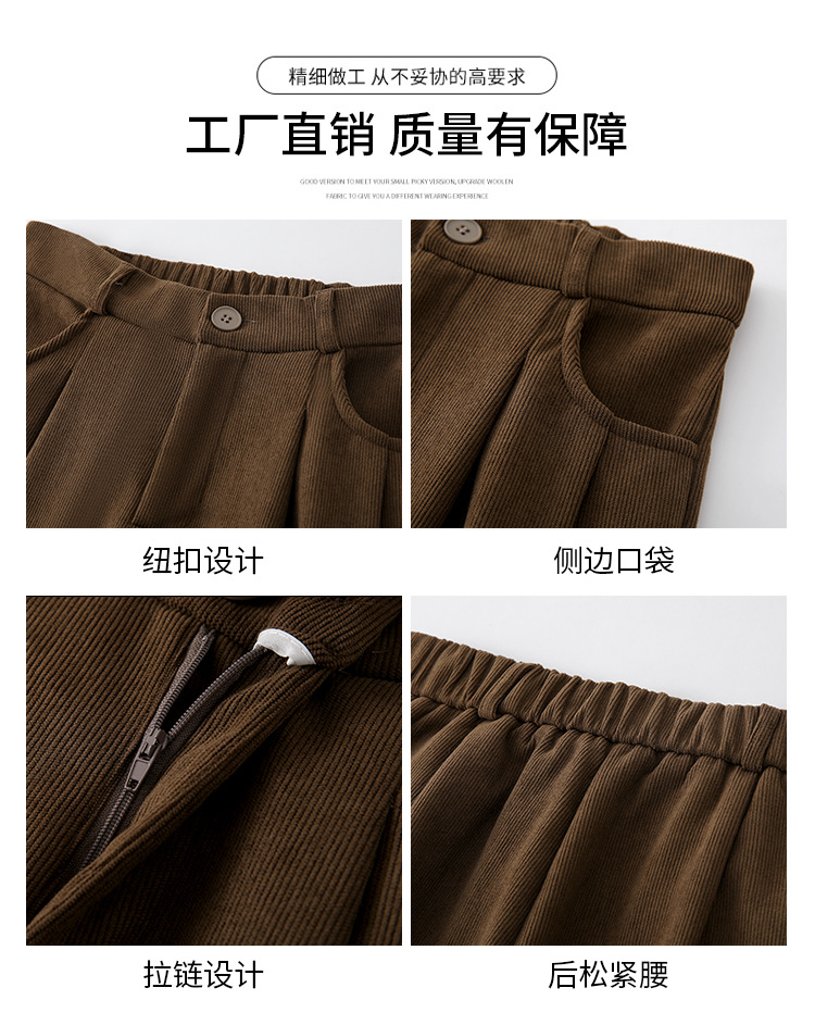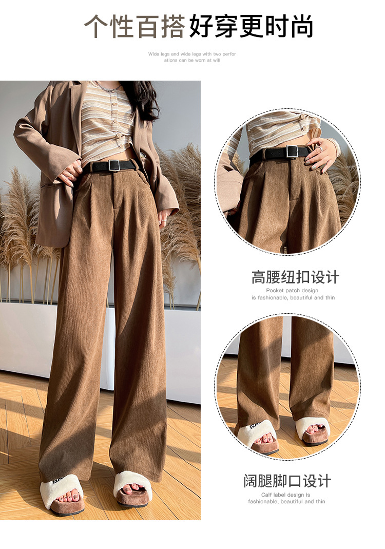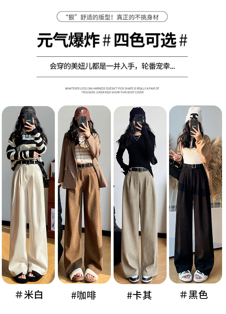 美拉德灯芯绒裤女秋冬加绒裤子显瘦宽松西装裤休闲直筒高腰阔腿裤