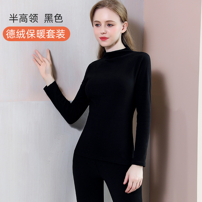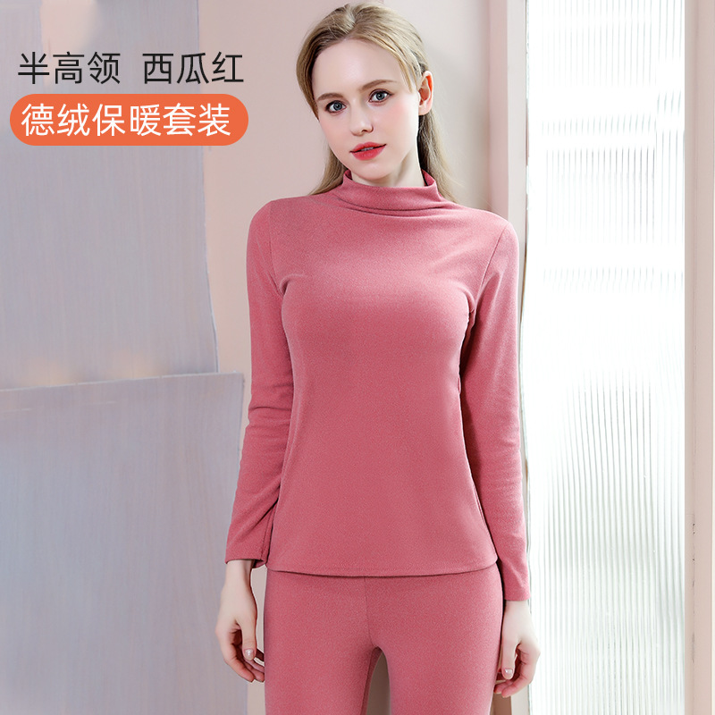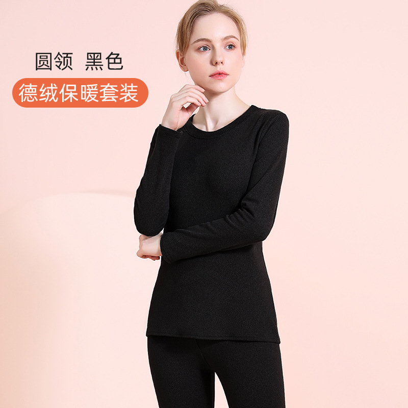 无痕/卷边 现货批发德绒保暖内衣套装女双面磨毛修身打底秋衣秋裤