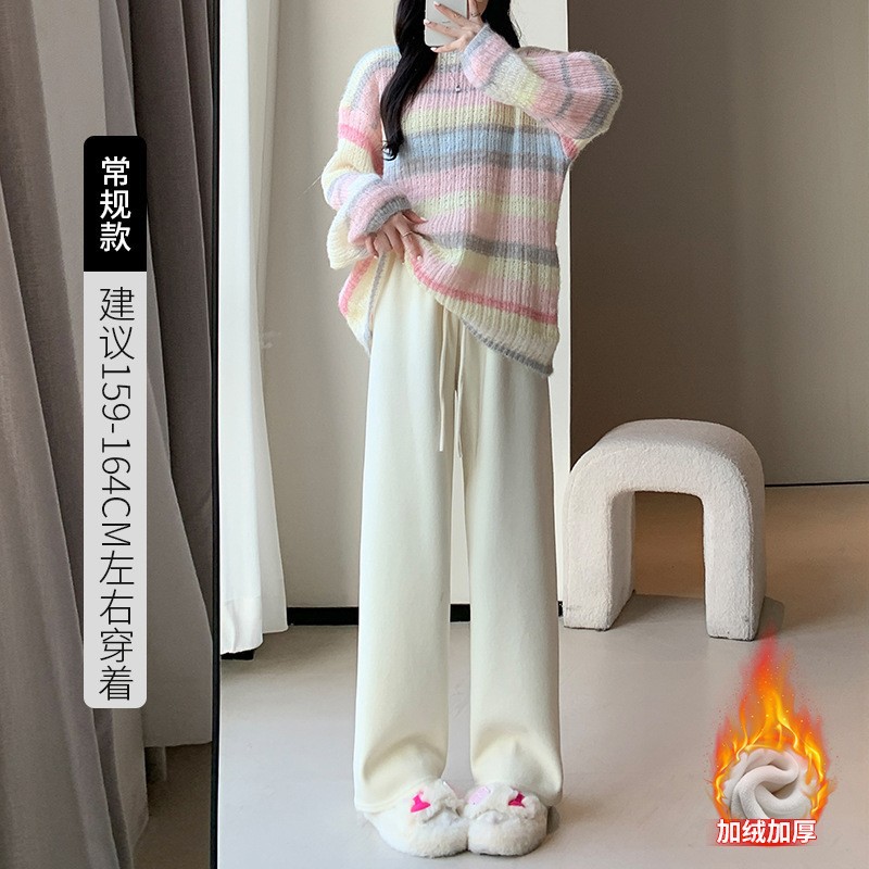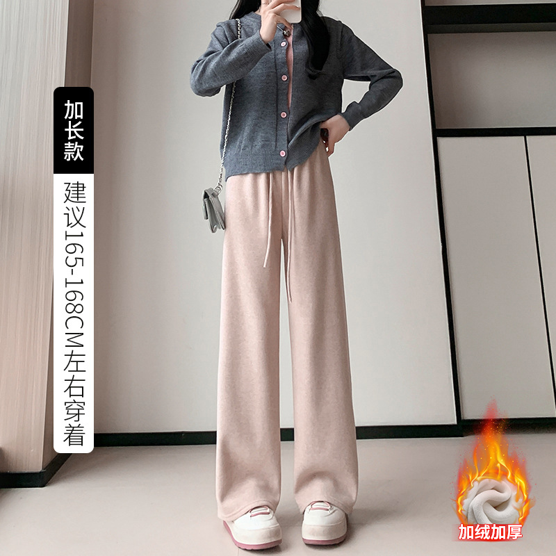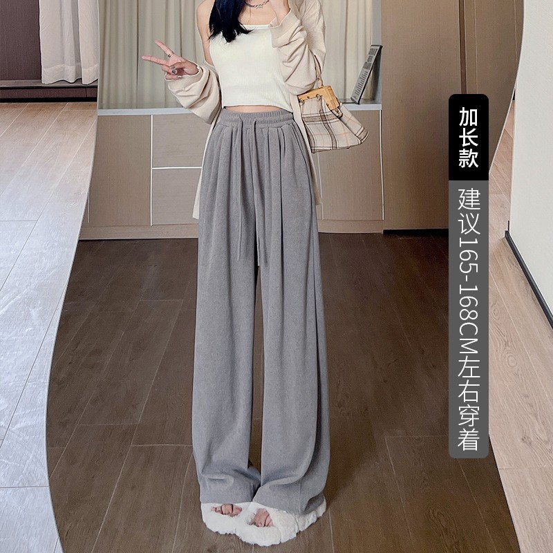 毛巾加绒阔腿裤2023裤子女秋冬宽松高腰慵懒休闲裤垂感直筒拖地裤
