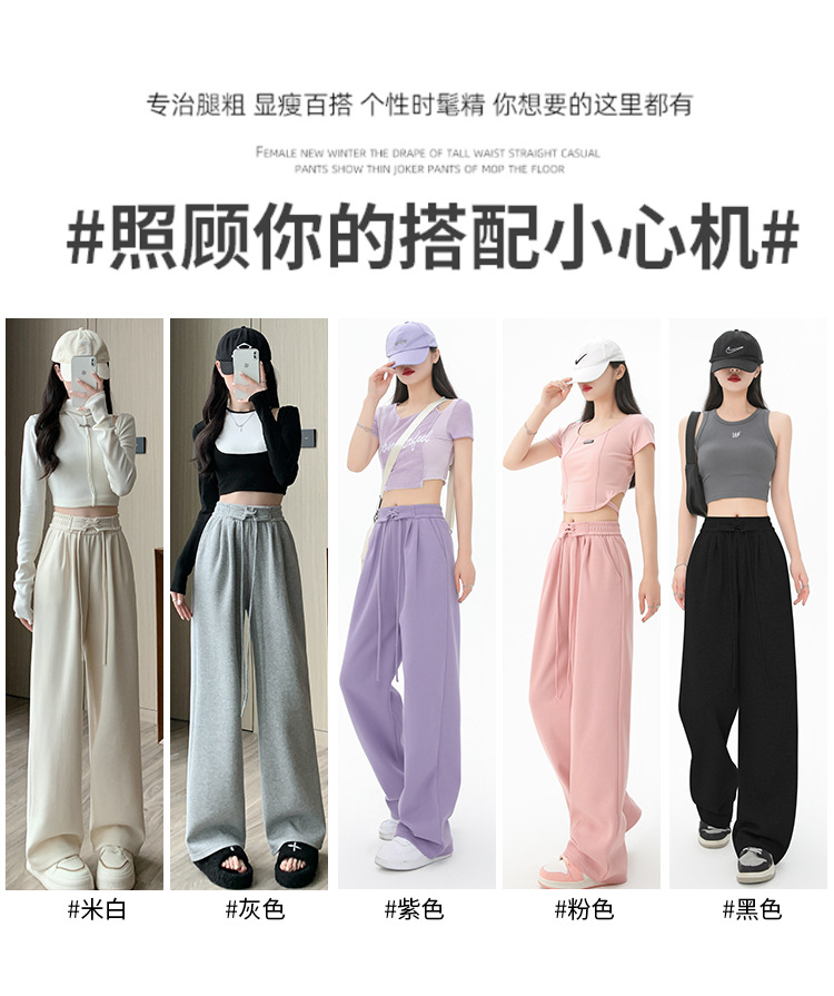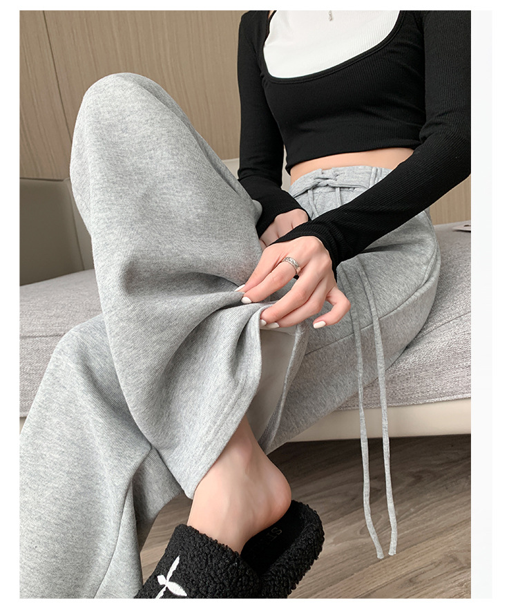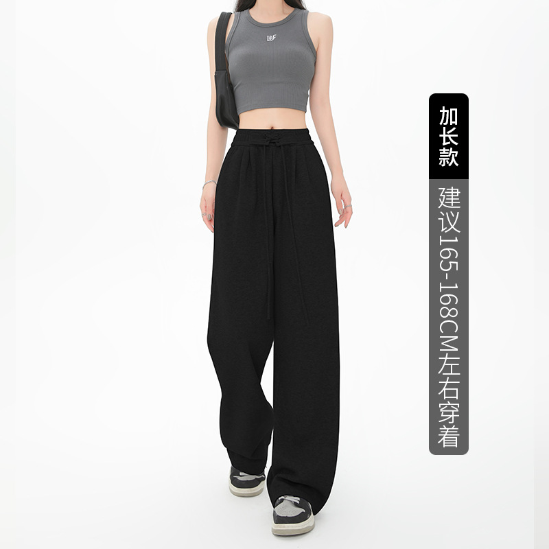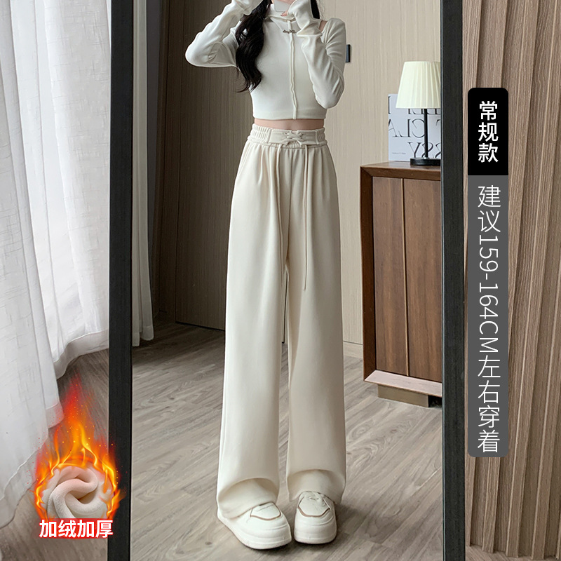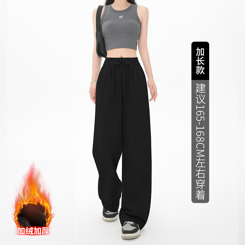 运动裤女裤子女款加绒裤外穿垂感拖地休闲直筒裤显瘦宽松阔腿长裤