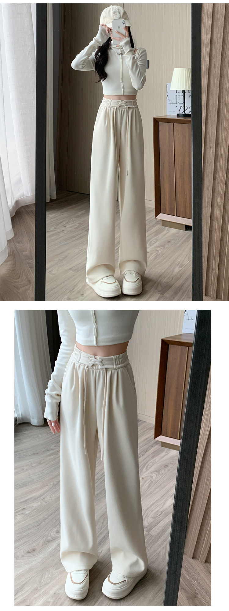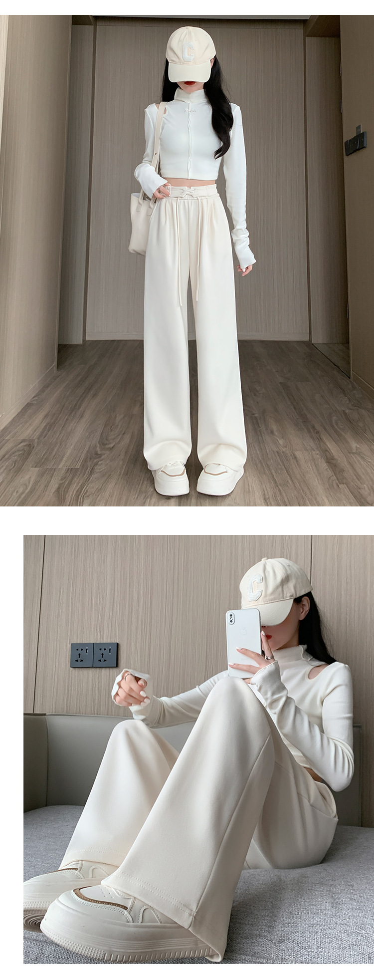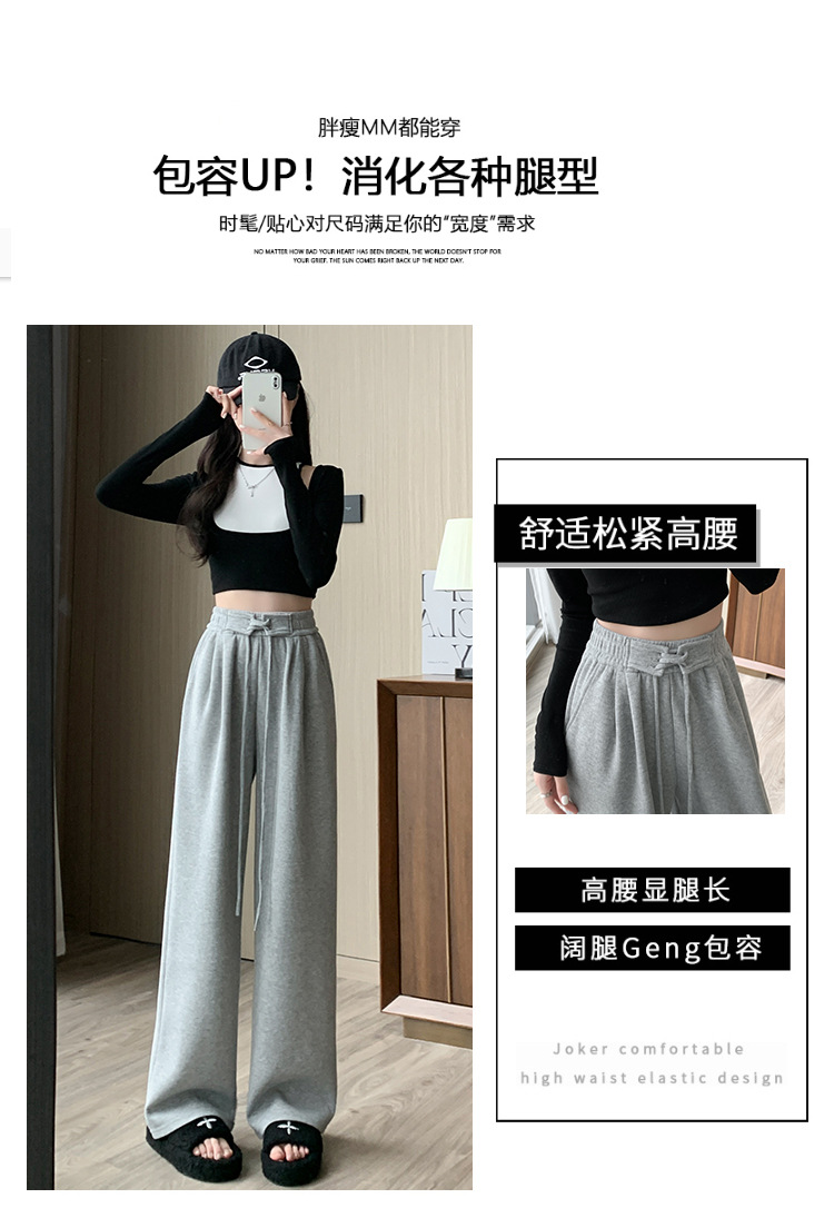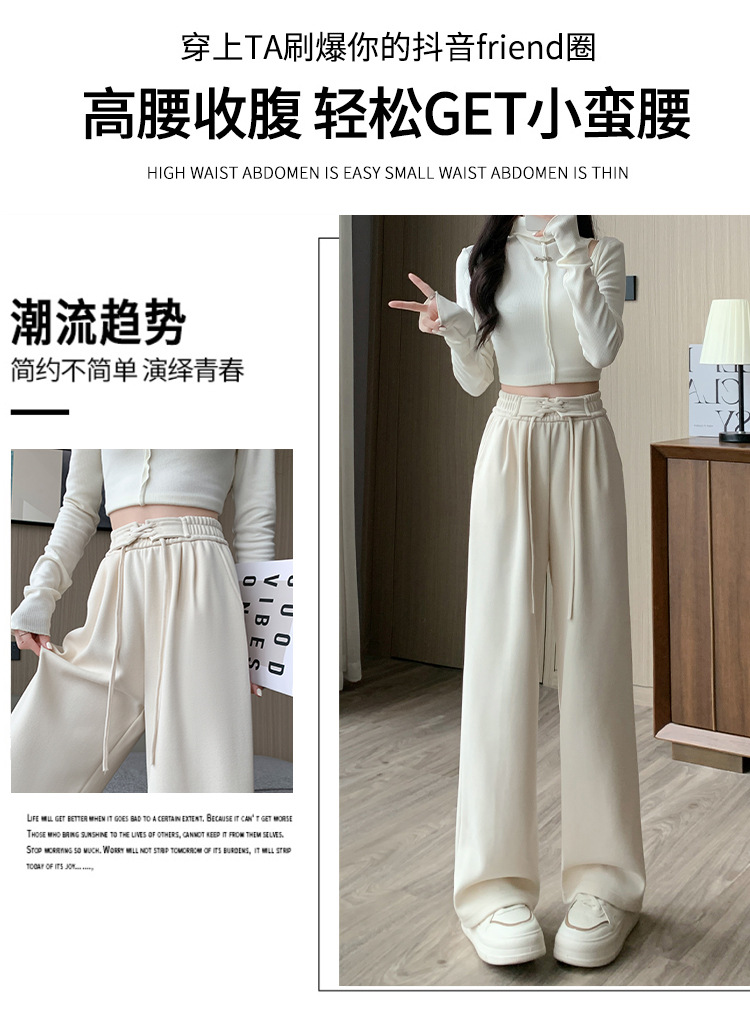 运动裤女裤子女款加绒裤外穿垂感拖地休闲直筒裤显瘦宽松阔腿长裤