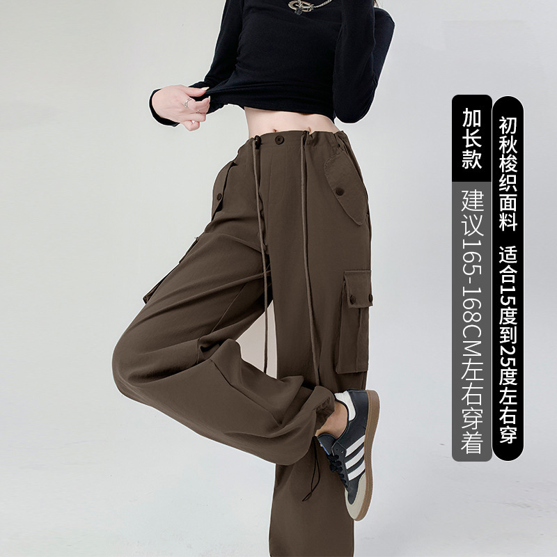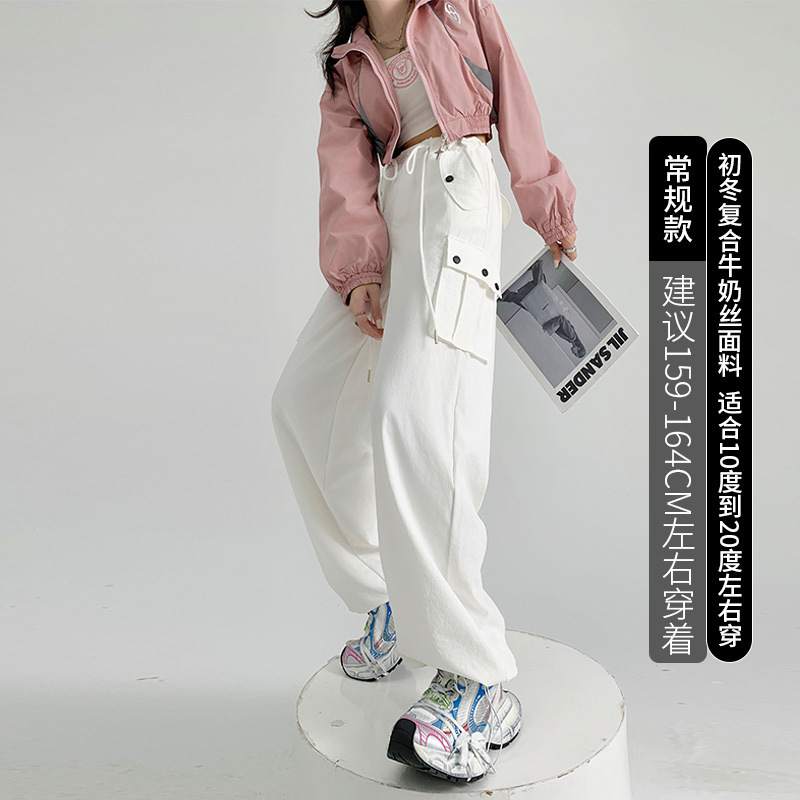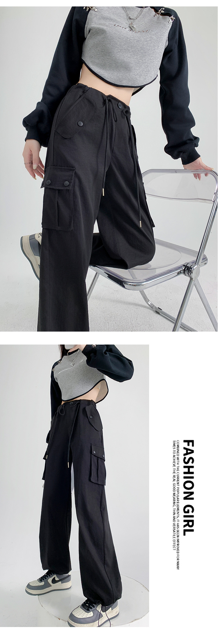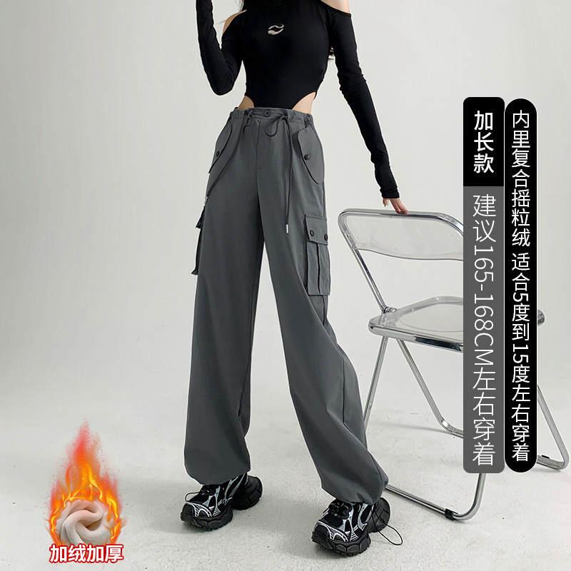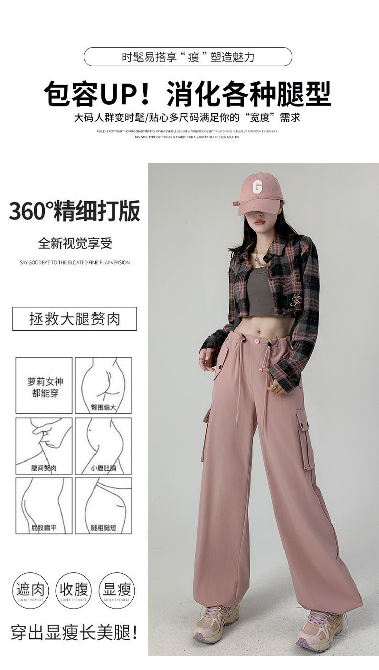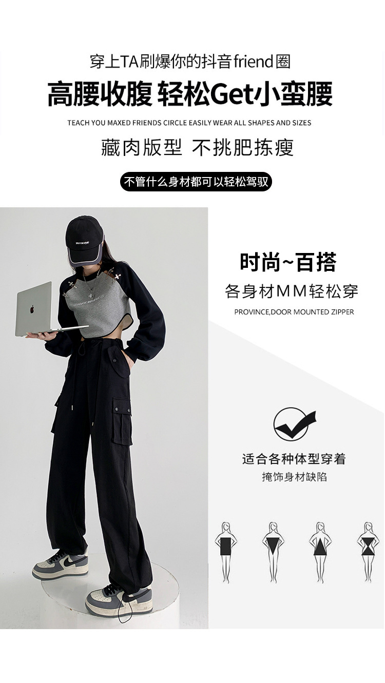 黑色工装裤女装裤子女秋新款高腰辣妹阔腿卫裤显瘦休闲直筒运动裤