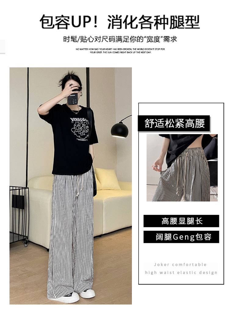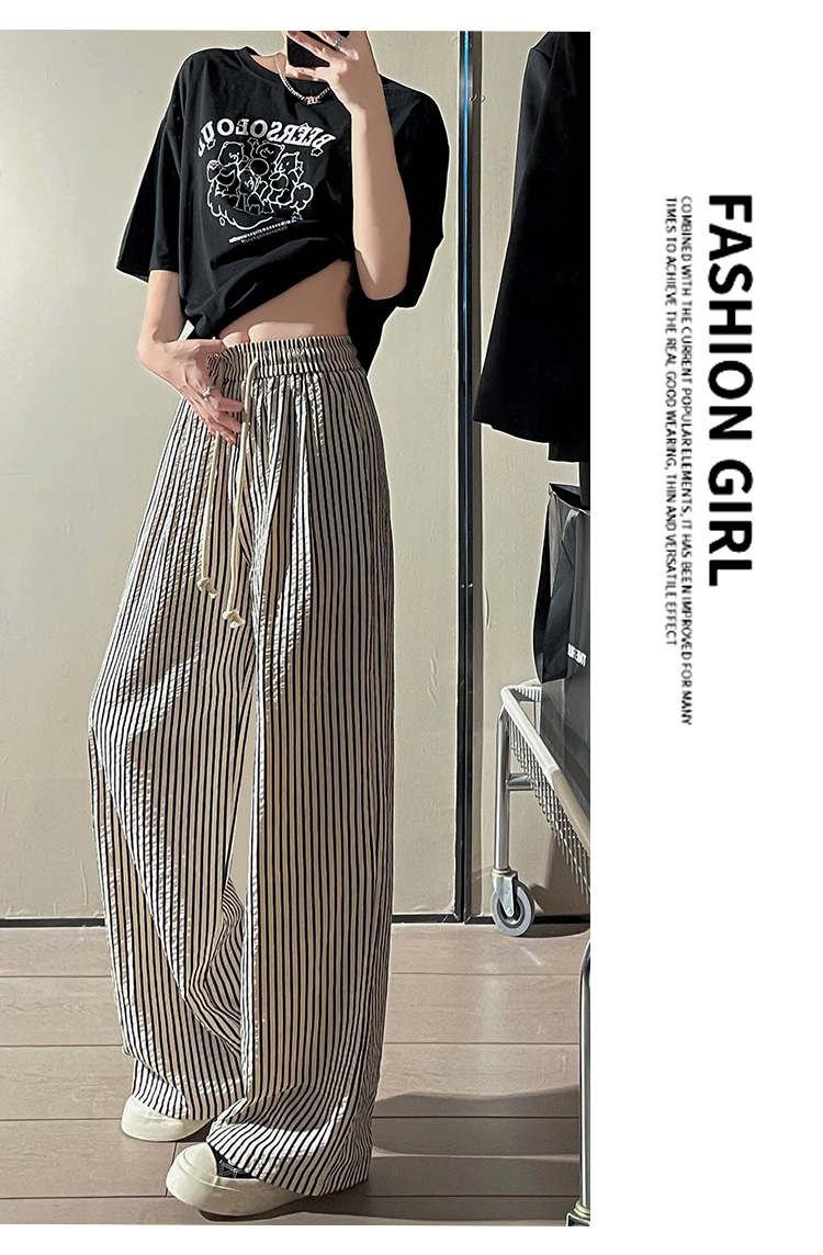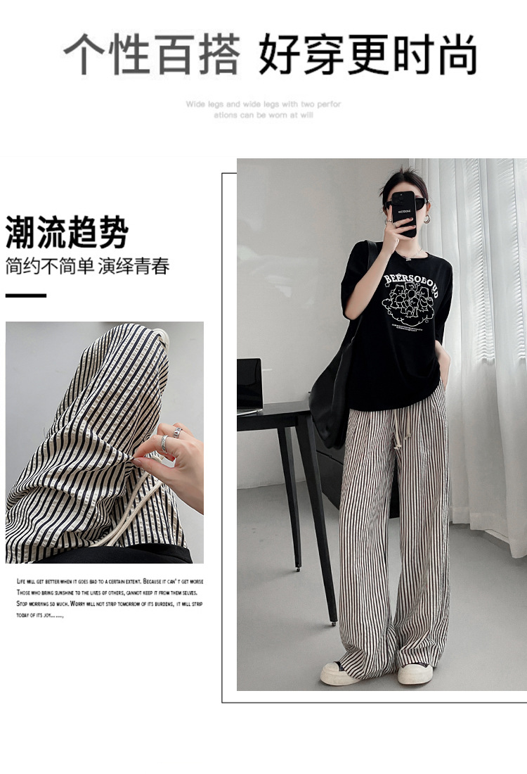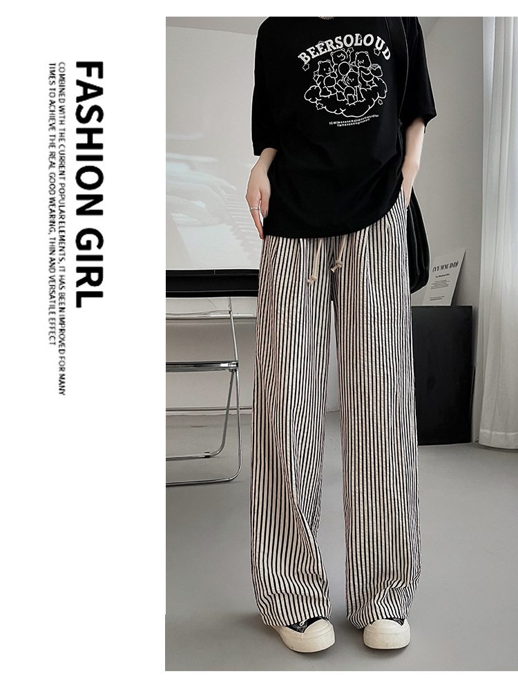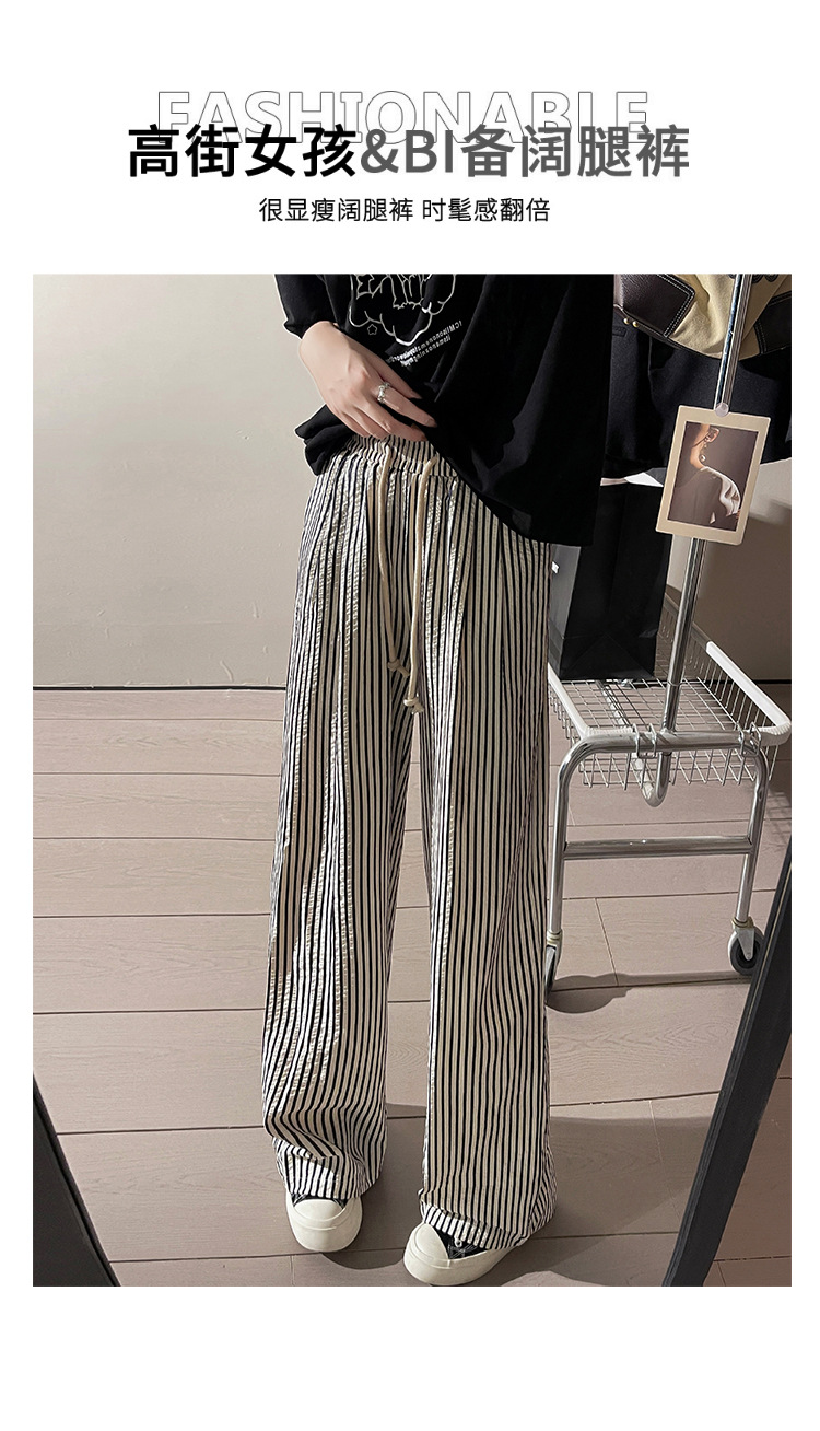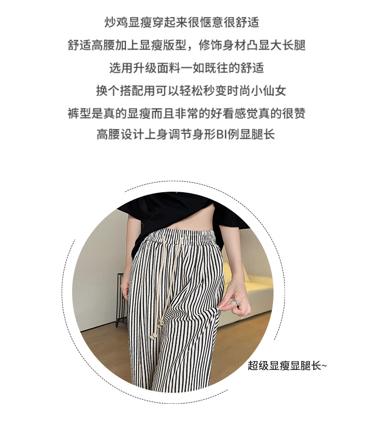 竖条纹加绒阔腿裤2023秋冬裤子女慵懒风高腰直筒裤显瘦遛弯休闲裤
