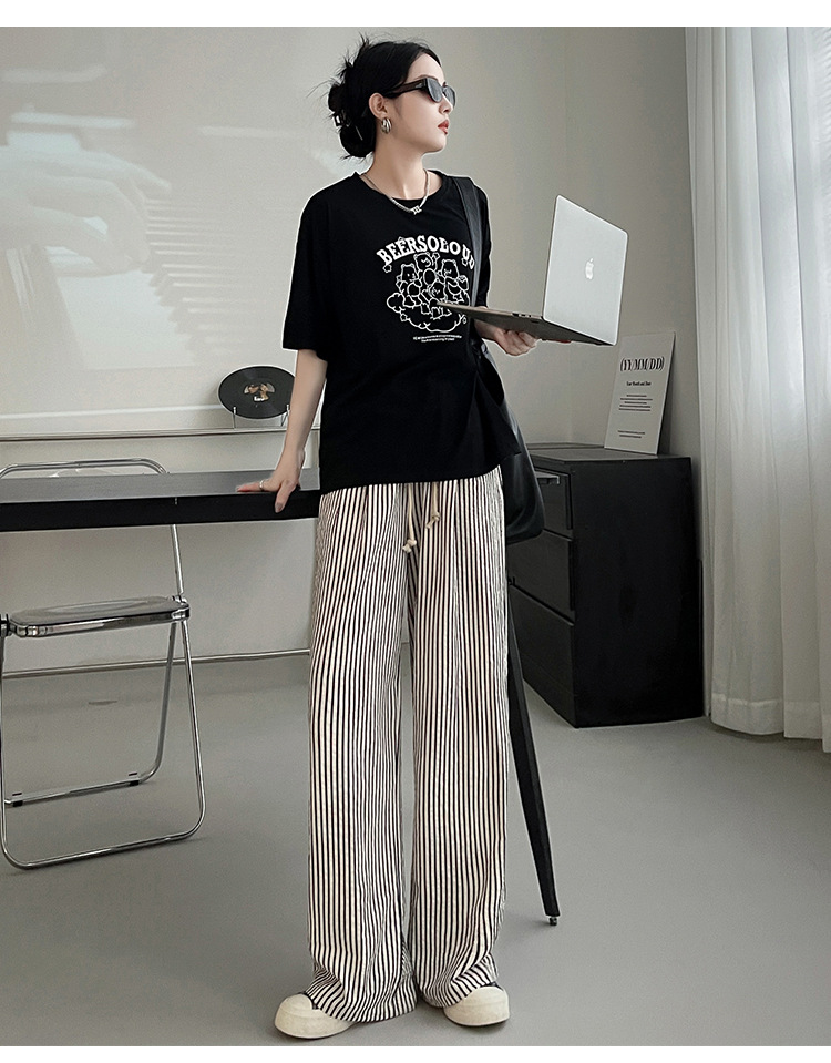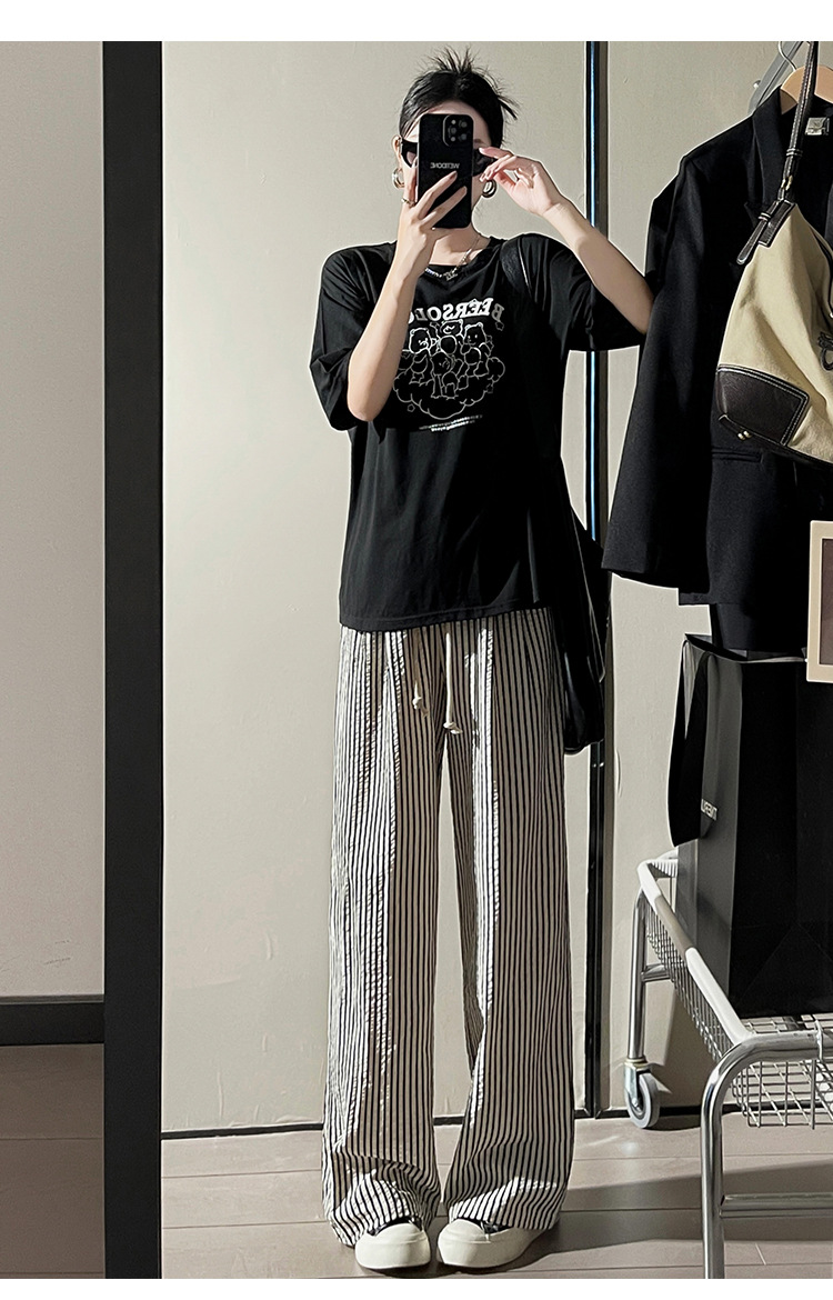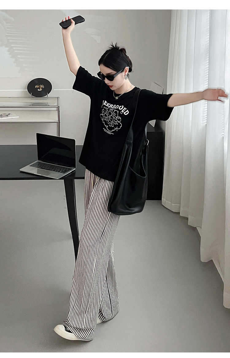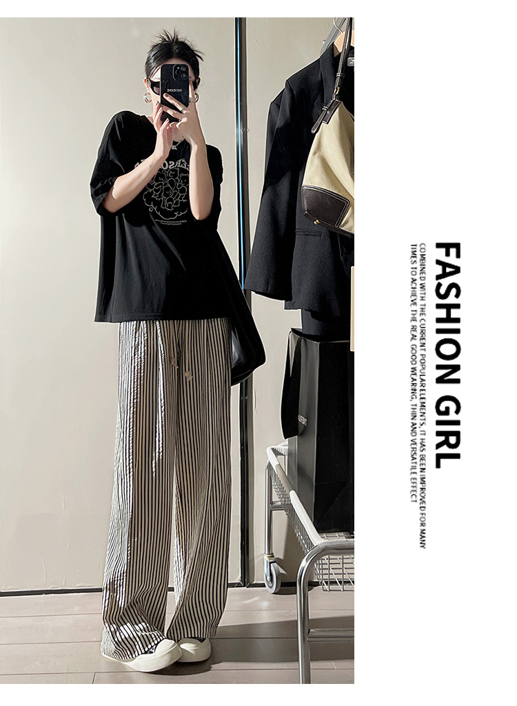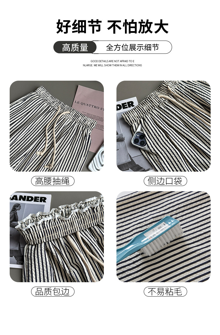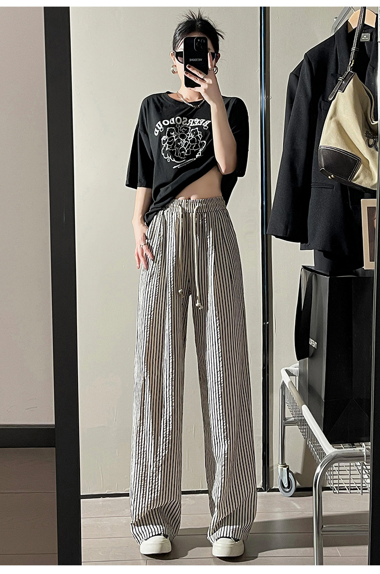 竖条纹加绒阔腿裤2023秋冬裤子女慵懒风高腰直筒裤显瘦遛弯休闲裤