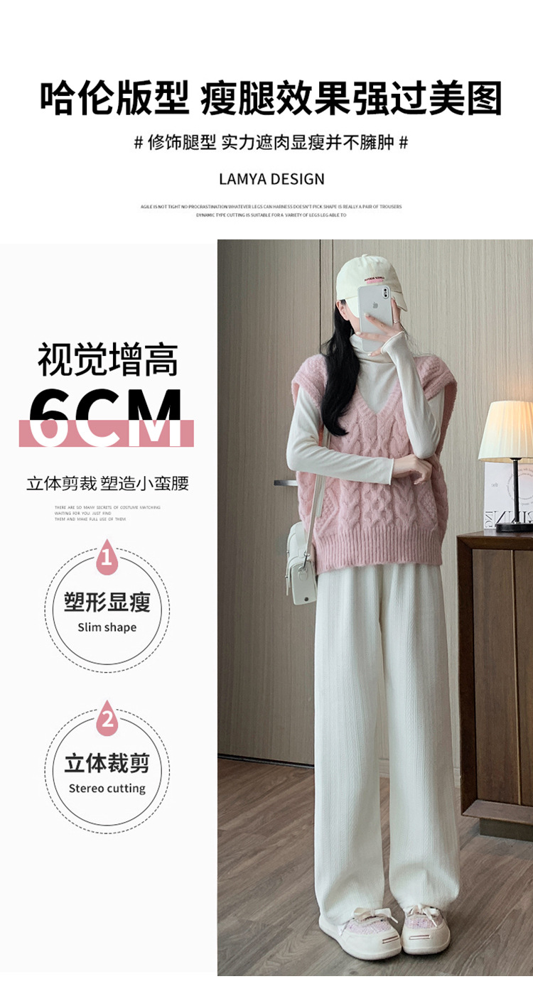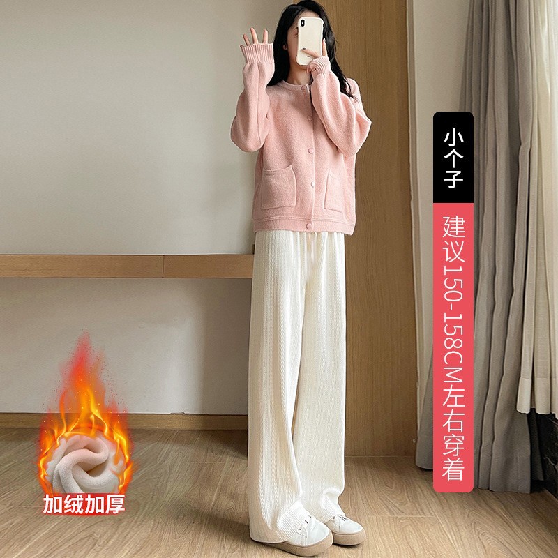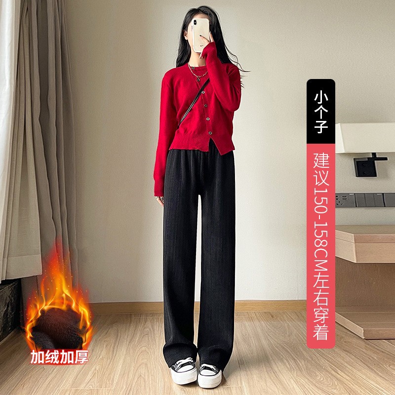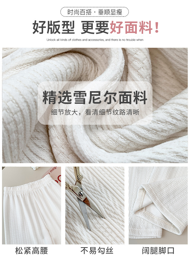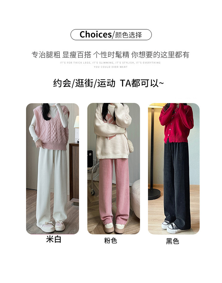 麦穗雪尼尔阔腿裤秋冬加绒裤子女装高腰拖地直筒裤显瘦垂感休闲裤