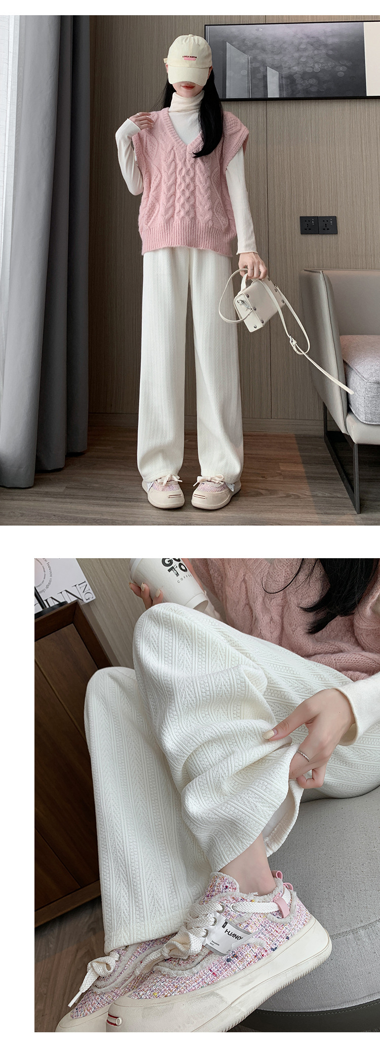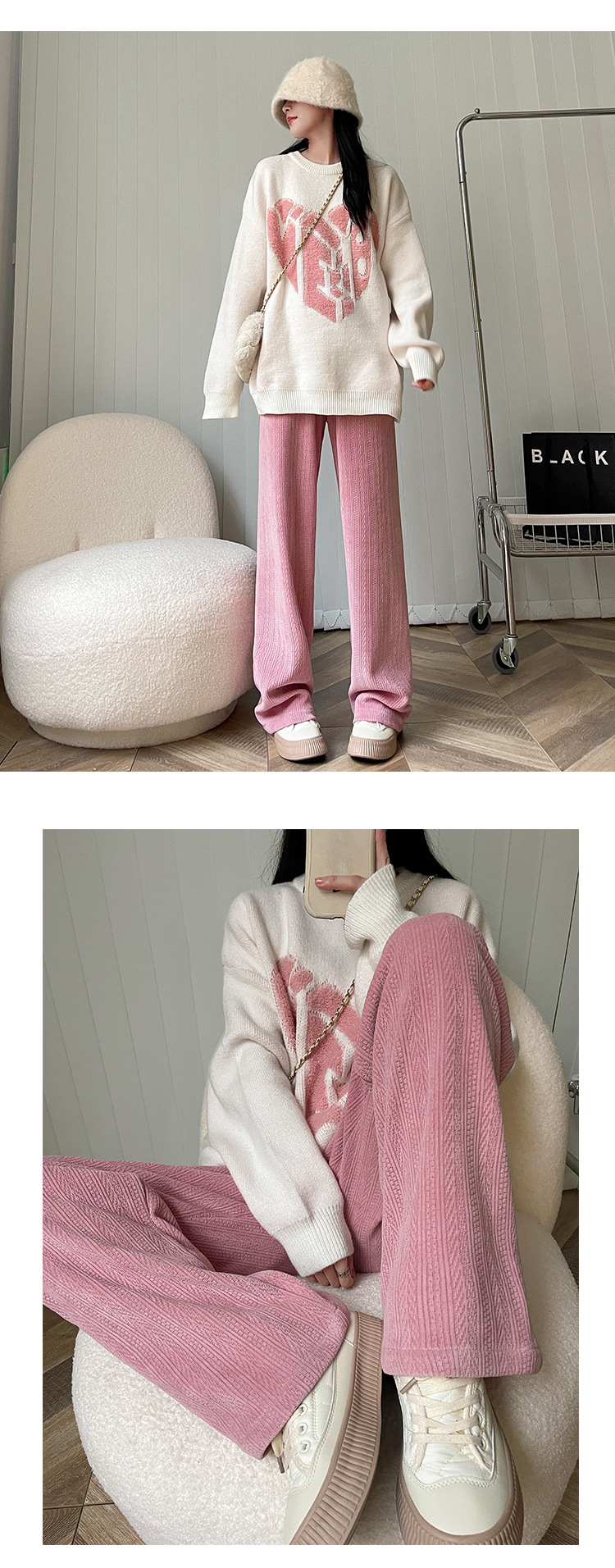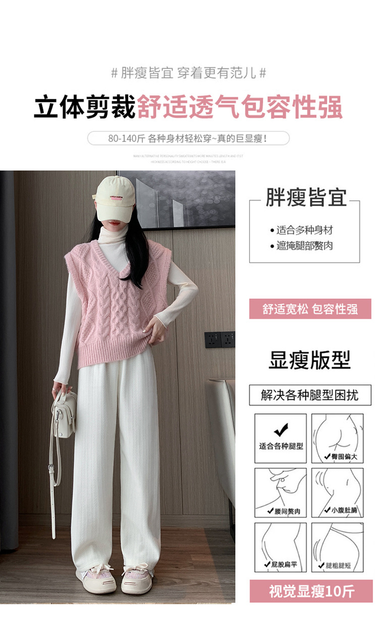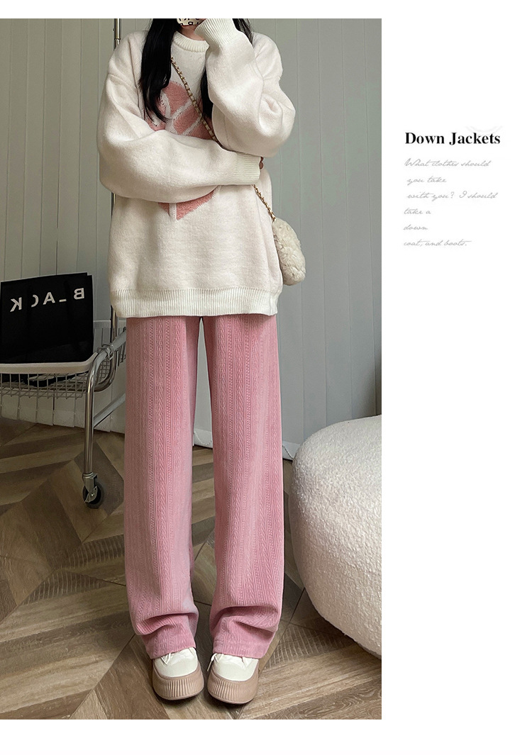 麦穗雪尼尔阔腿裤秋冬加绒裤子女装高腰拖地直筒裤显瘦垂感休闲裤